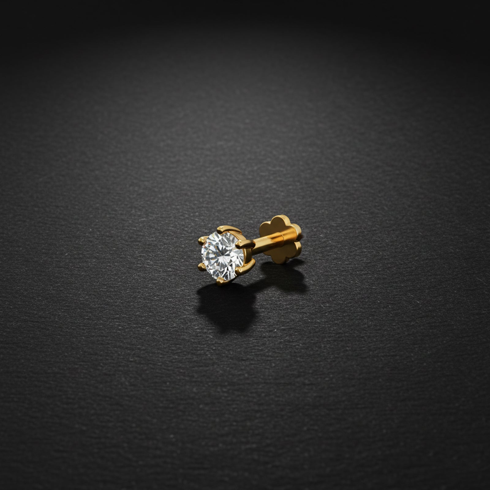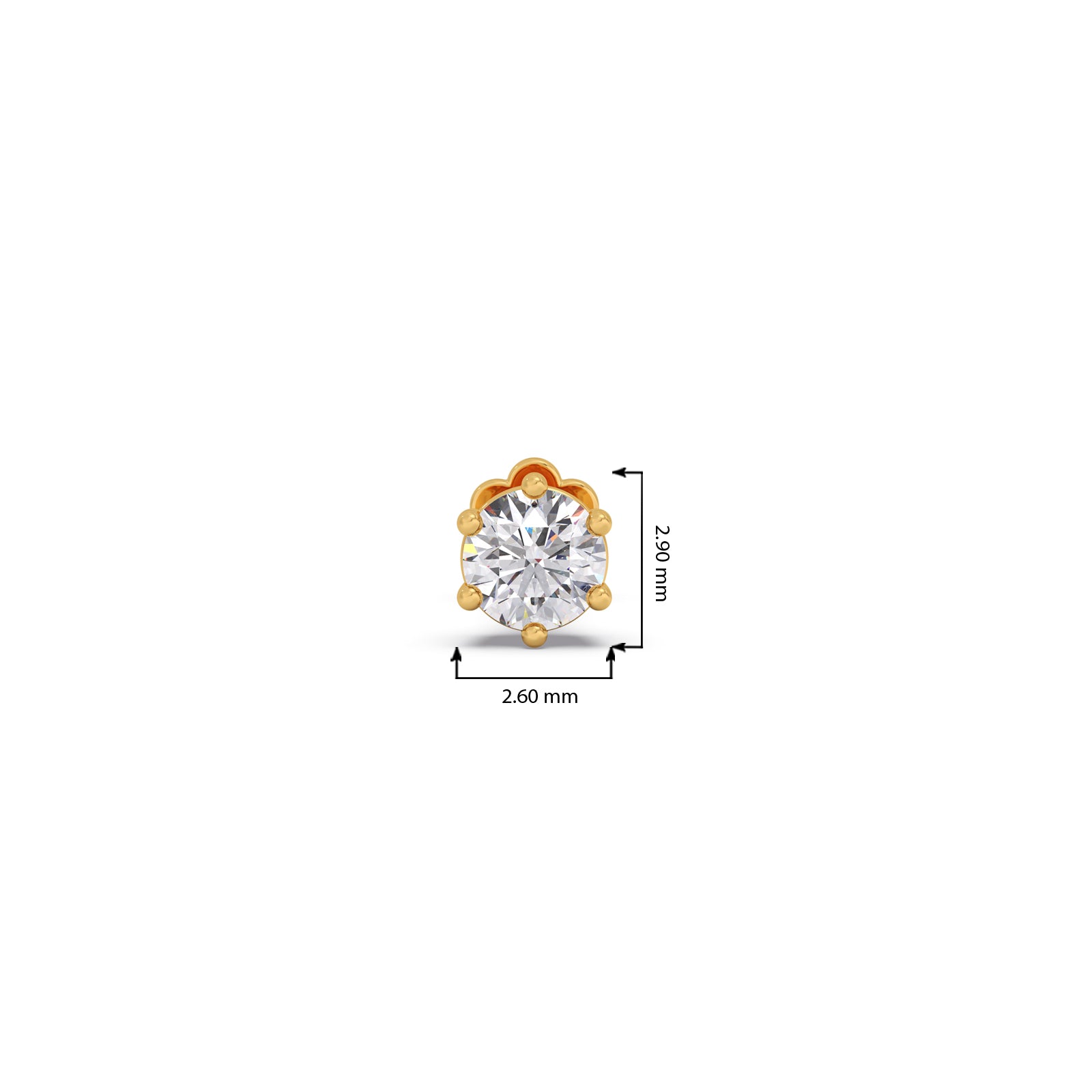 Introducing our Classic Diamond Nose Pin, a timeless and elegant piece for any collection. Crafted in brilliant gold, this nose pin features a single, sparkling round-cut diamond securely held by a six-prong setting. Its simple yet sophisticated design ensures the diamond's radiance takes center stage, offering a beautiful and classic sparkle that's perfect for daily wear.