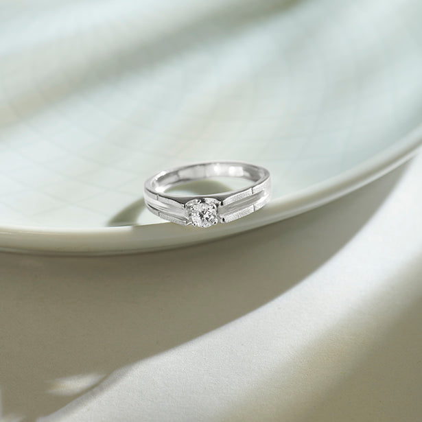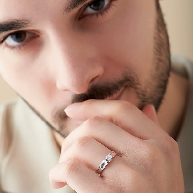 A timeless symbol of commitment, this men's engagement ring features a classic diamond solitaire set in a robust band.Its clean lines and understated elegance offer a refined, masculine expression of love and enduring style.