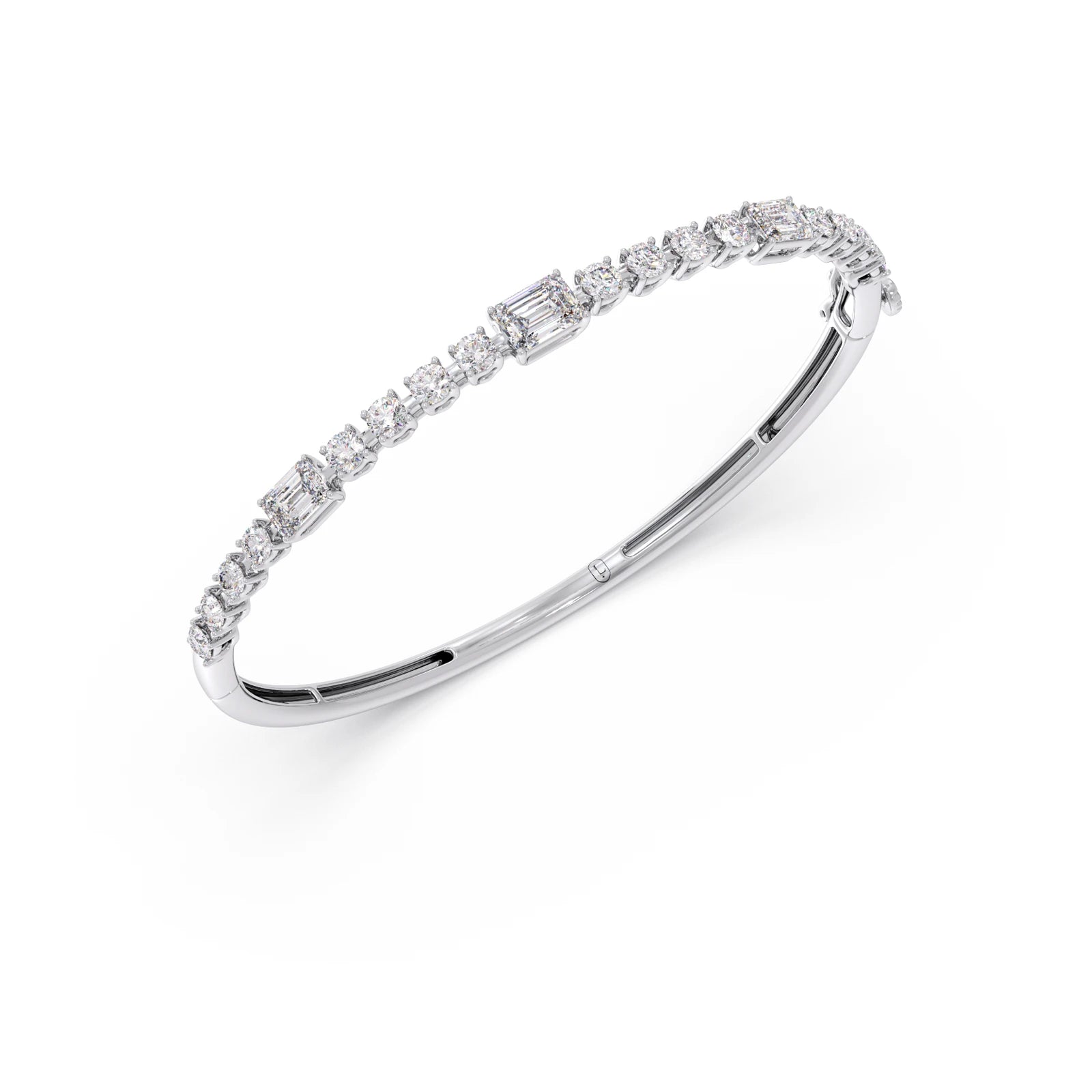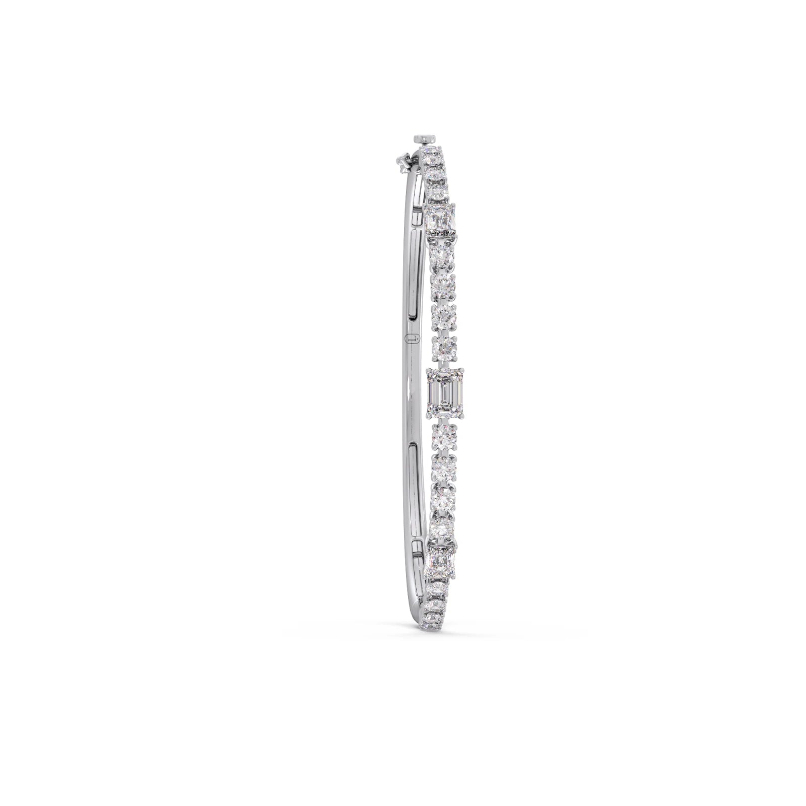 "Elevate your style with this classic diamond bracelet, featuring an exquisite arrangement of both elegant emerald-cut and brilliant round diamonds. This captivating combination creates a mesmerizing dance of light and sparkle on your wrist, offering timeless sophistication for any occasion."