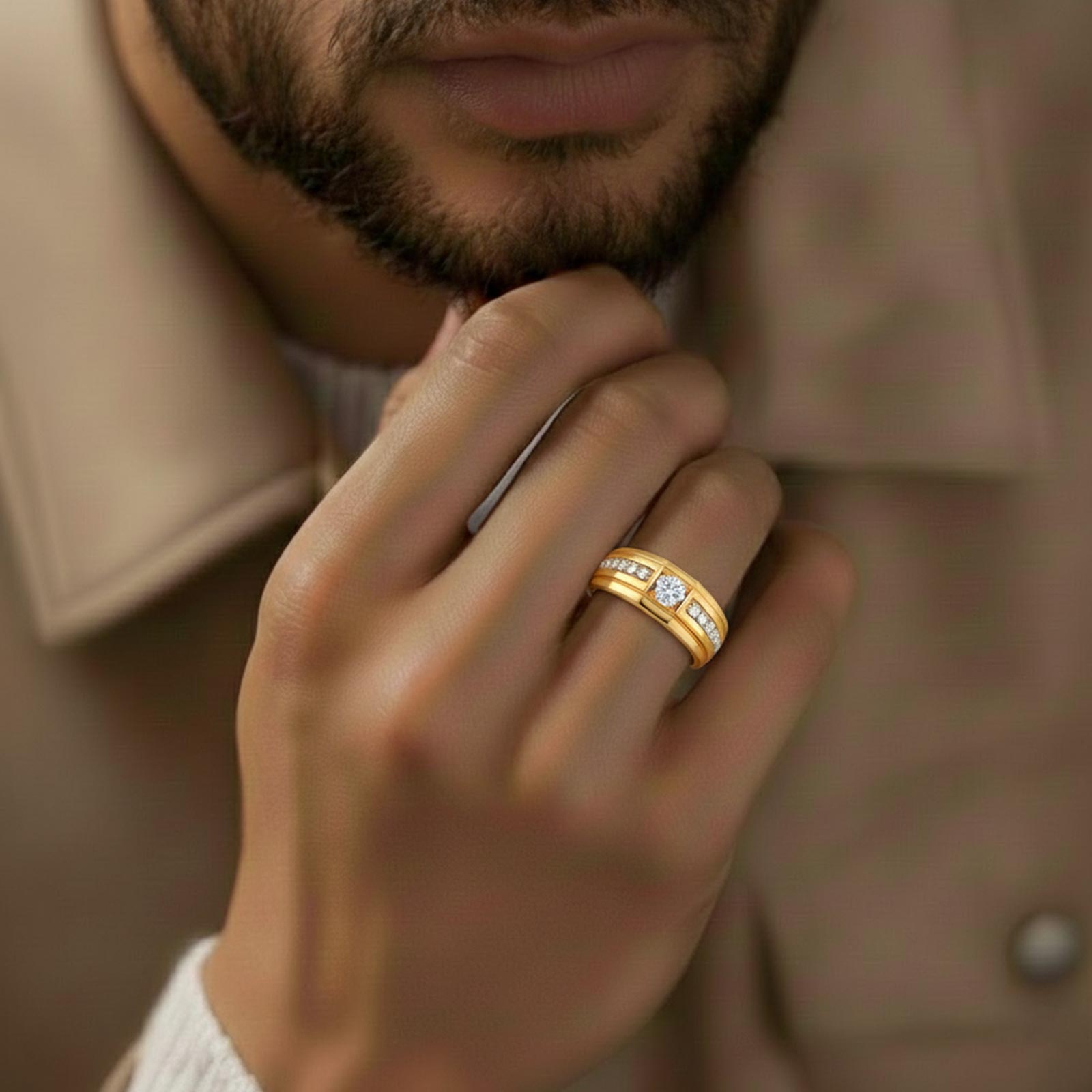 Dual Tone Luxurious Diamond Geometric Men's Band