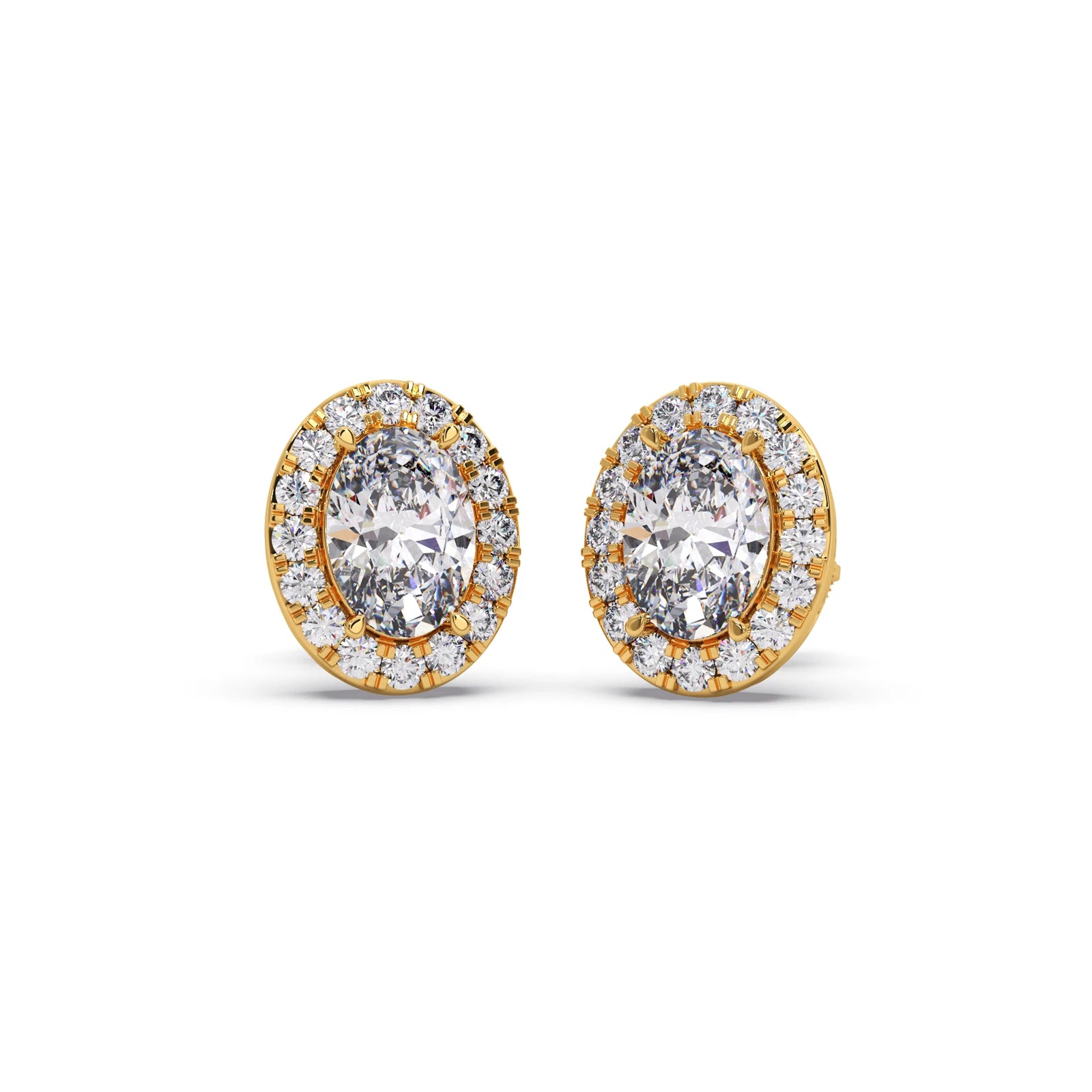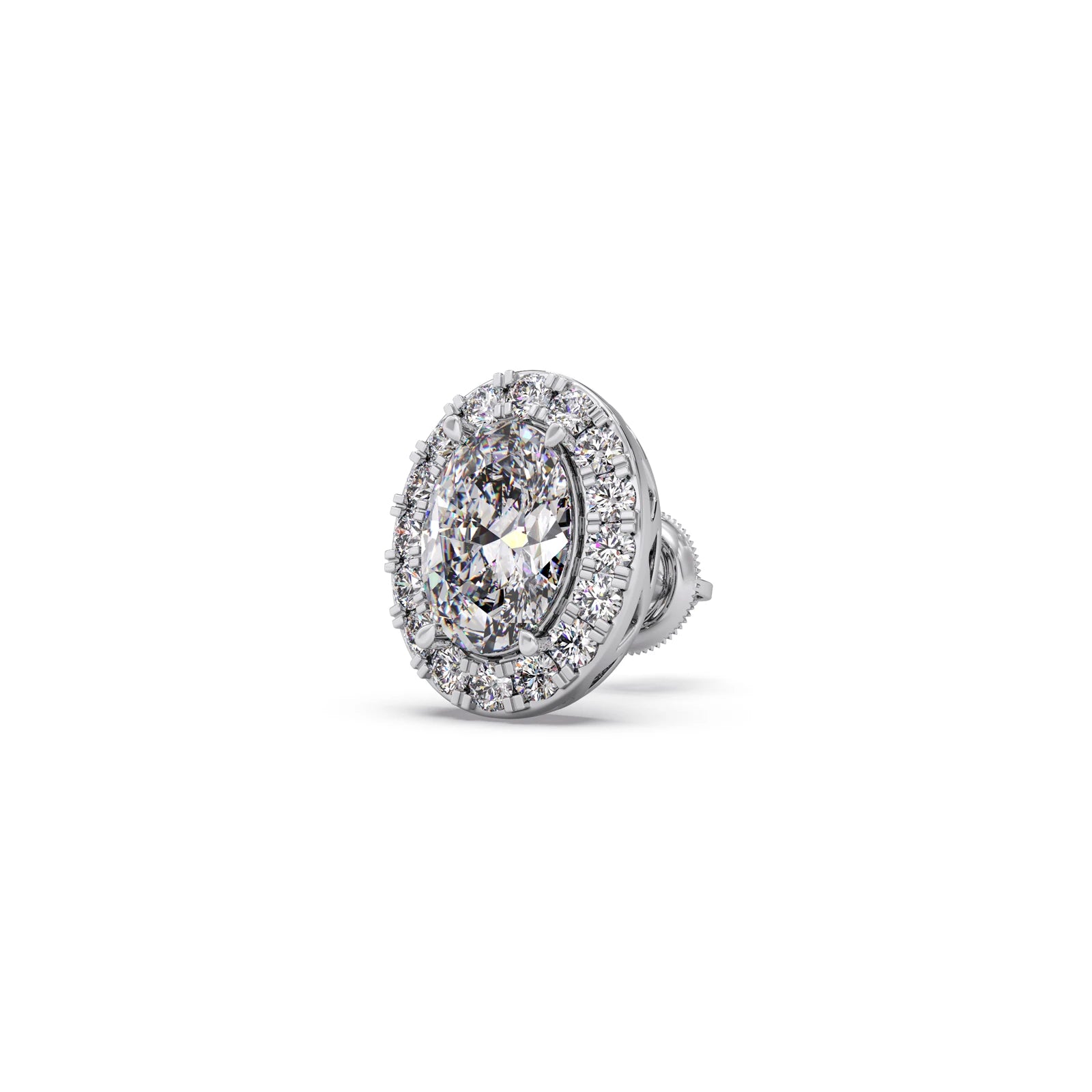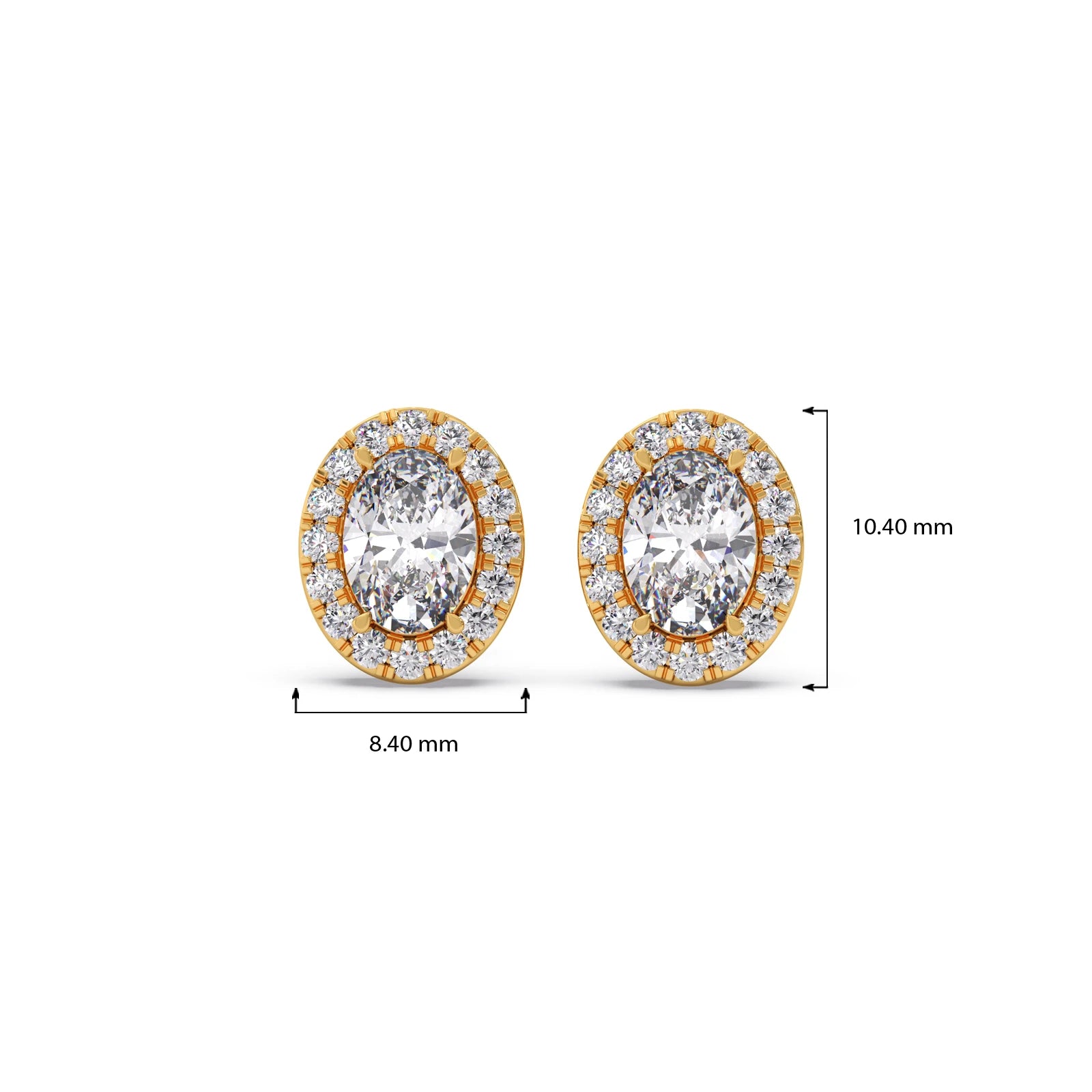 Elevate your style with our Classic Oval & Round Diamond Halo Studs. These exquisite earrings feature a brilliant oval-cut diamond gracefully encircled by a sparkling halo of smaller round diamonds. Their sophisticated design offers a captivating shimmer, perfect for adding a touch of timeless glamour to any occasion.