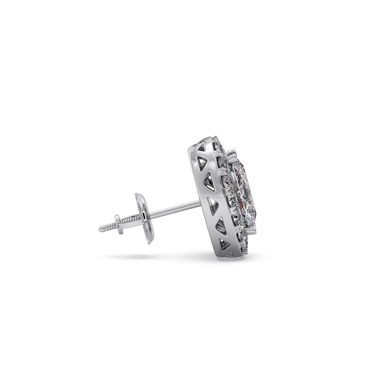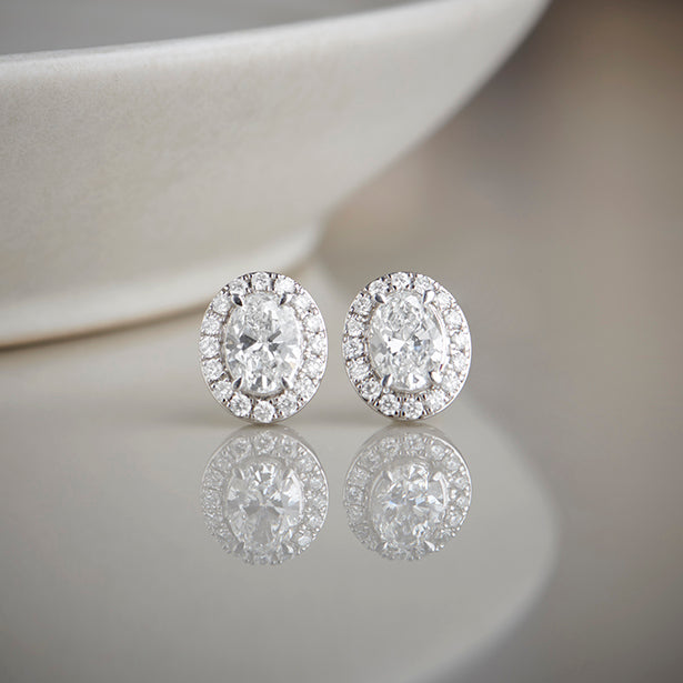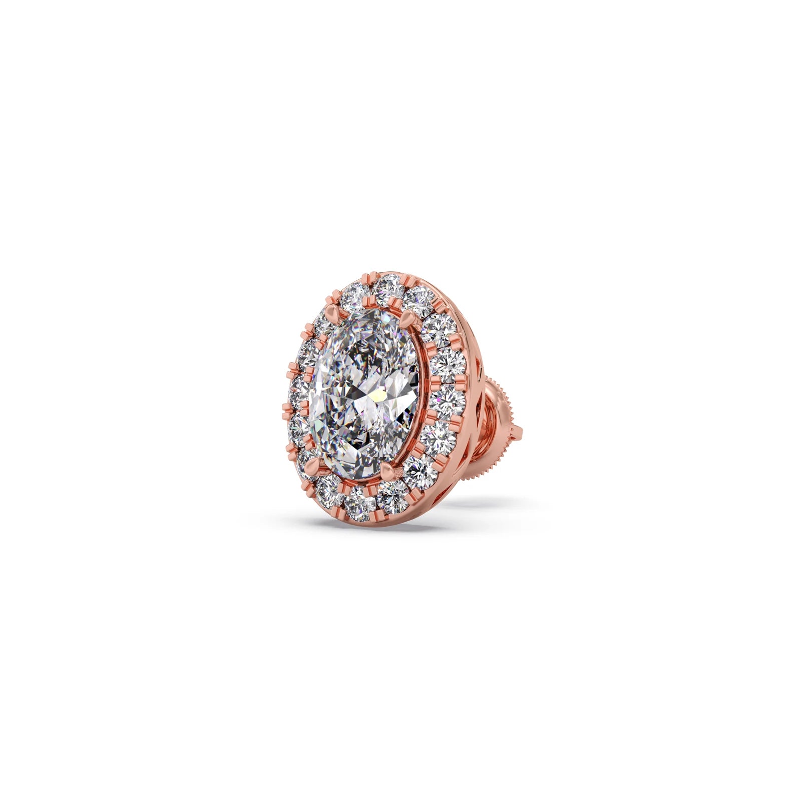 Elevate your style with our Classic Oval & Round Diamond Halo Studs. These exquisite earrings feature a brilliant oval-cut diamond gracefully encircled by a sparkling halo of smaller round diamonds. Their sophisticated design offers a captivating shimmer, perfect for adding a touch of timeless glamour to any occasion.
