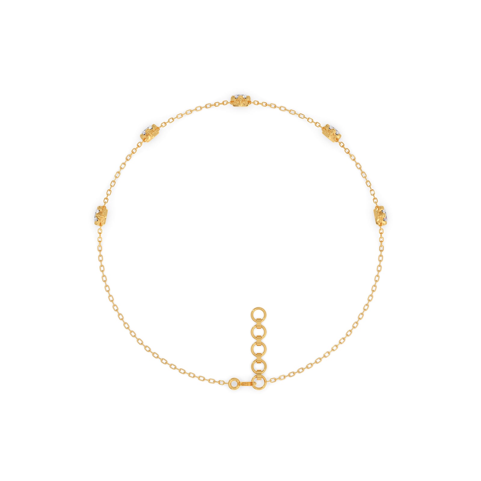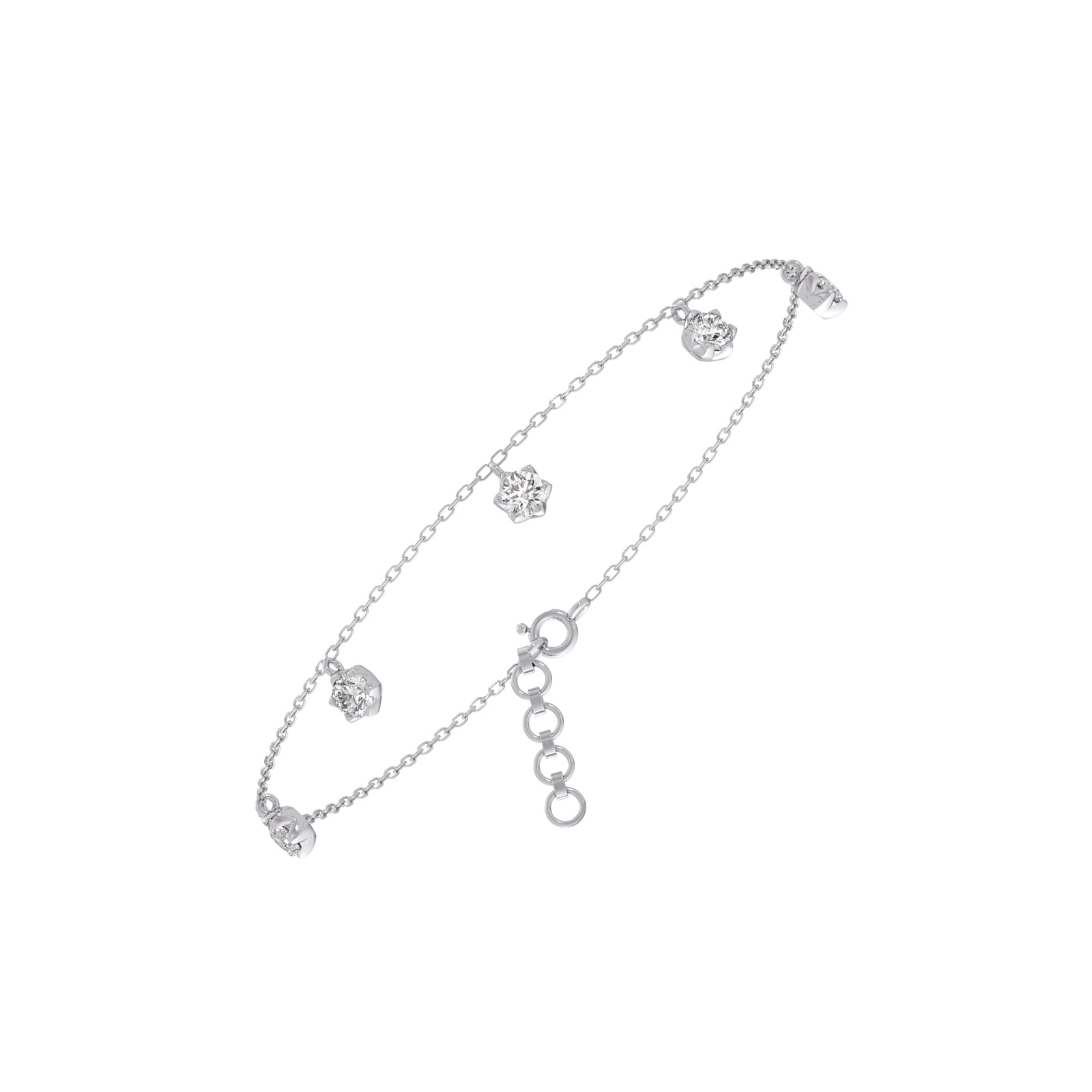 A delicate chain bracelet adorned with Five Round Diamonds, each secured in classic 6-prong settings. The Classic Round Diamond Chain Bracelet embodies timeless elegance and minimal sophistication, offering just the right touch of brilliance. Perfect for everyday wear or layering with other fine pieces.