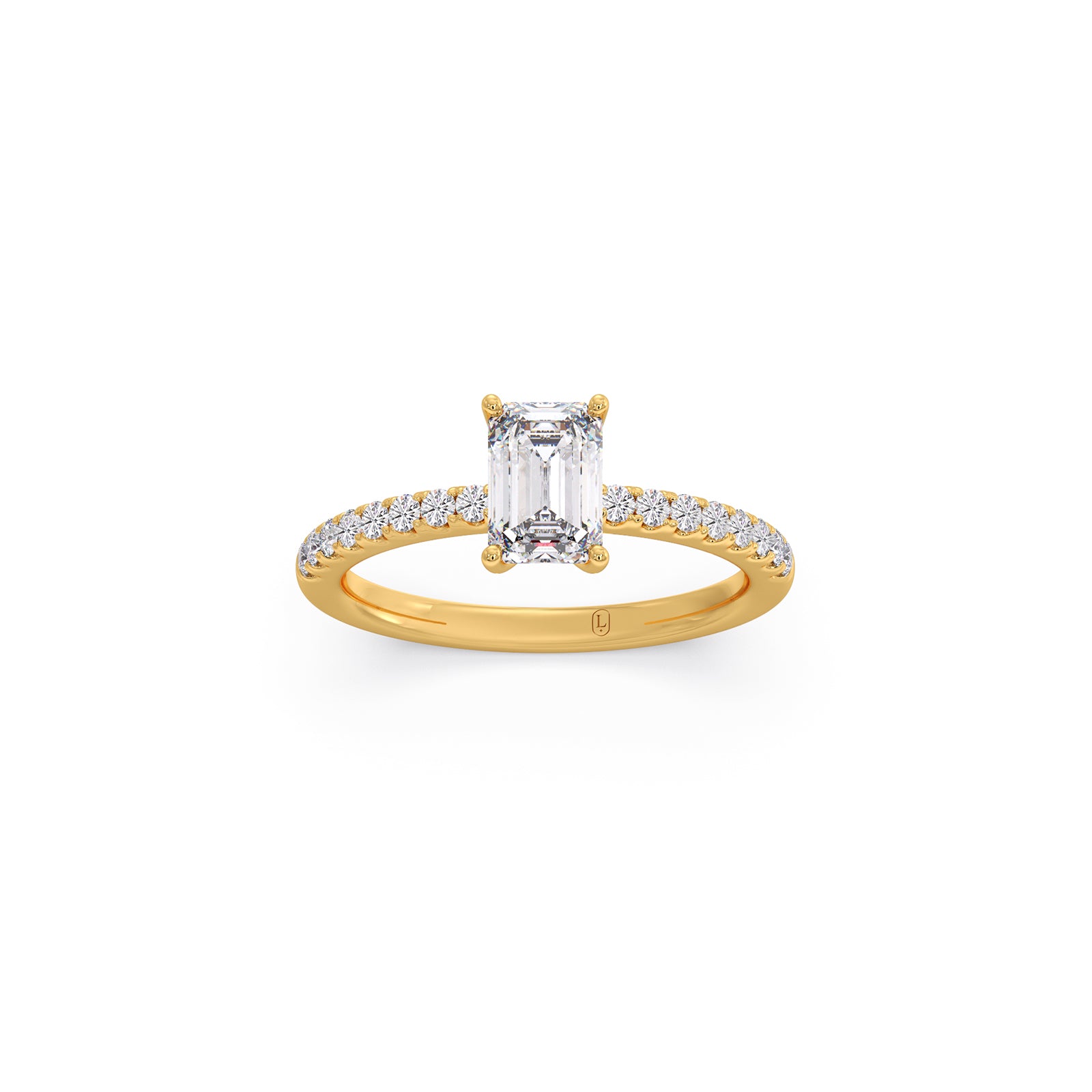 Classic Solitaire Emerald Ring is a timeless masterpiece featuring a vibrant 1-carat emerald at its heart, accented by sparkling round diamond sidestones along the band. This elegant design blends classic sophistication with radiant color, making it a perfect symbol of enduring beauty and grace.
