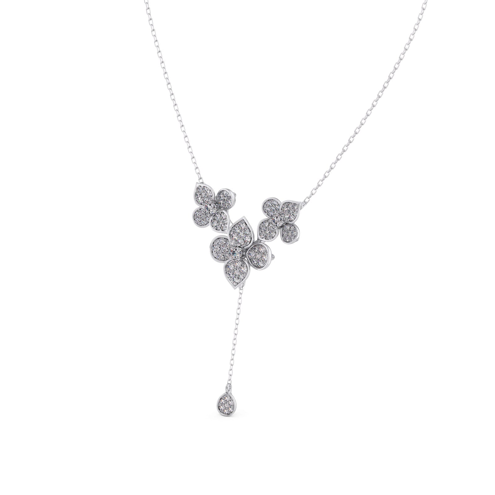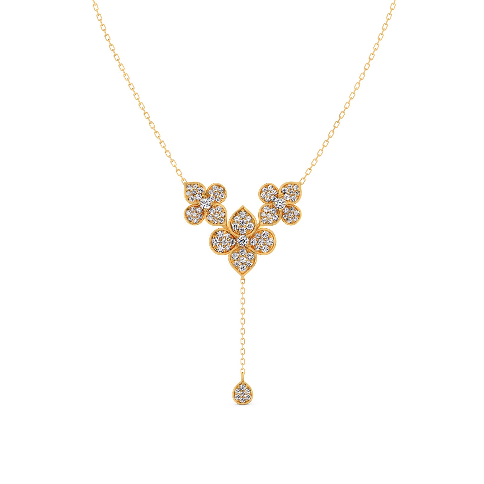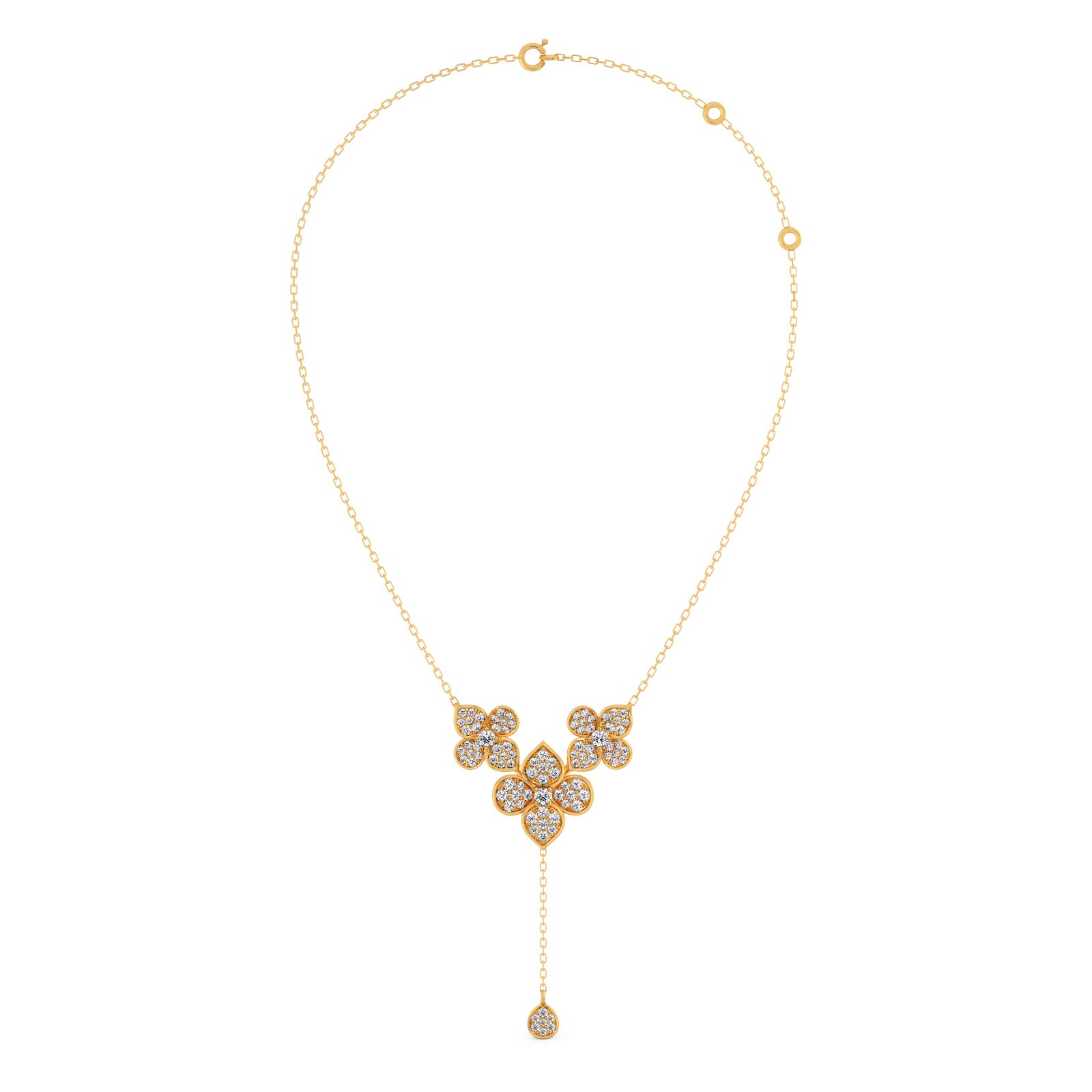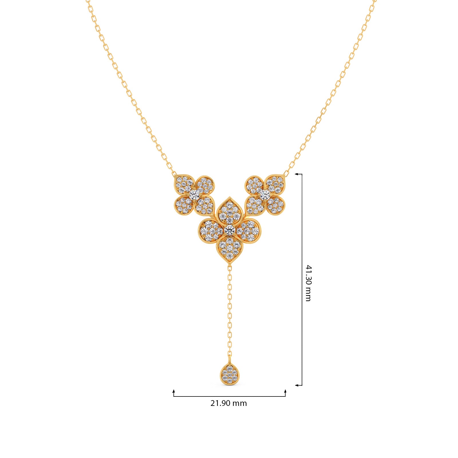 Grace your neckline with the Cluster Diamond Flower Y-Necklace, featuring floral round diamond clusters arranged in a delicate Y-drop silhouette. Crafted in gleaming gold, this elegant design captures timeless beauty and modern charm, making it a perfect choice for special occasions or refined everyday sophistication.