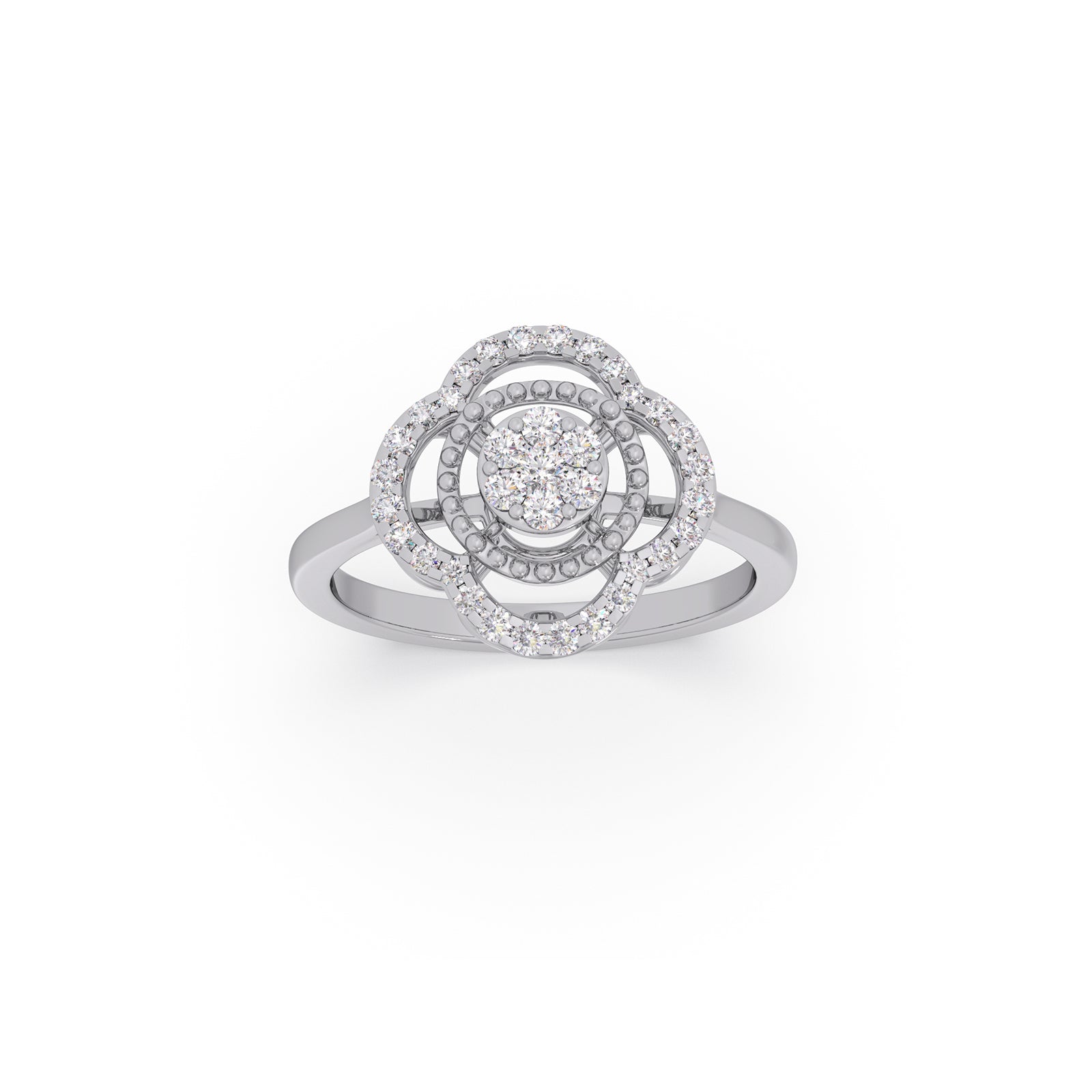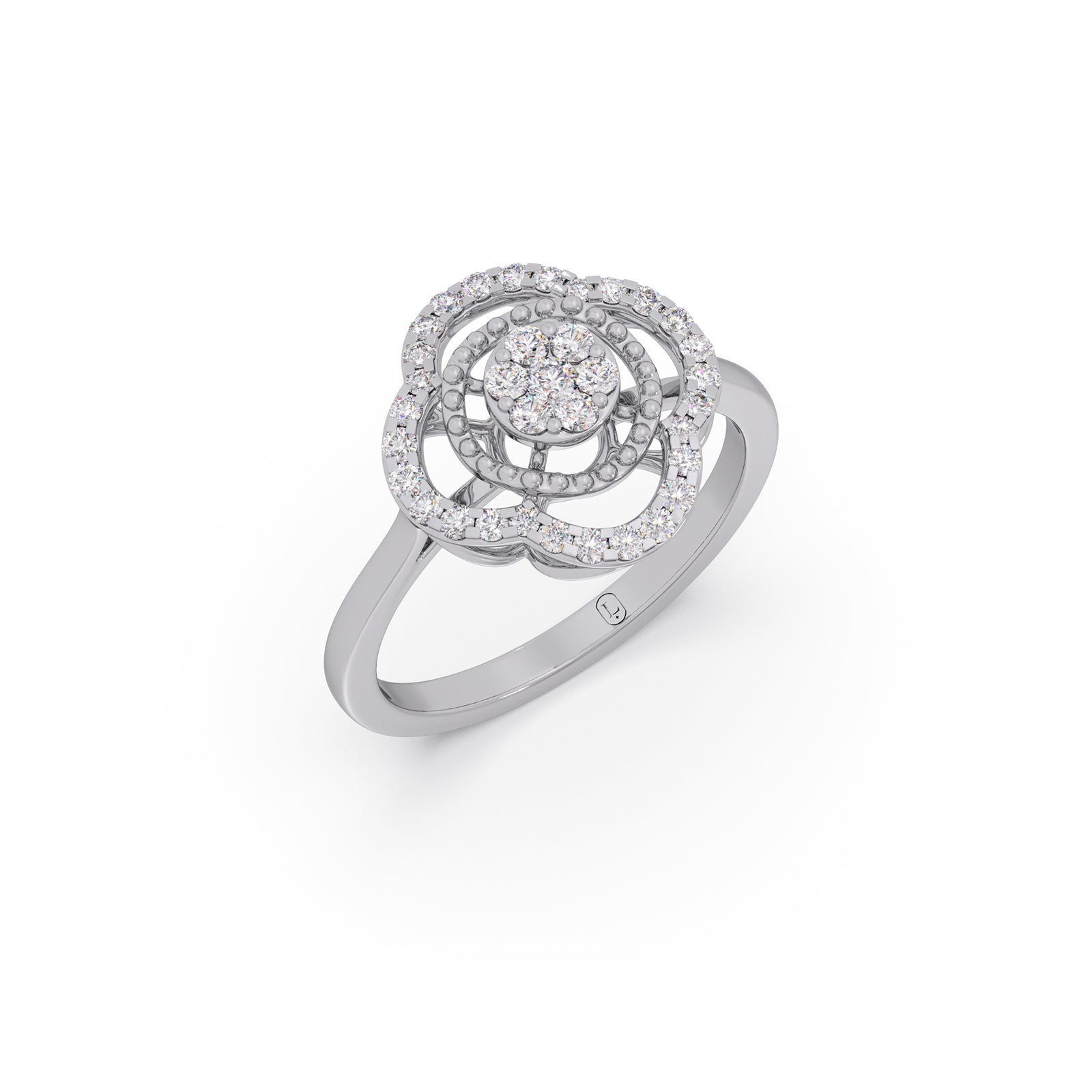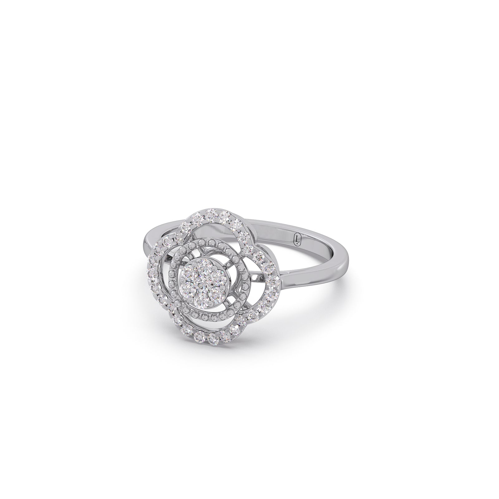 Cluster Glow Diamond Ring a glowing floral-inspired design featuring sparkling round diamonds arranged in delicate petals around a dazzling central cluster. This elegant ring captures the beauty of nature and timeless sophistication, perfect for adding a touch of brilliance to any occasion.