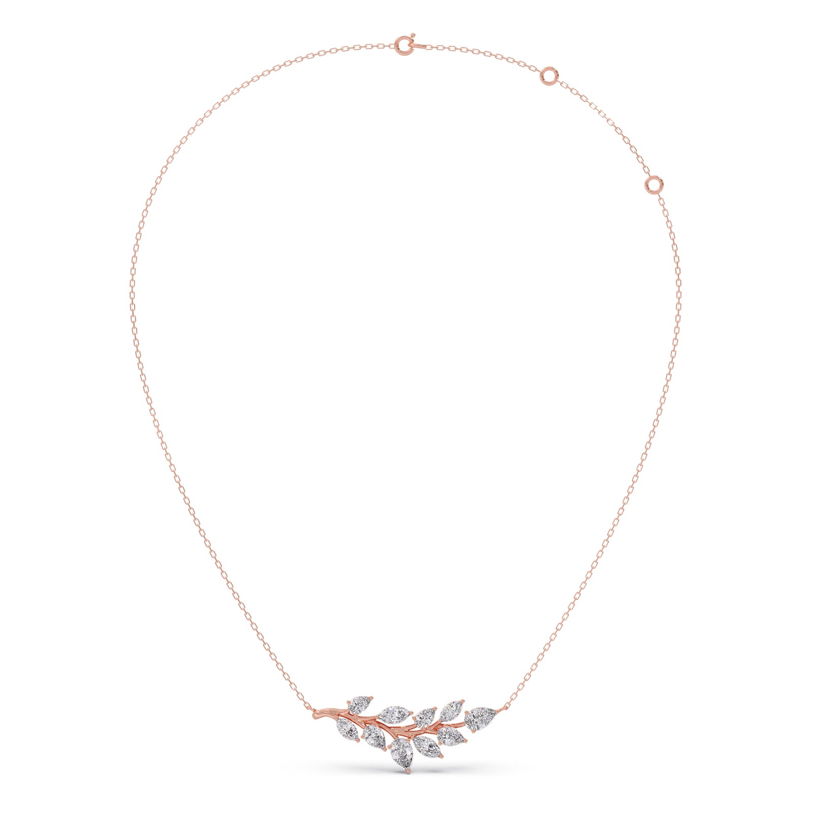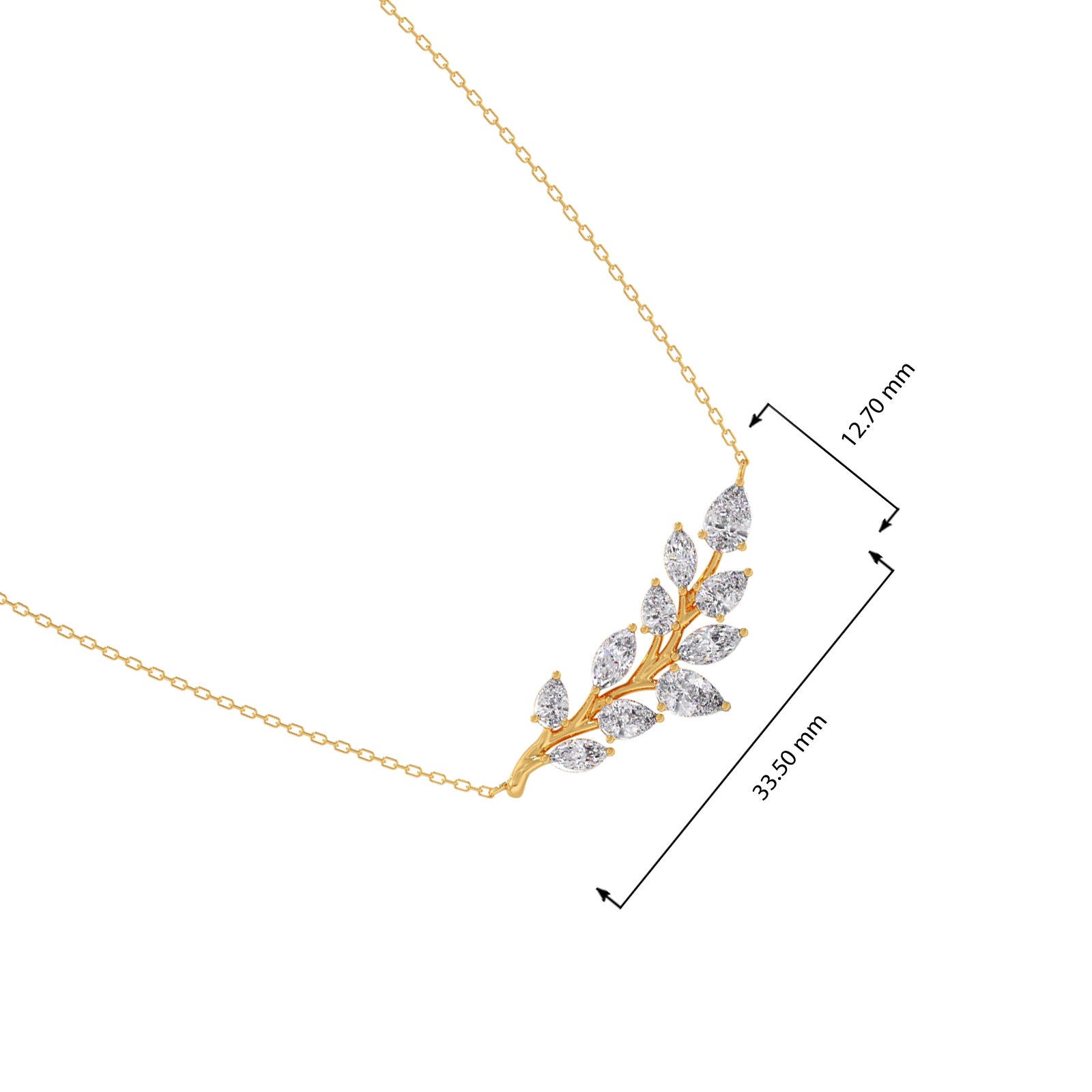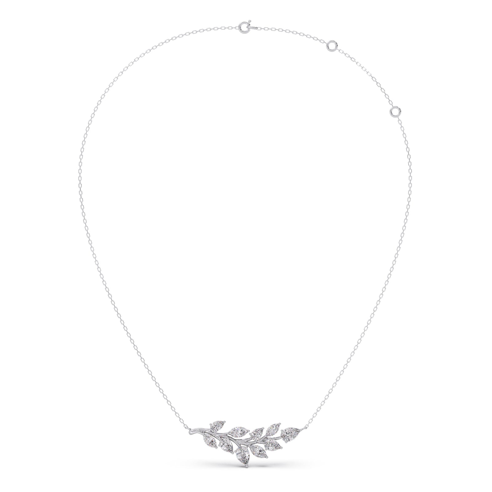A stunning Cluster Leaf Diamond Pendant featuring delicately crafted leaves adorned with shimmering Marquise and Pear-shaped Diamonds. This elegant design captures nature’s grace and adds timeless sparkle, making it the perfect accessory for any occasion. A true symbol of natural beauty and refined sophistication.