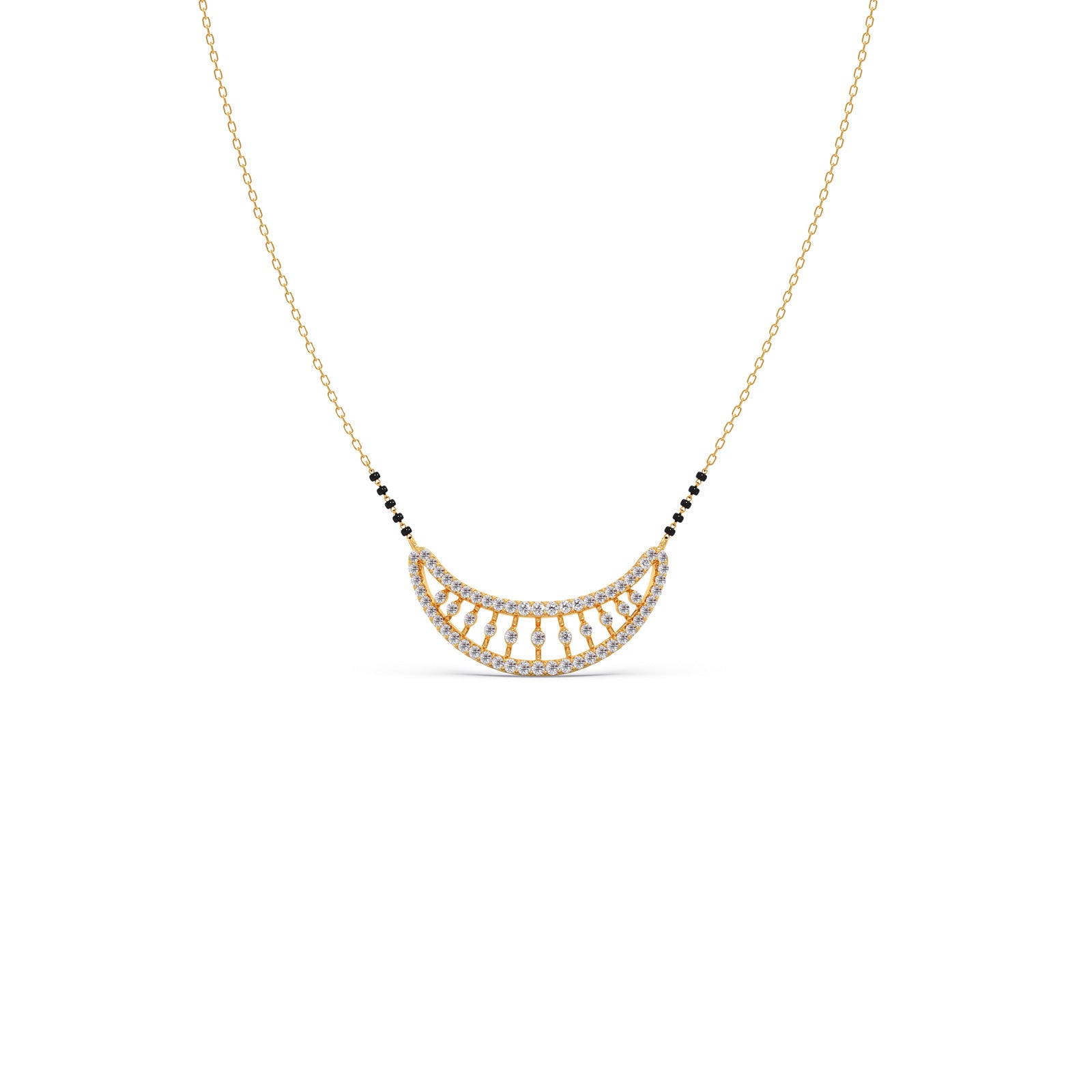 Celebrate the sparkle of a new beginning with our Clustered Dew Round Diamond Mangalsutra. This stunning piece features a cluster of brilliant round-cut diamonds, catching the light like morning dew. A delicate and modern take on a timeless symbol, it's a beautiful way to honor your bond and add a radiant glow to your every day.