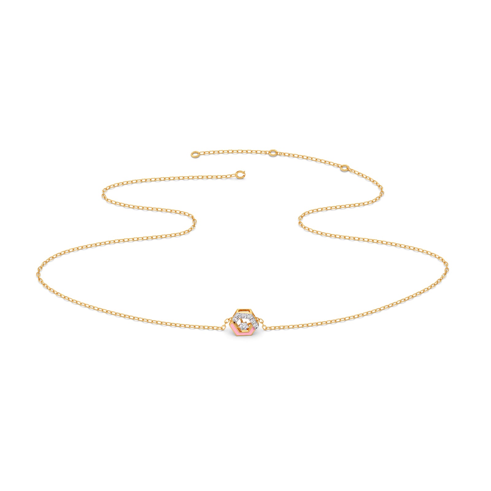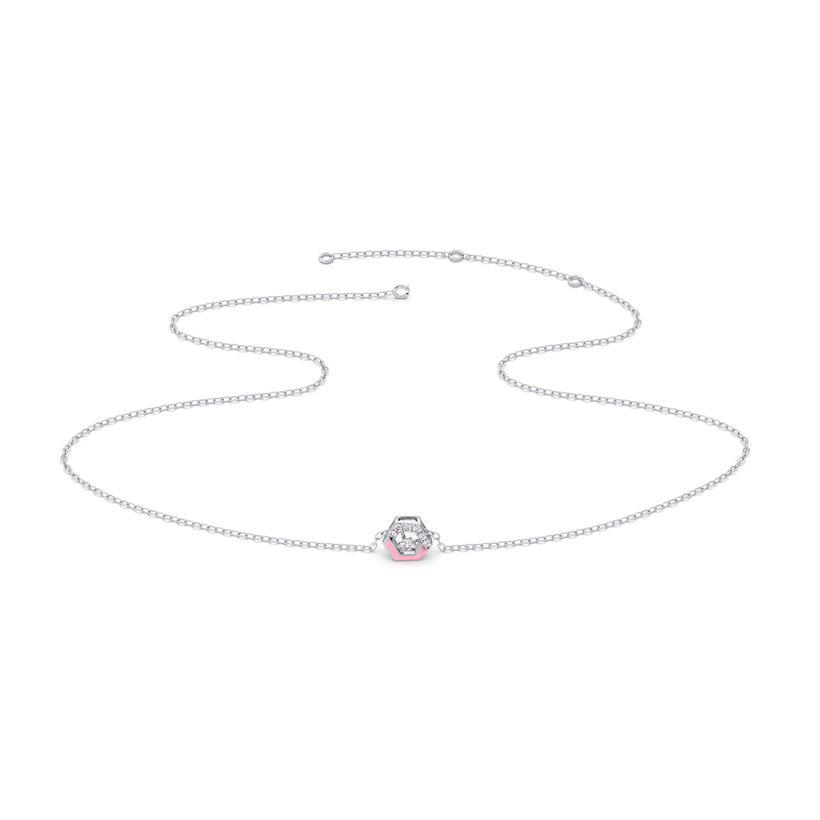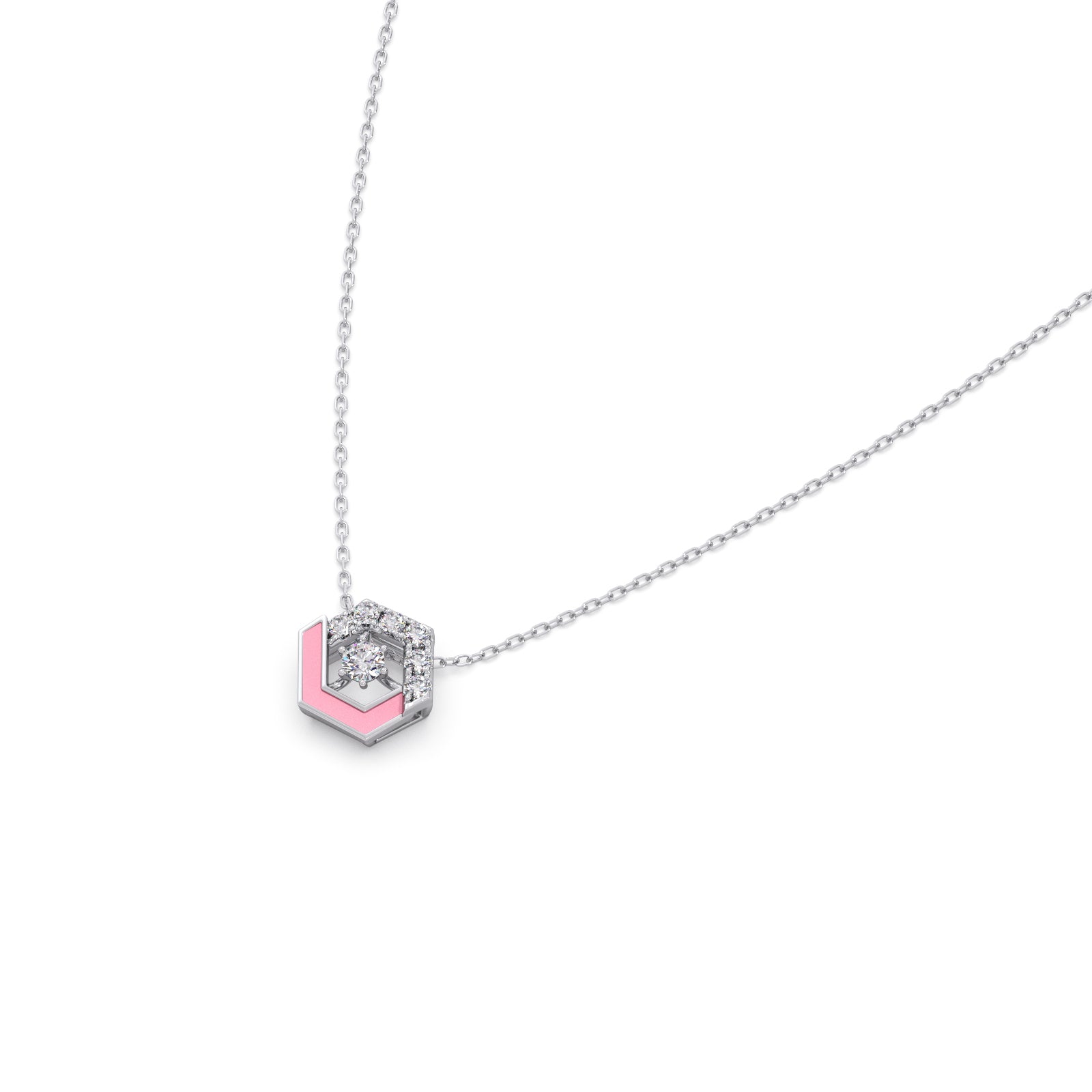 Cotton Candy Hexagon Diamond Chain Pendant features a modern hexagon silhouette accented with playful pastel enamel and diamonds. Light, vibrant, and contemporary, it adds a joyful pop of colour while maintaining refined elegance for everyday wear.