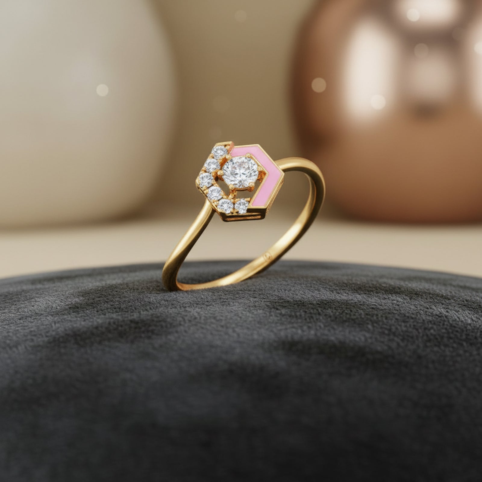This Cotton Candy Hexagon Diamond Ring features a striking six-sided design. Its delicate, sweet pink color and brilliant-cut diamonds make for a playful yet elegant statement. Unique and enchanting, it's the perfect gift.