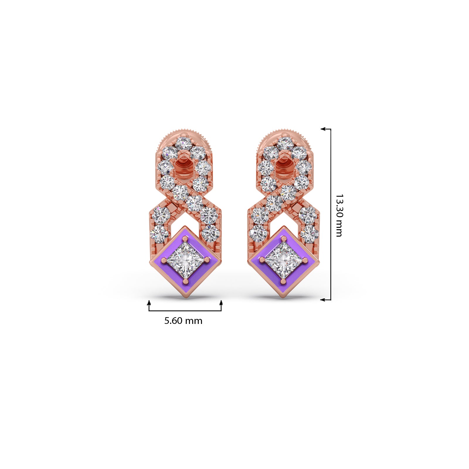 Cotton Candy HexDiamond Earrings showcase a round diamond in a hexagonal floral setting, paired with a princess-cut diamond framed in cotton candy enamel on a square base. These charming earrings balance modern geometry with soft pastel tones, creating a fresh and elegant look for everyday or occasion wear.