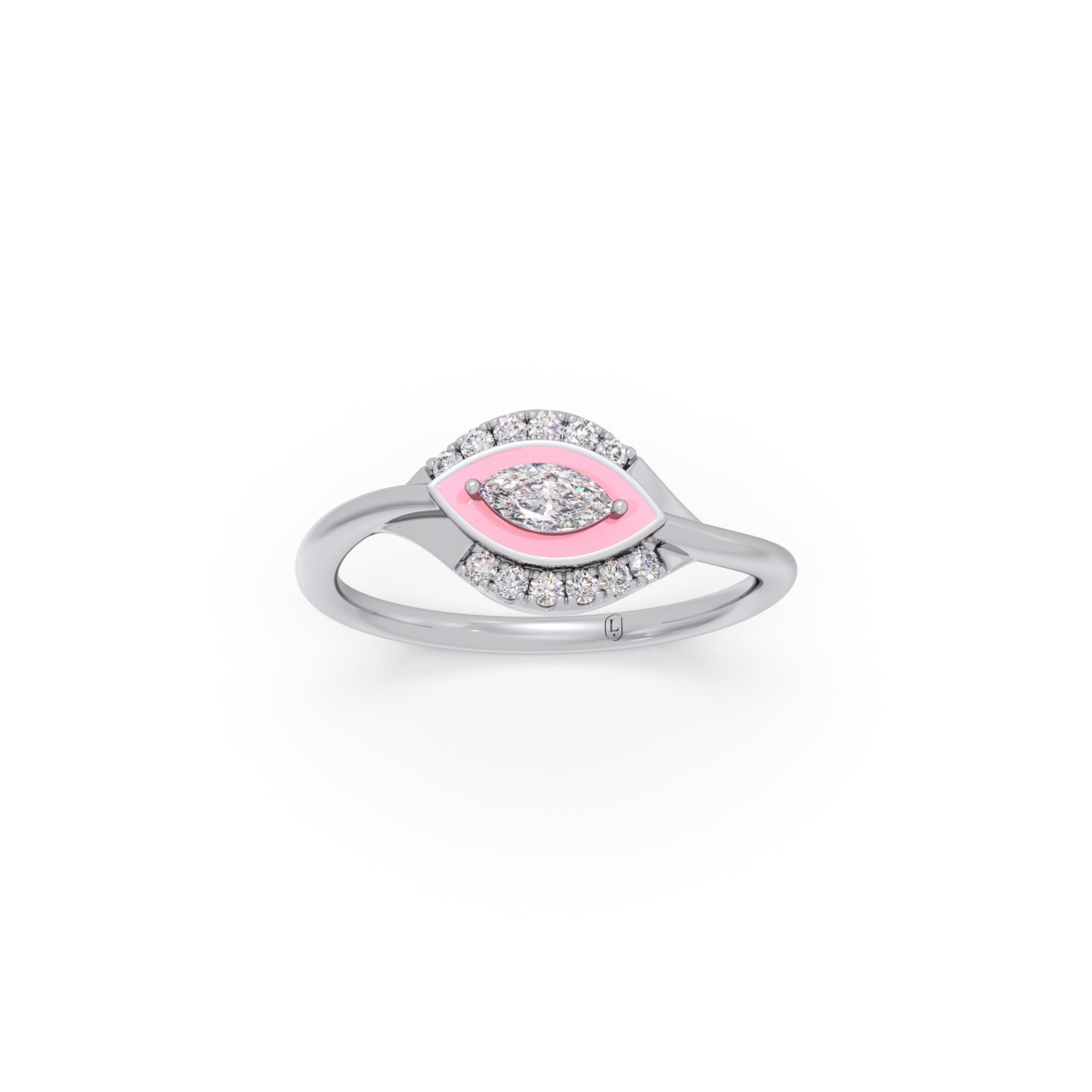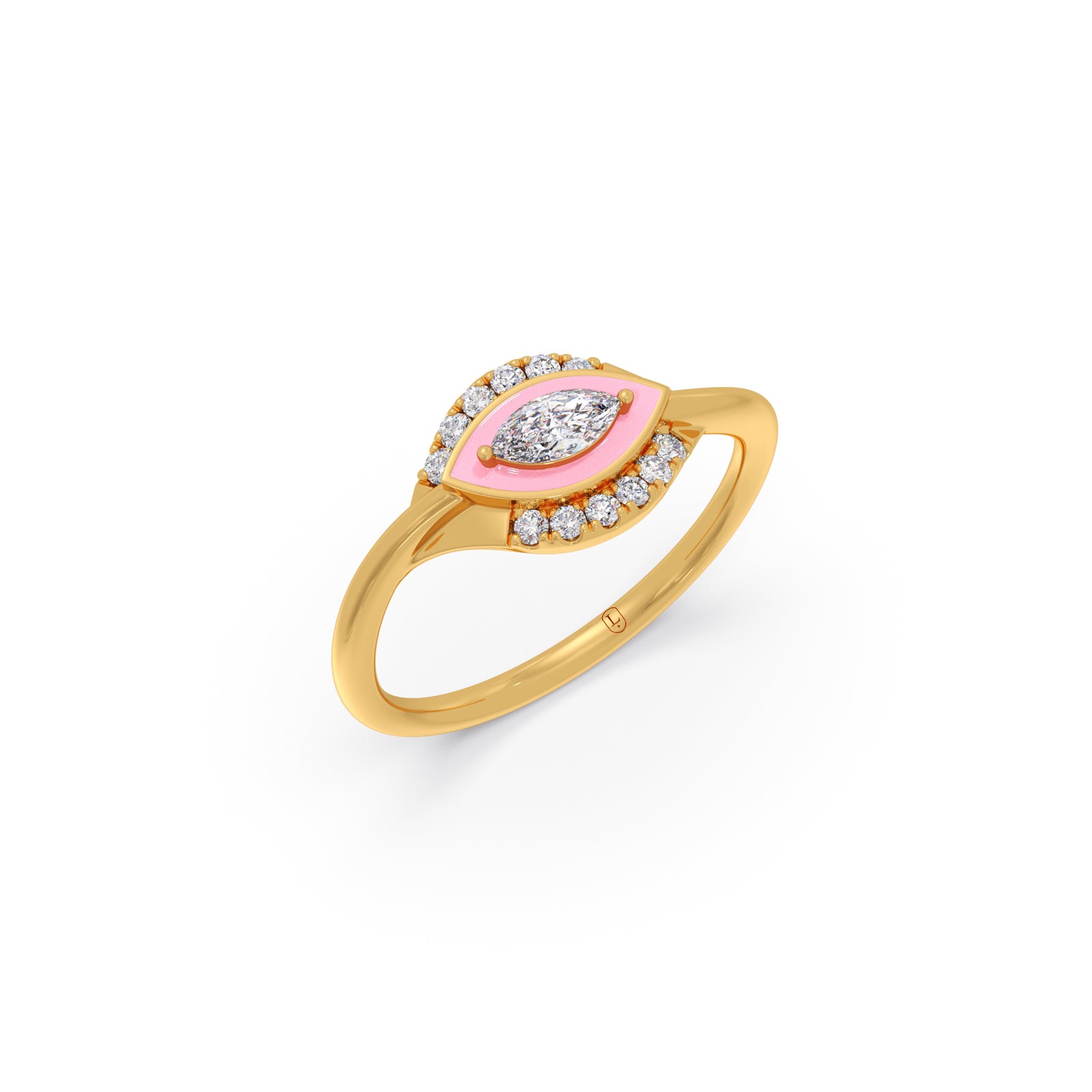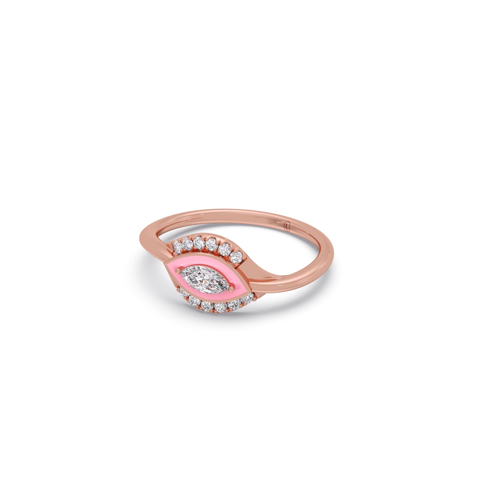 This breathtaking ring blends marquise and round diamonds to create a stunning cluster. Set in a romantic, sweet cotton candy pink in metal, the design is both vintage-inspired and modern. It offers exceptional sparkle and unique charm.