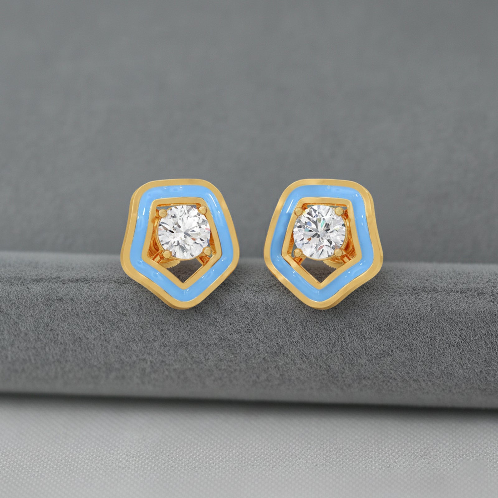 Cotton Candy Penta Stud Earrings is a unique earrings feature a brilliant diamond set within a layered frame of polished gold and vibrant sky-blue enamel. The soft, pentagon-like shape offers an artistic, geometric edge that's truly eye-catching.