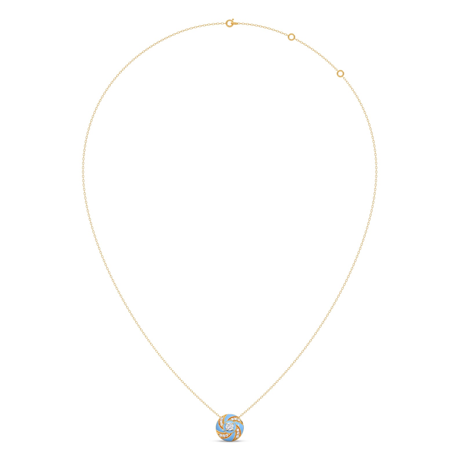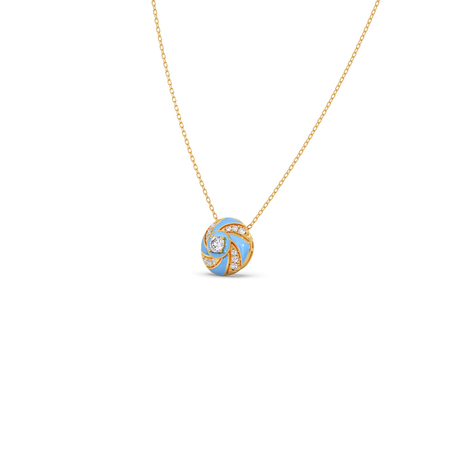 Elegant and mesmerizing, this Cotton Candy Swirl Diamond Pendant is a true work of art. The delicate swirl of light blue enamel creates a captivating backdrop for a cluster of sparkling round diamonds. Set in polished gold, it's a piece that adds a touch of modern sophistication and timeless glamour to any look.