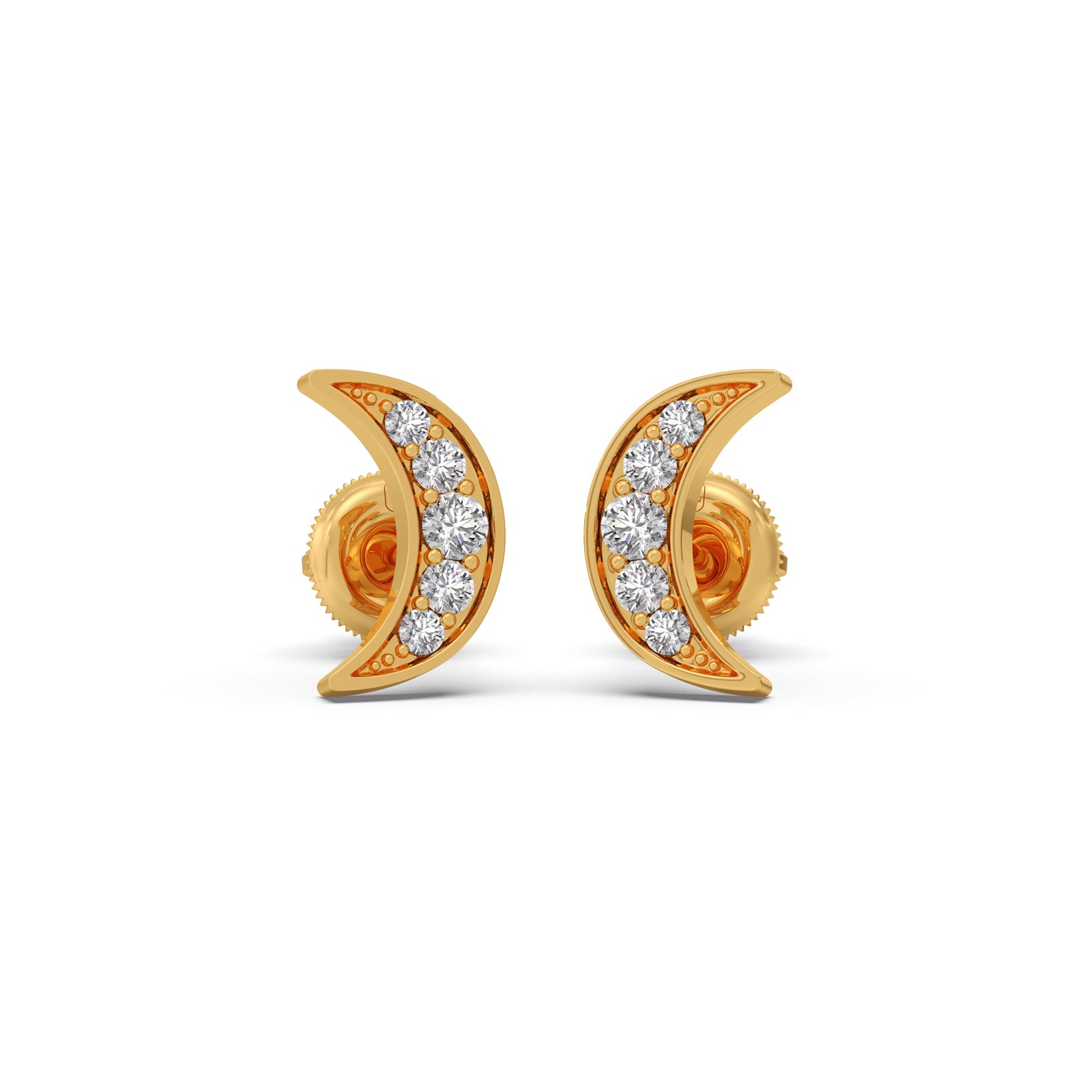 Crescent Spark Diamond Earrings feature a graceful Crescent Moon silhouette adorned with shimmering Round Diamonds. Designed to capture the magic of moonlight, these earrings blend celestial charm with timeless elegance. Perfect for evening wear or special occasions, they add a subtle sparkle and dreamy sophistication to any look.