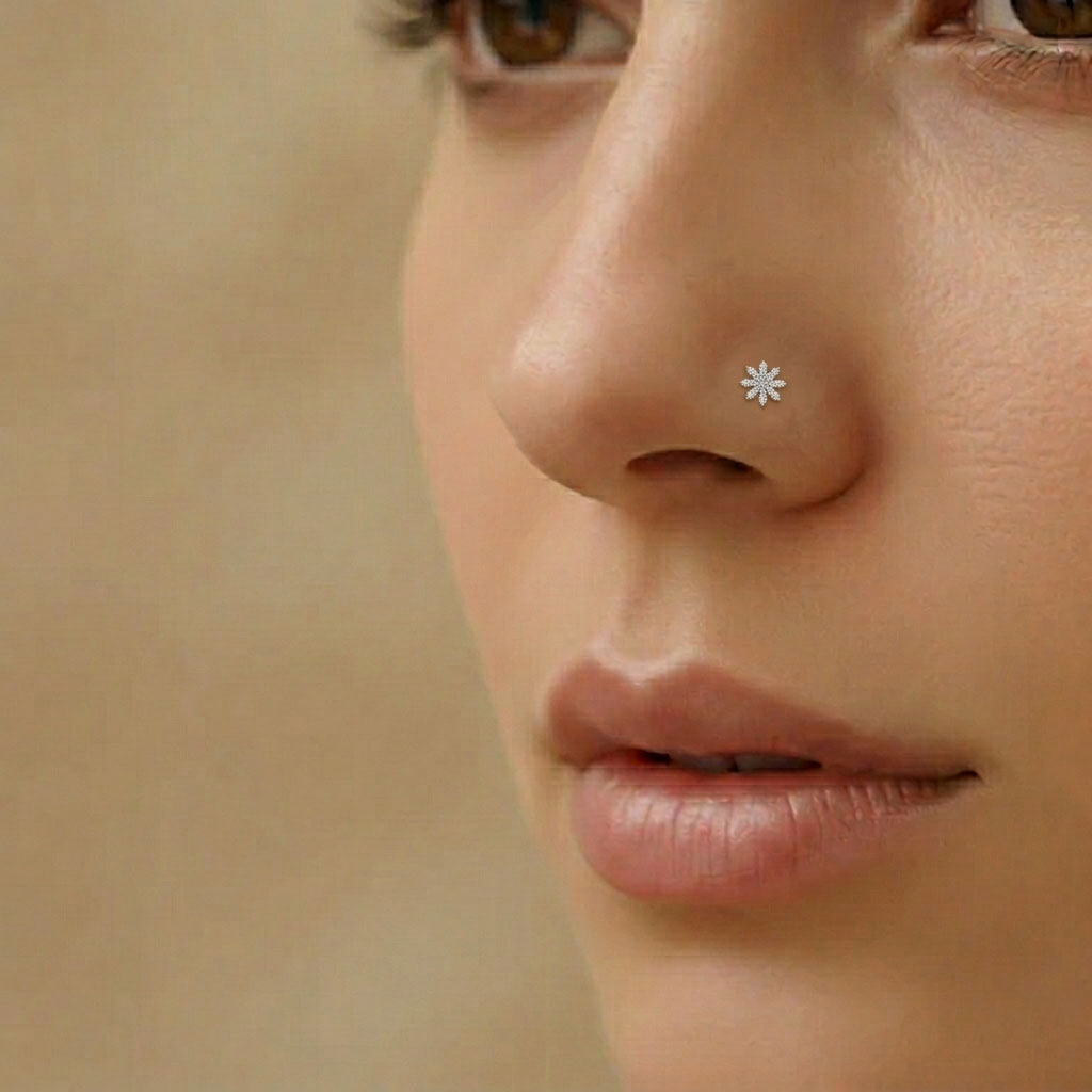This Dahlia Cluster Diamond Nose Pin features a floral cluster arrangement of round diamonds. A perfect blend of tradition and modern grace, this piece adds a subtle yet sophisticated radiance to your everyday look.