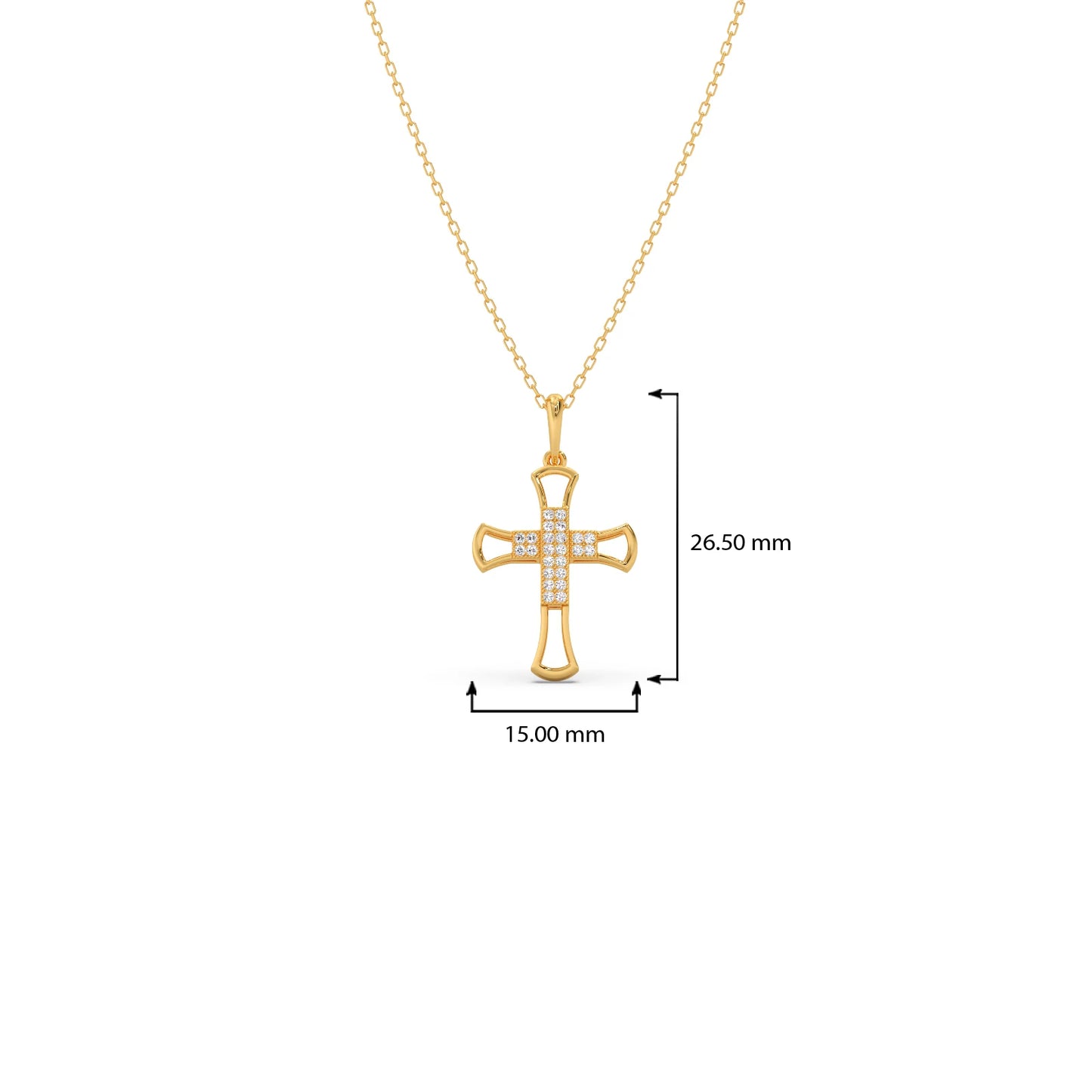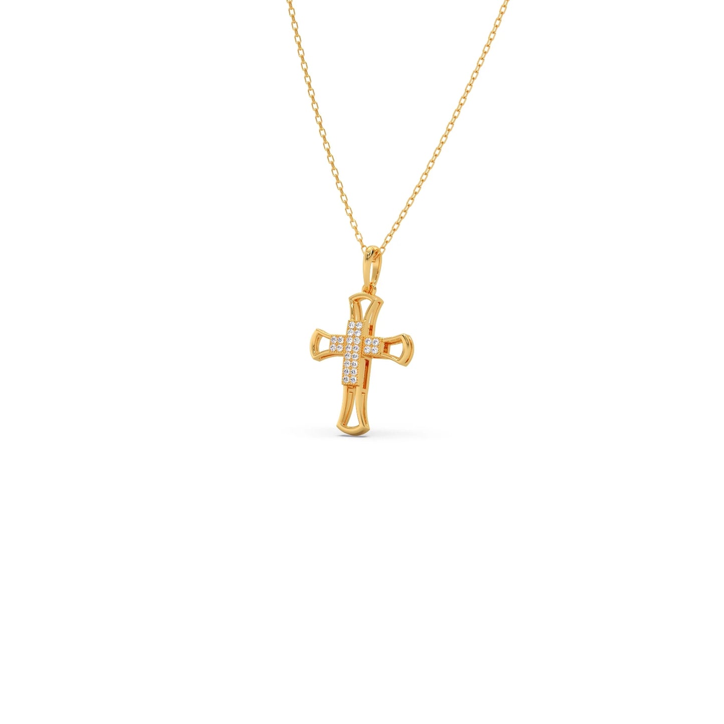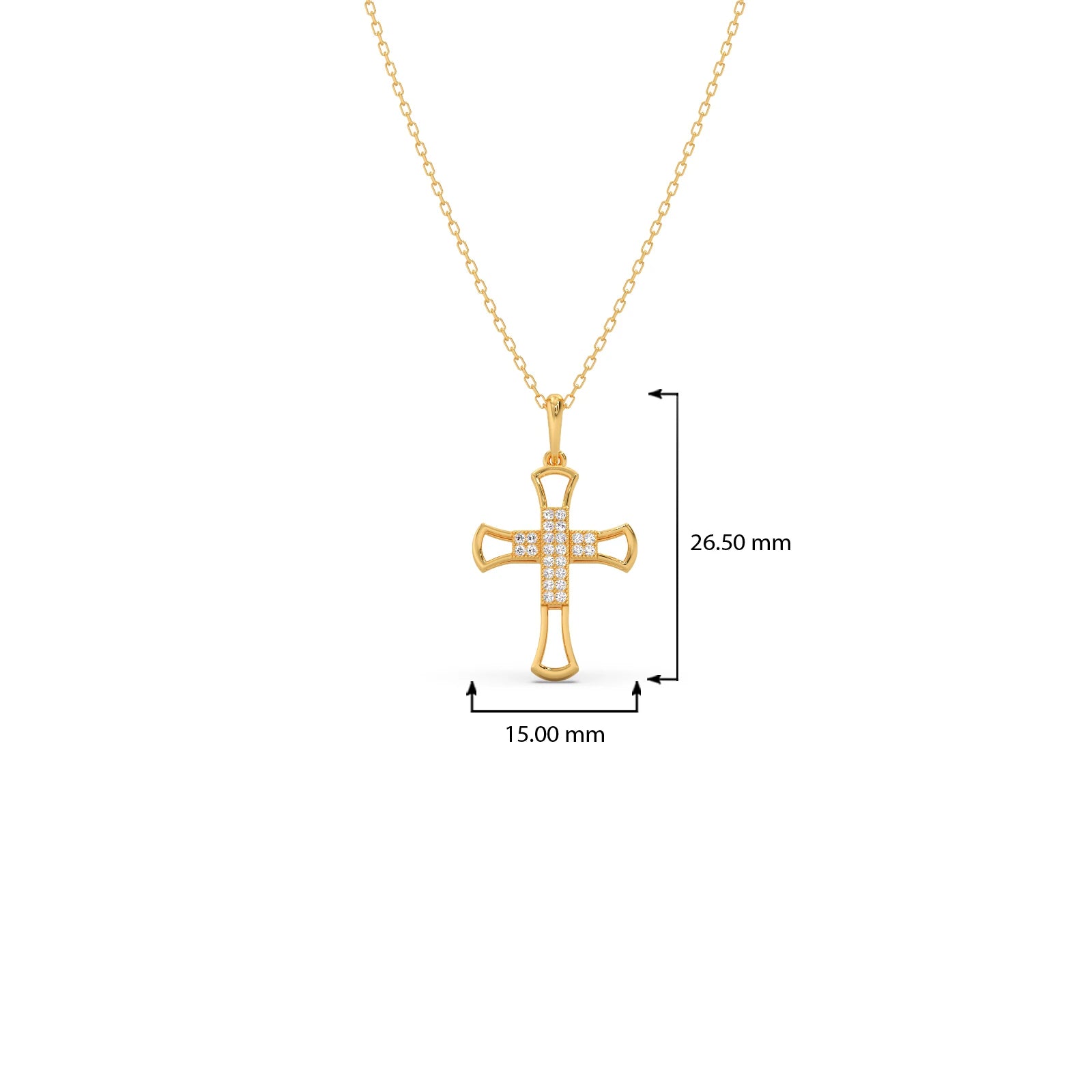 This elegant Dainty Diamond Cross Pendant features a delicate cross design, beautifully adorned with sparkling diamonds. Crafted in lustrous gold, it's a timeless symbol of faith and devotion. Perfect for everyday wear or as a meaningful gift, adding a touch of understated brilliance to any look.