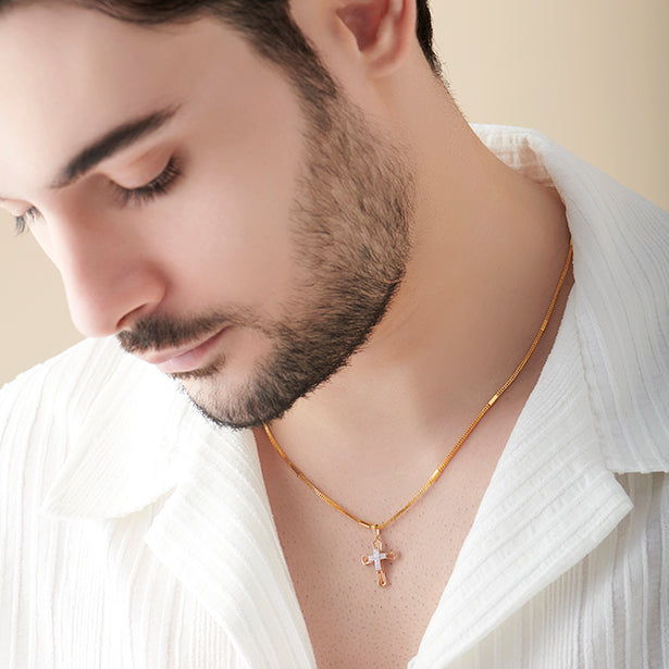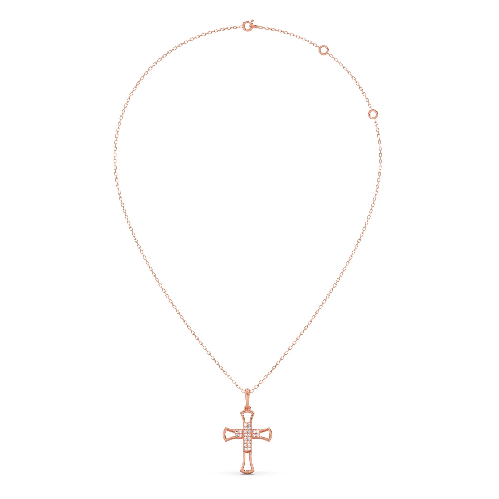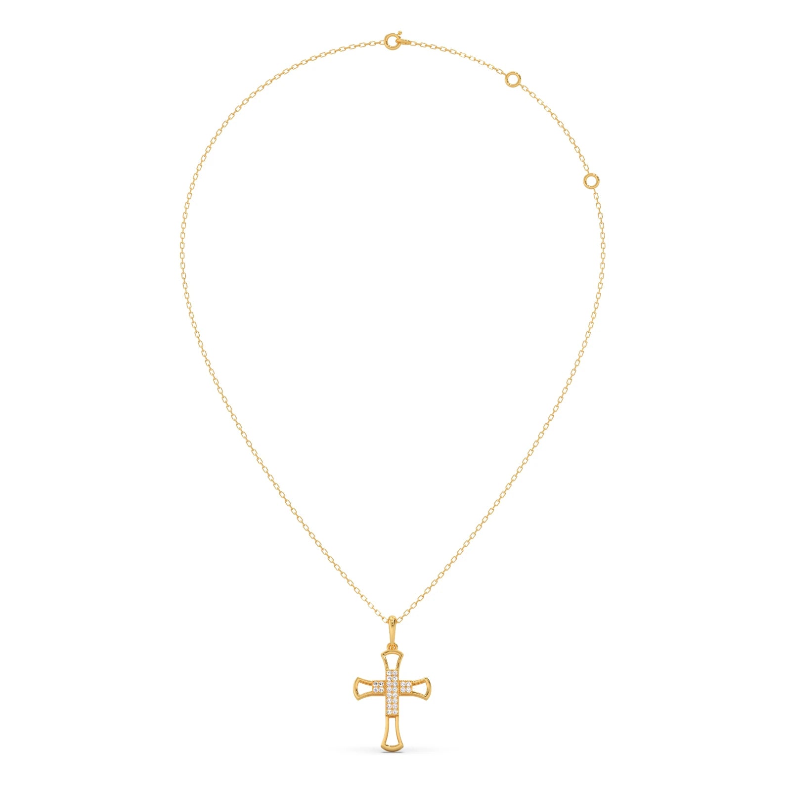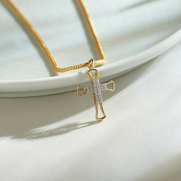 This elegant Dainty Diamond Cross Pendant features a delicate cross design, beautifully adorned with sparkling diamonds. Crafted in lustrous gold, it's a timeless symbol of faith and devotion. Perfect for everyday wear or as a meaningful gift, adding a touch of understated brilliance to any look.