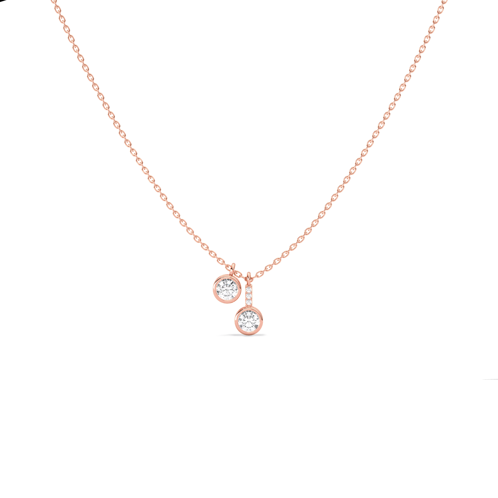 Like two distinct beats harmonizing in motion, this necklace features two bezel-set round diamonds, gently suspended to follow every graceful step. With a total weight of 1.75 ct., the duo gleams with effortless balance—a visual metaphor for strength in softness and presence in flow.