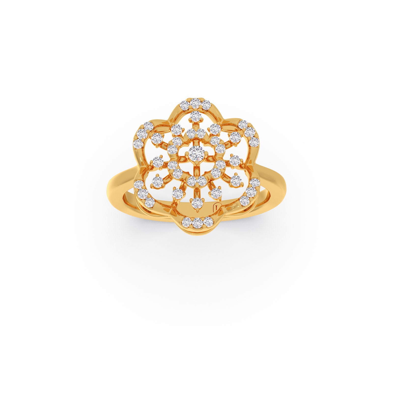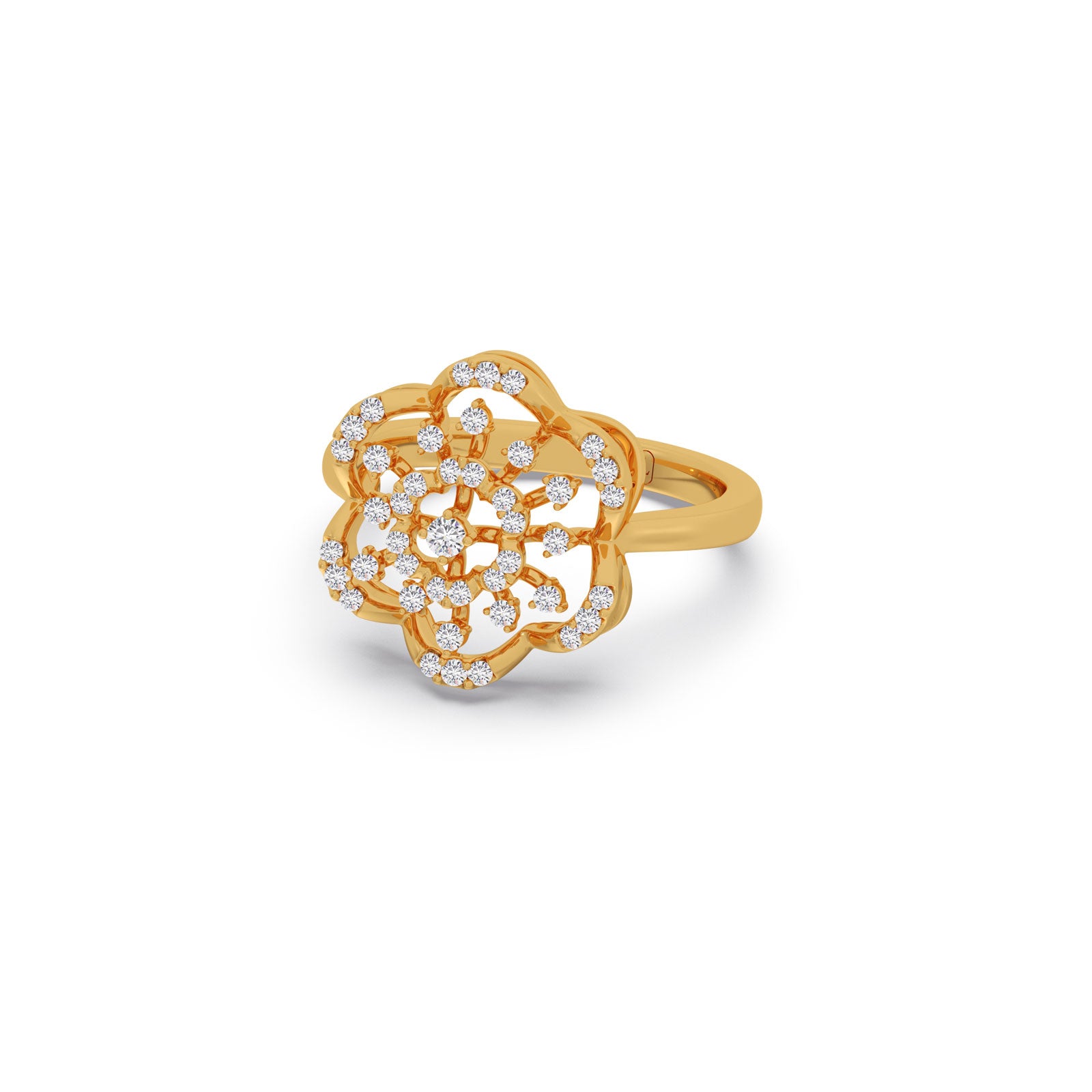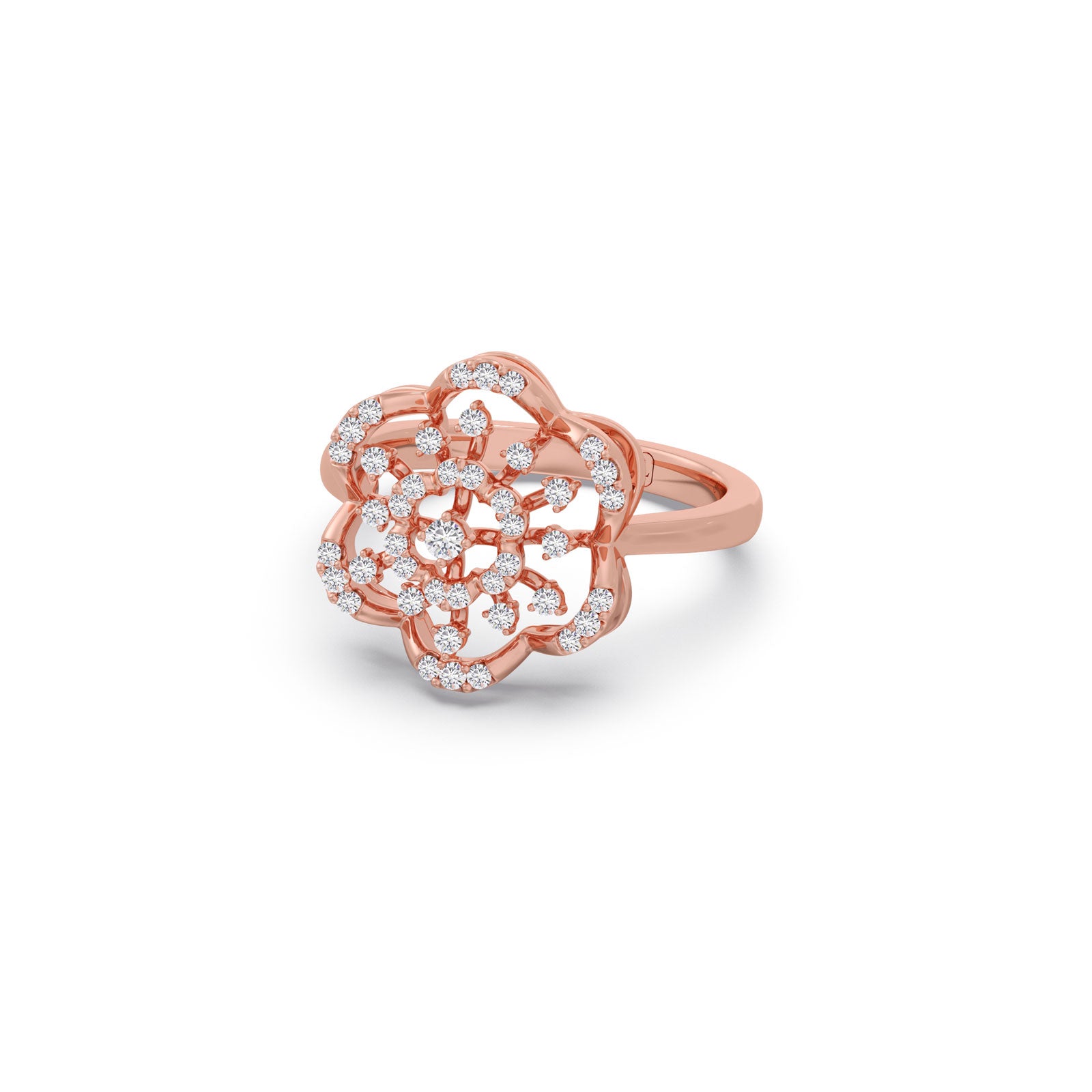 Inspired by motion and nature, this striking ring captures a flower in perpetual bloom. The intricate gold swirl is meticulously studded with diamonds, creating depth and a luminous, flowing texture. Wear this piece to showcase unique artistry and elegant geometry.