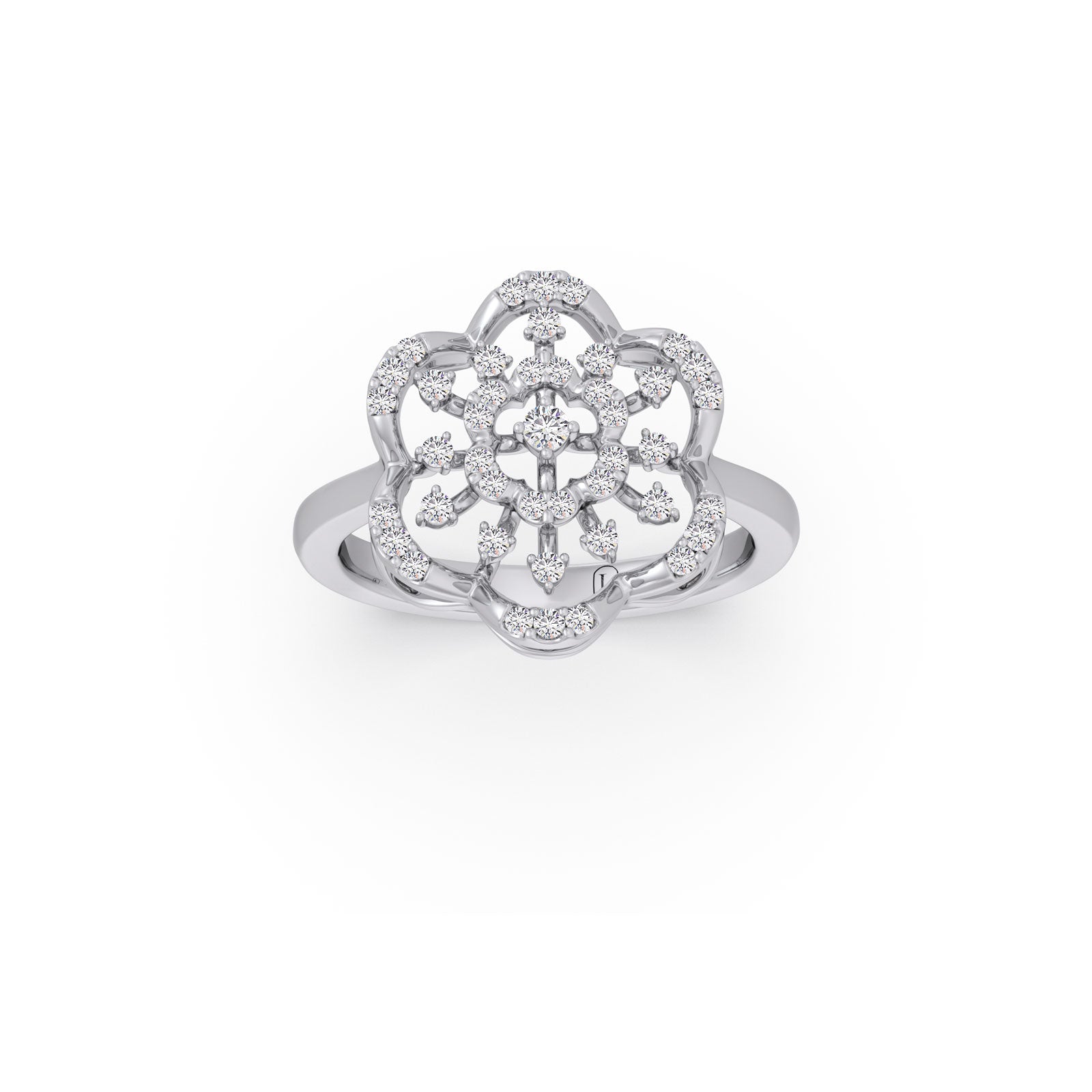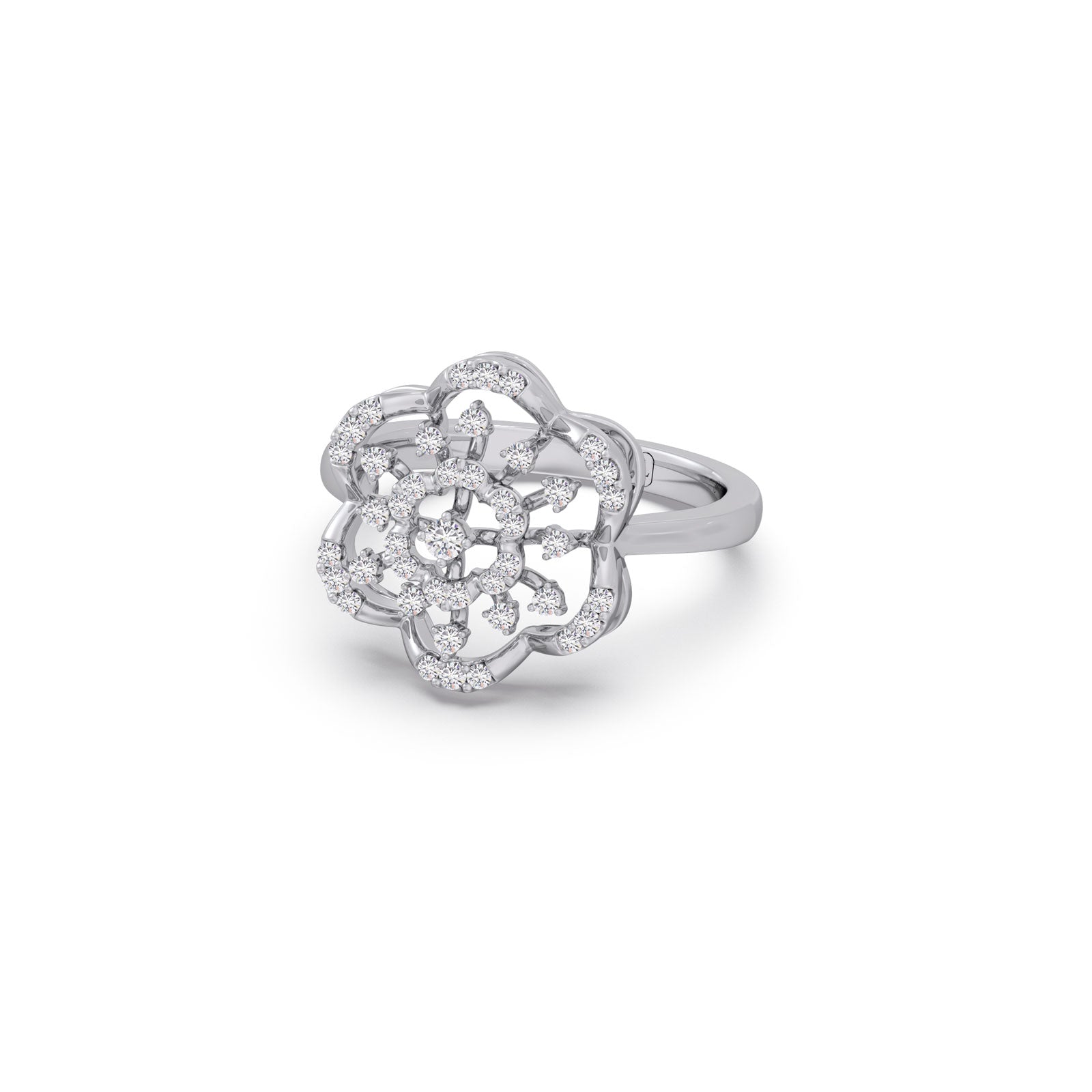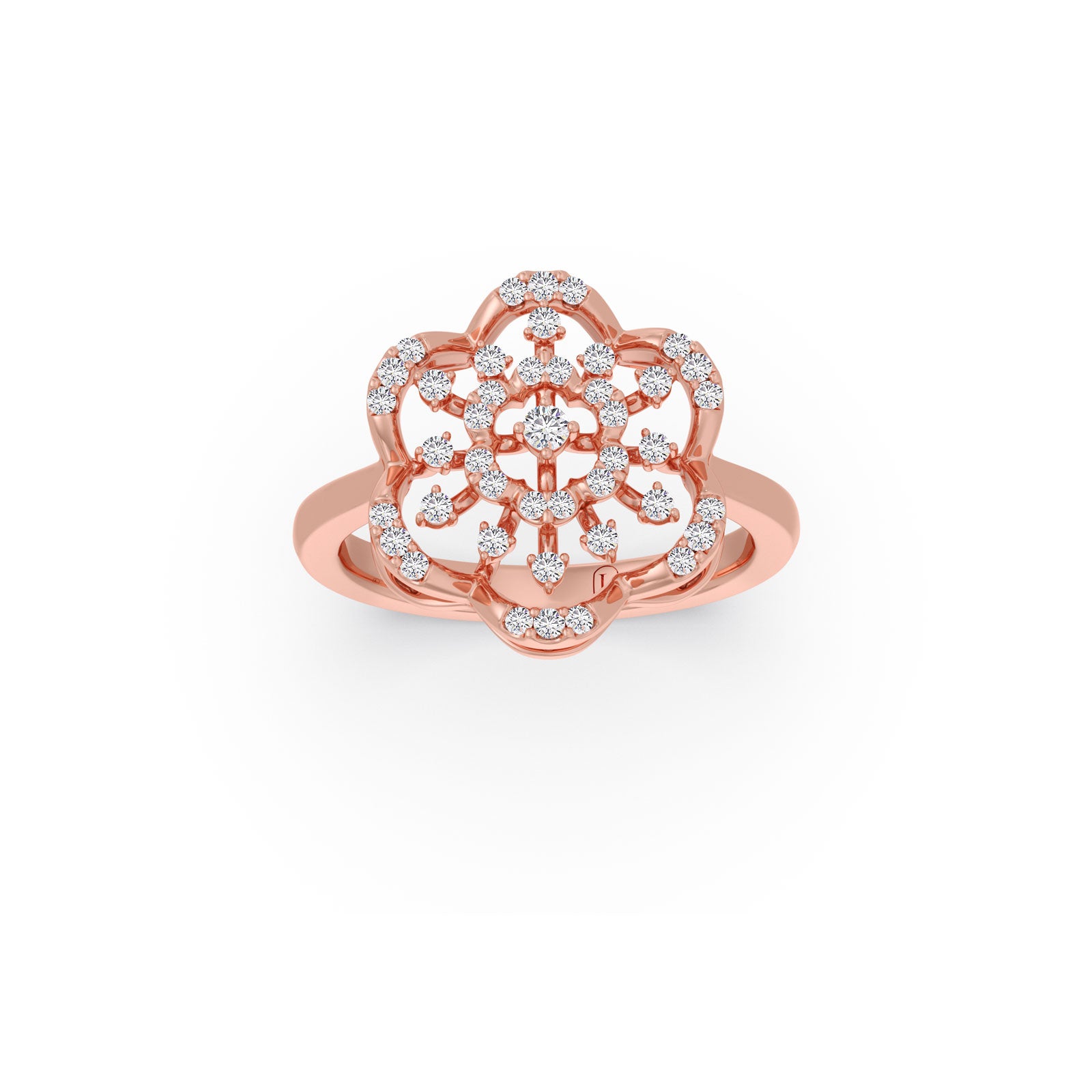 Inspired by motion and nature, this striking ring captures a flower in perpetual bloom. The intricate gold swirl is meticulously studded with diamonds, creating depth and a luminous, flowing texture. Wear this piece to showcase unique artistry and elegant geometry.