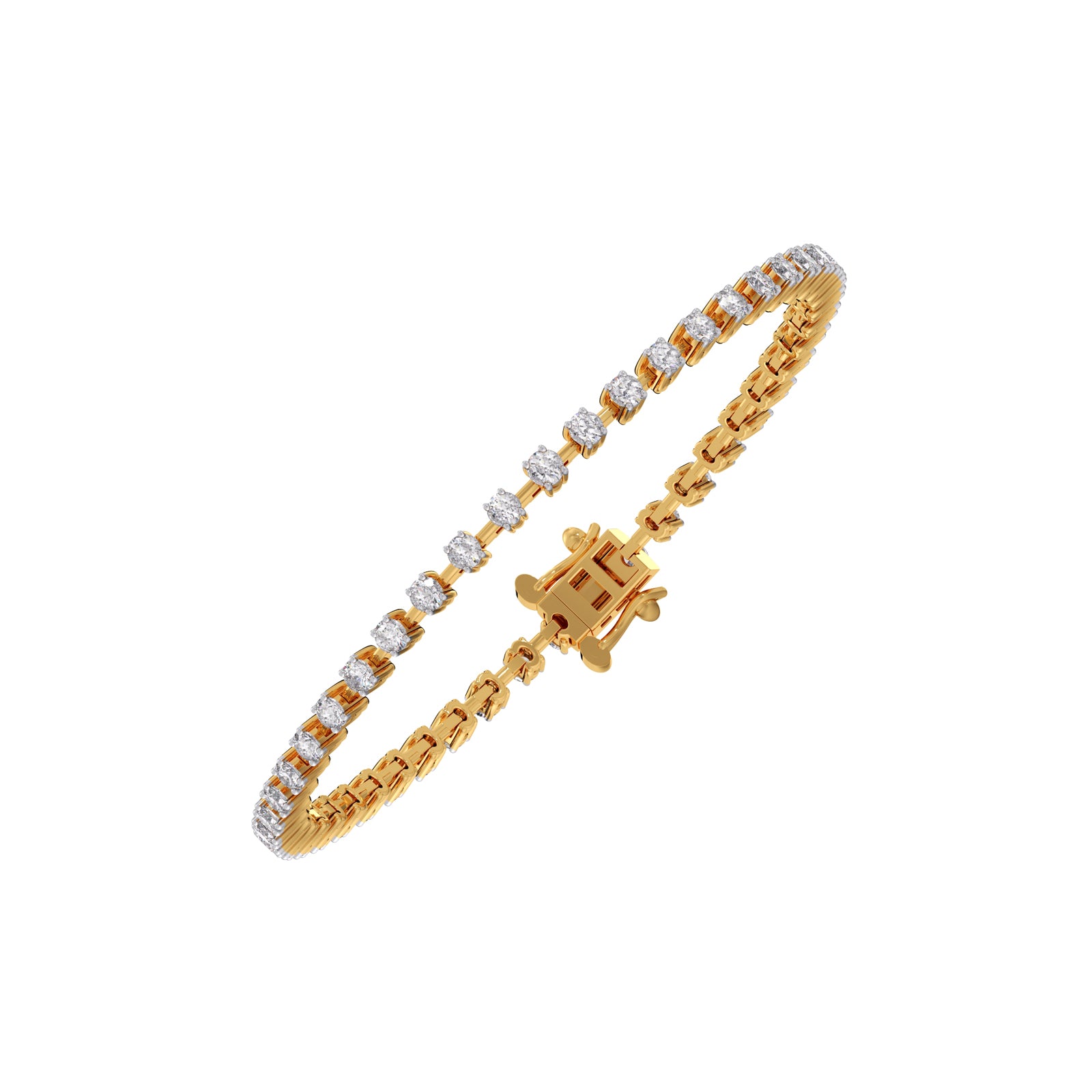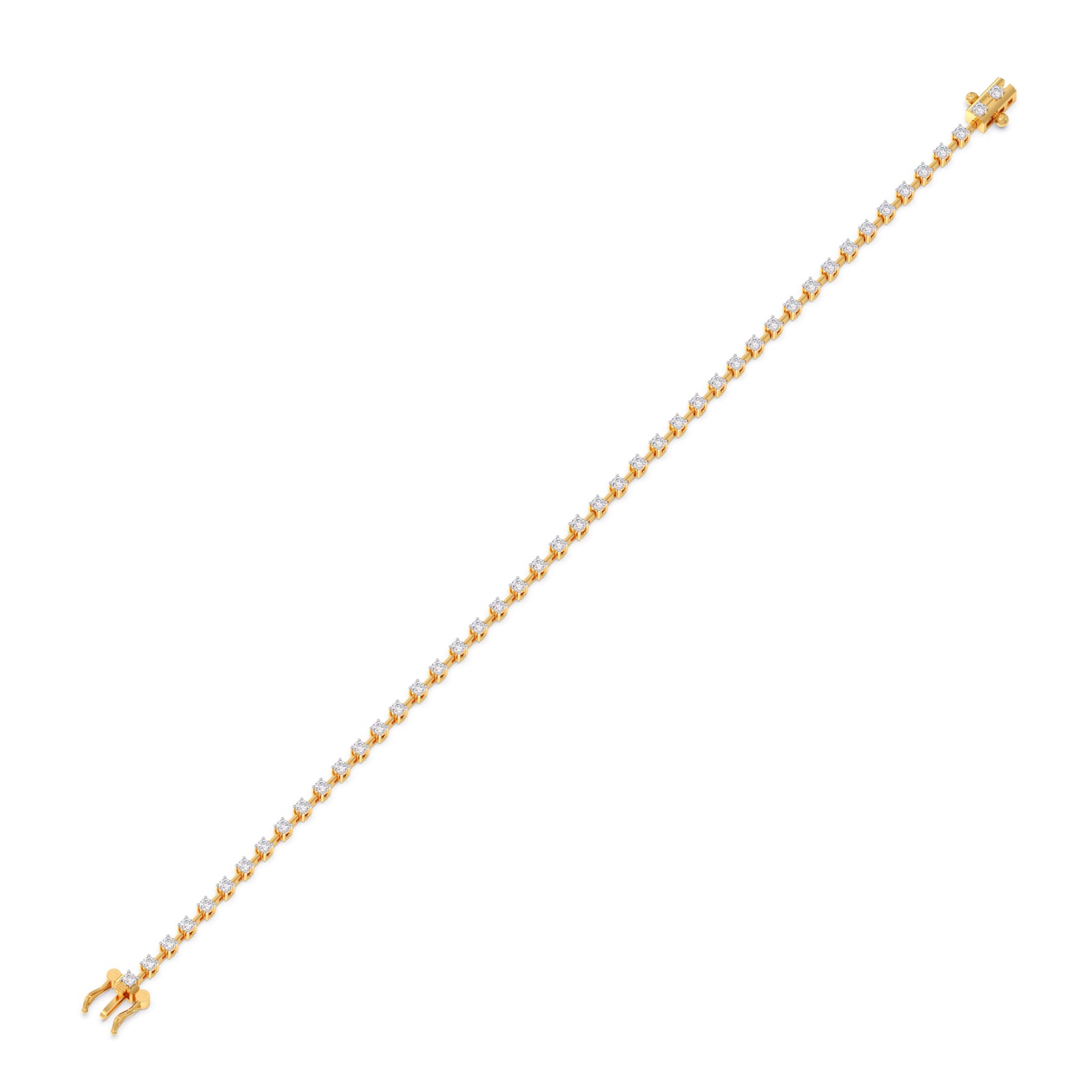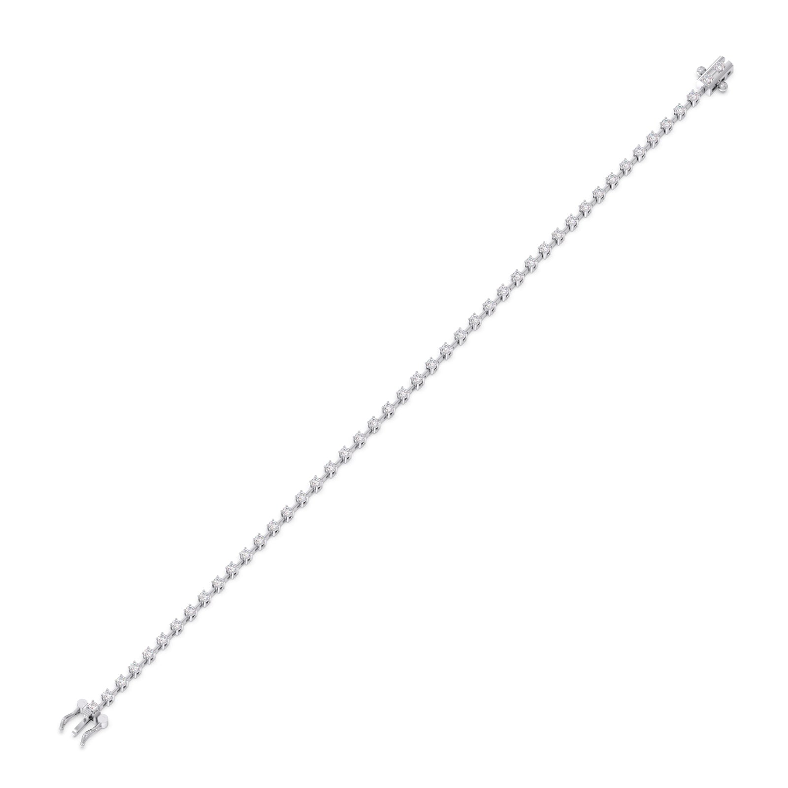 This elegant bracelet features a seamless row of 1ct brilliant round-cut diamonds set in a prong setting. It is secured with a box clasp lock accent for a customizable fit.