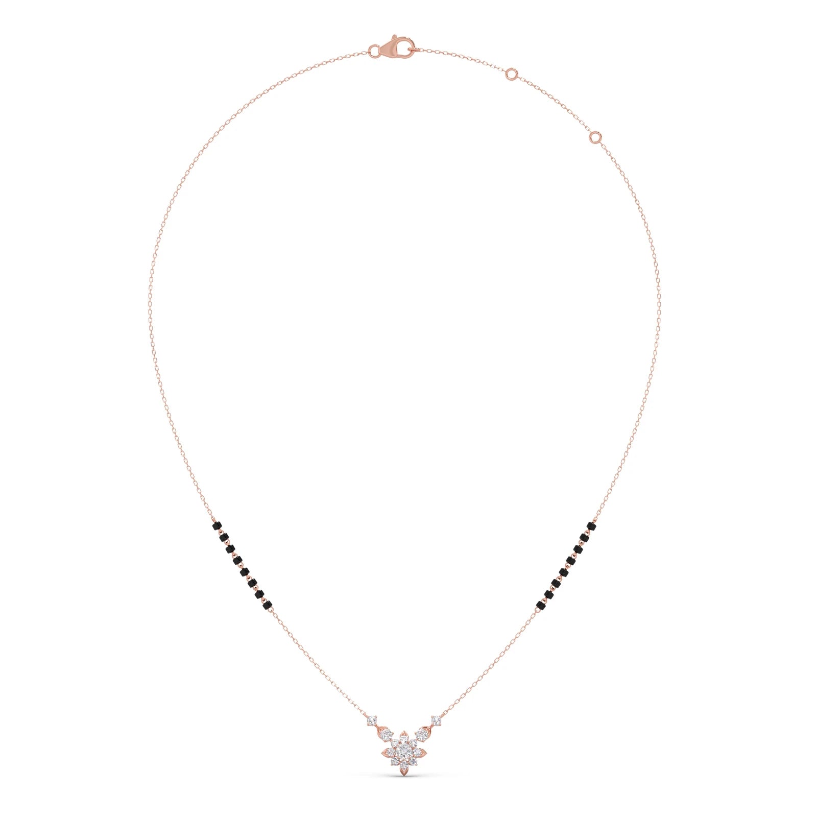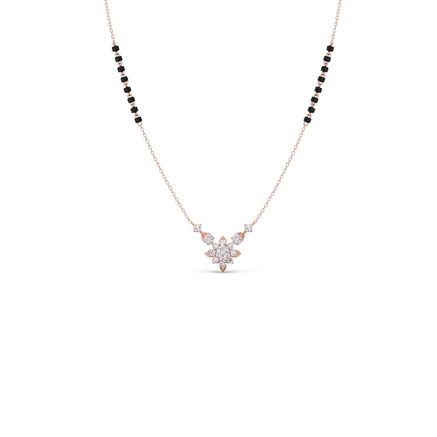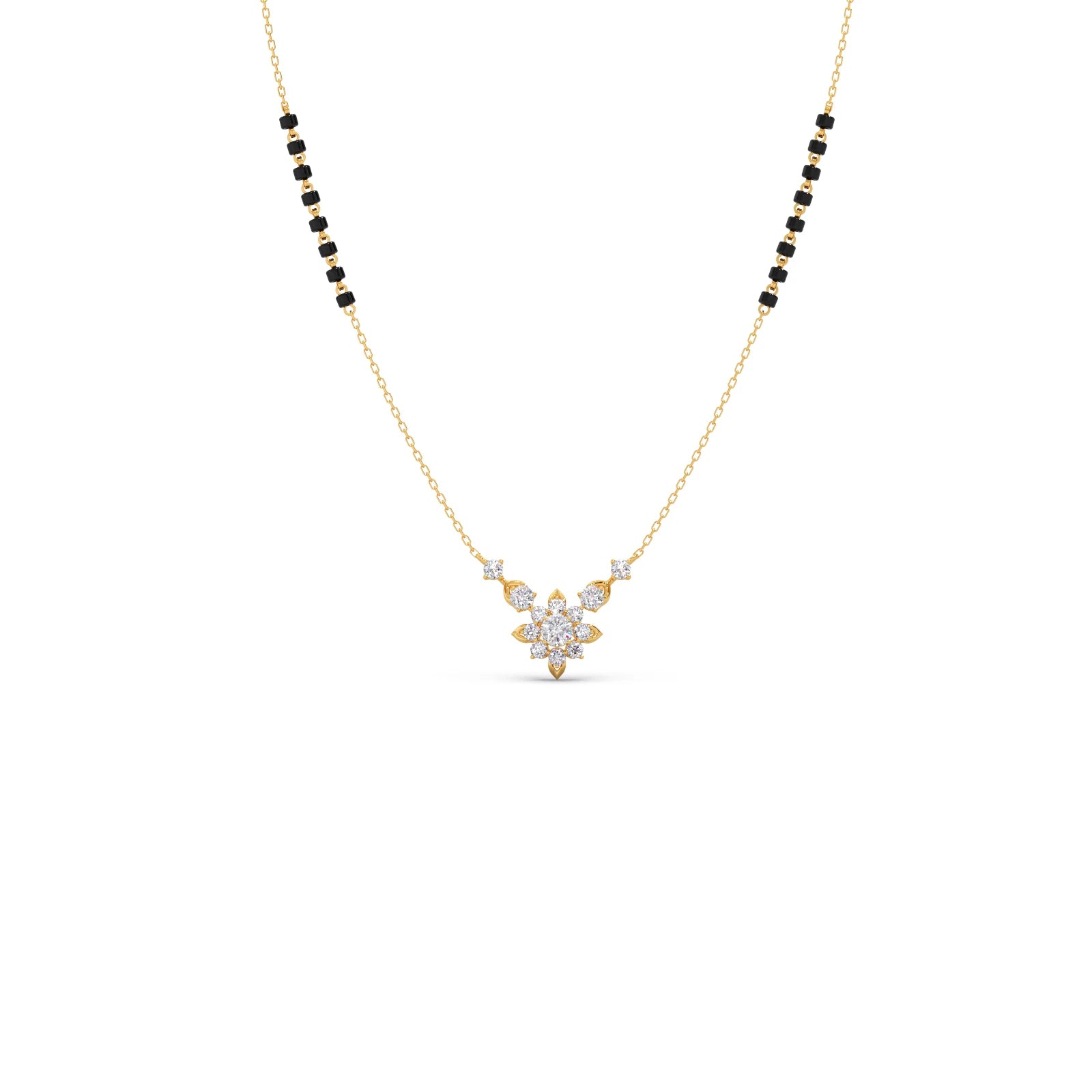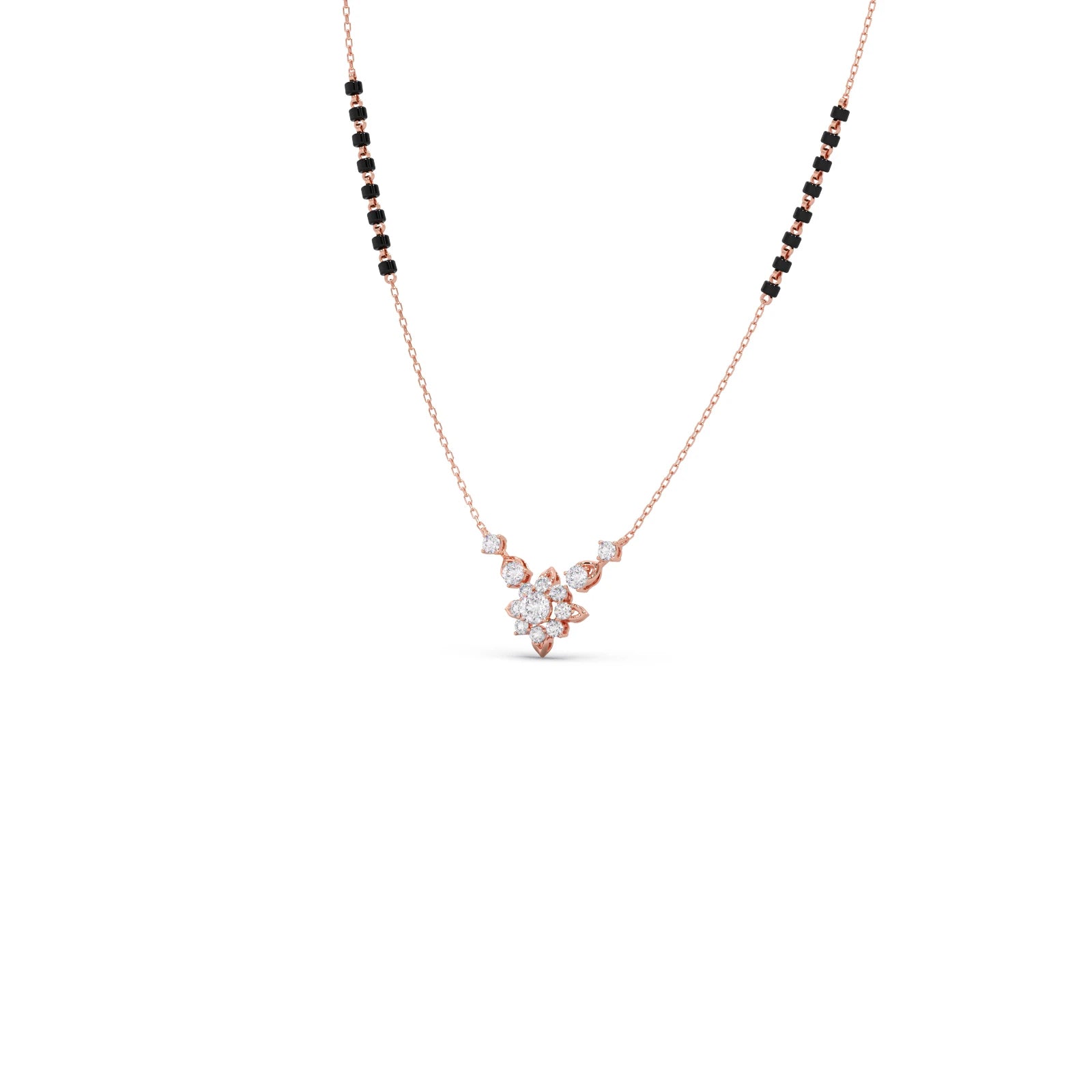 This refined tanmaniya features a series of sparkling round diamonds, gracefully set along a slender chain. The minimalist design emphasizes the brilliance of each individual stone, creating a subtle yet elegant necklace perfect for everyday wear or layering.