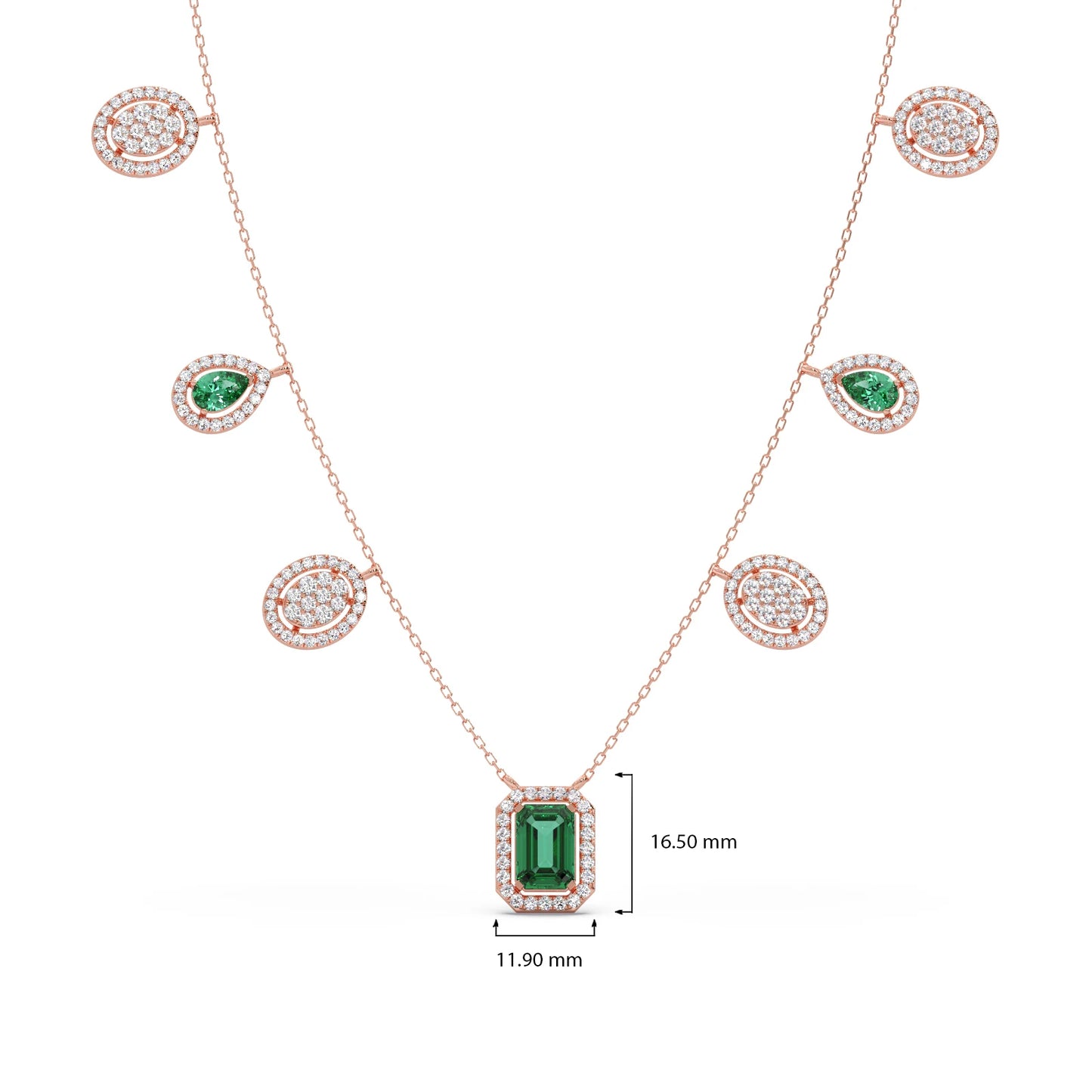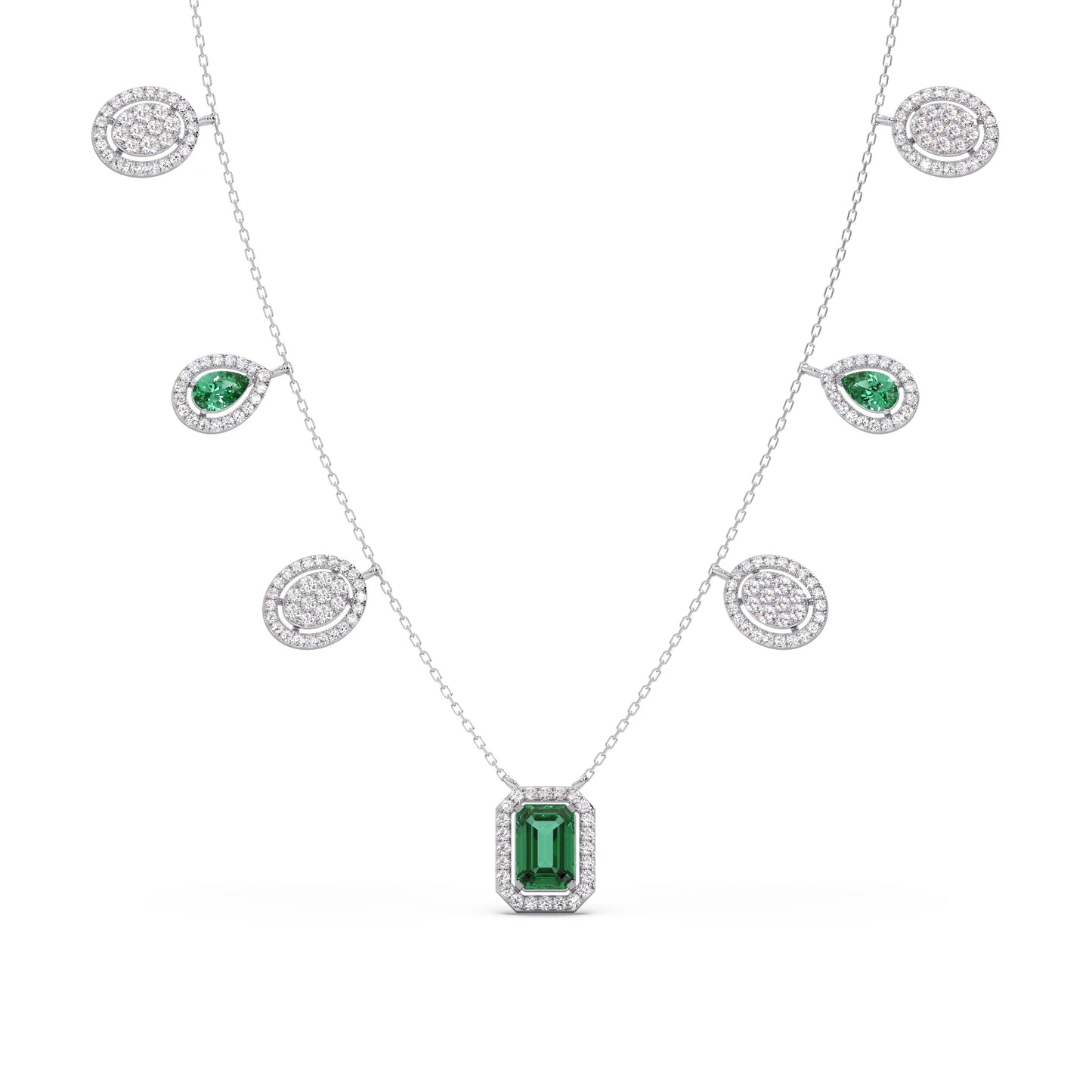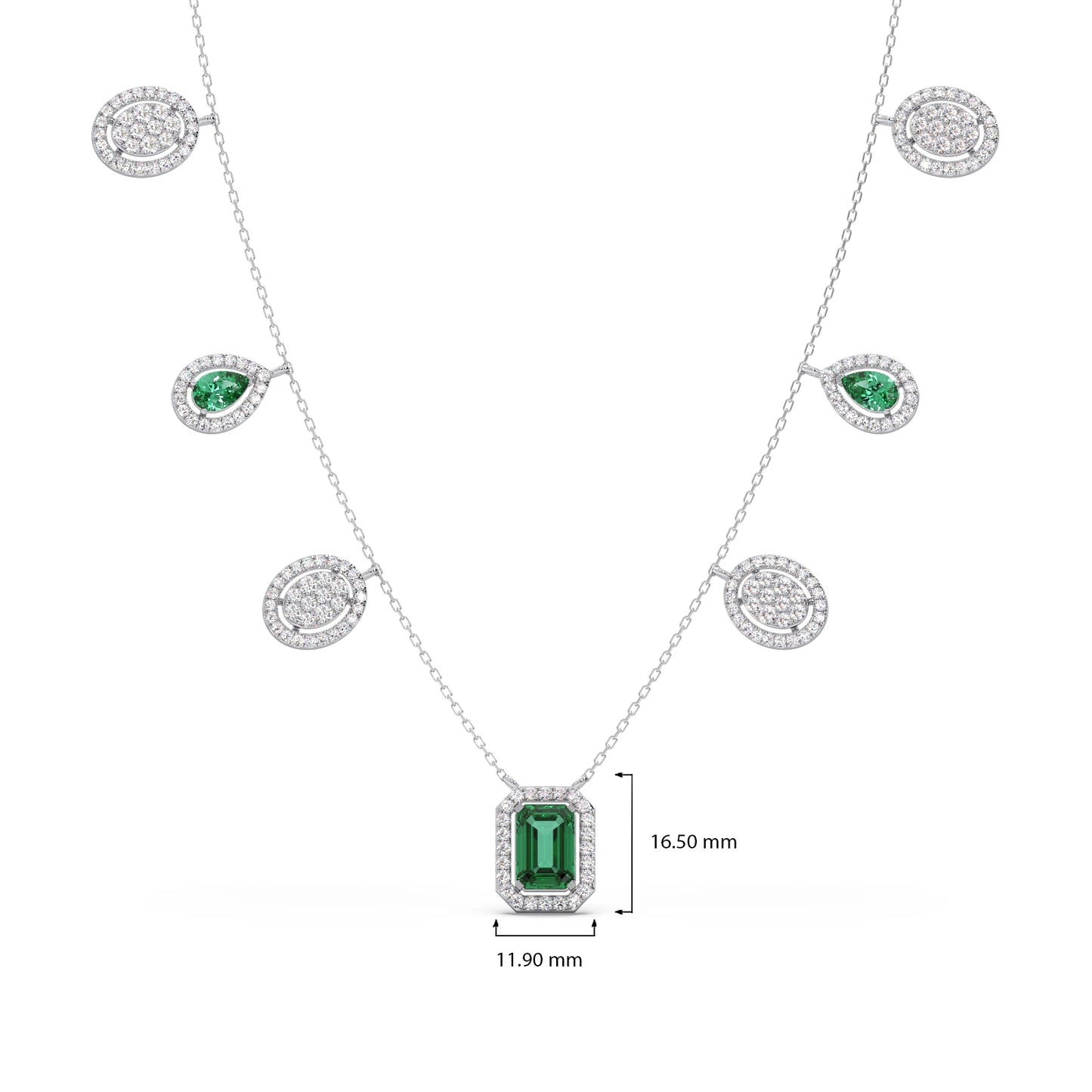 Indulge in elegance with this captivating necklace, featuring a brilliant diamond accenting a vibrant emerald-cut green gemstone dangle. Set in gleaming gold, this piece exudes sophistication and timeless charm. A perfect statement for any occasion, adding a touch of color and sparkle to your look.