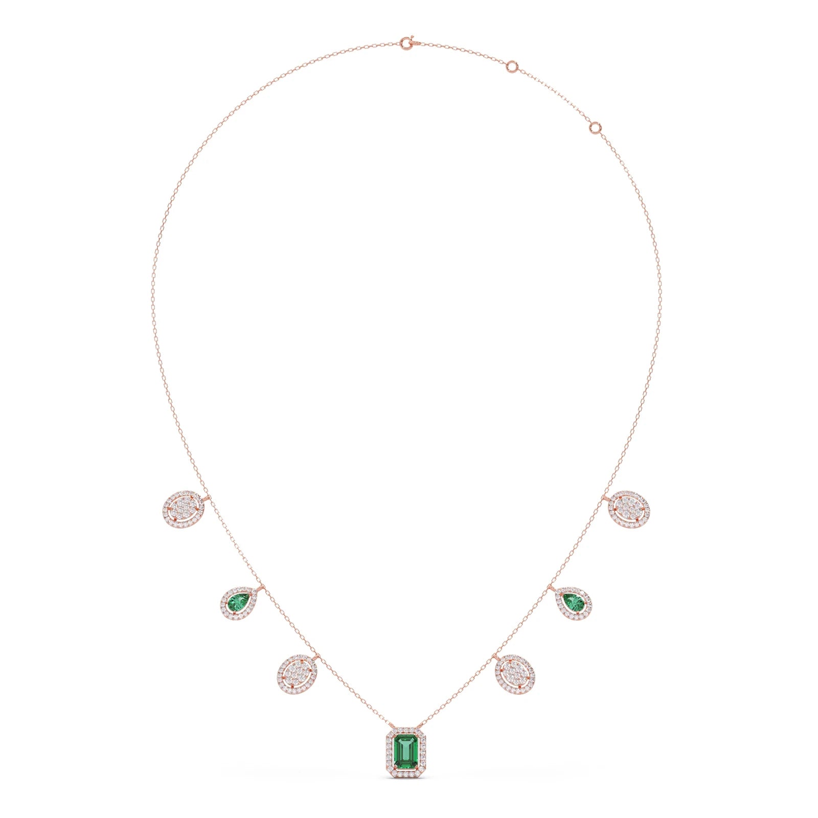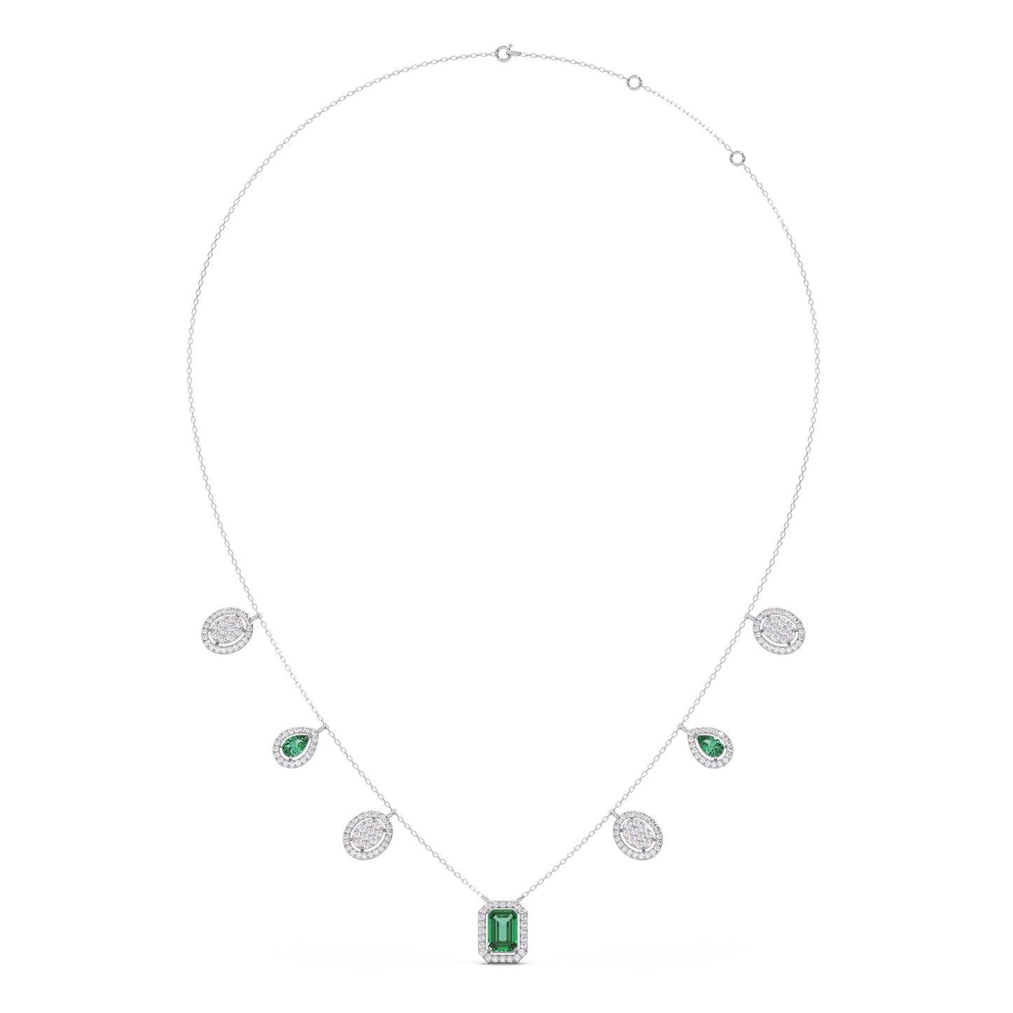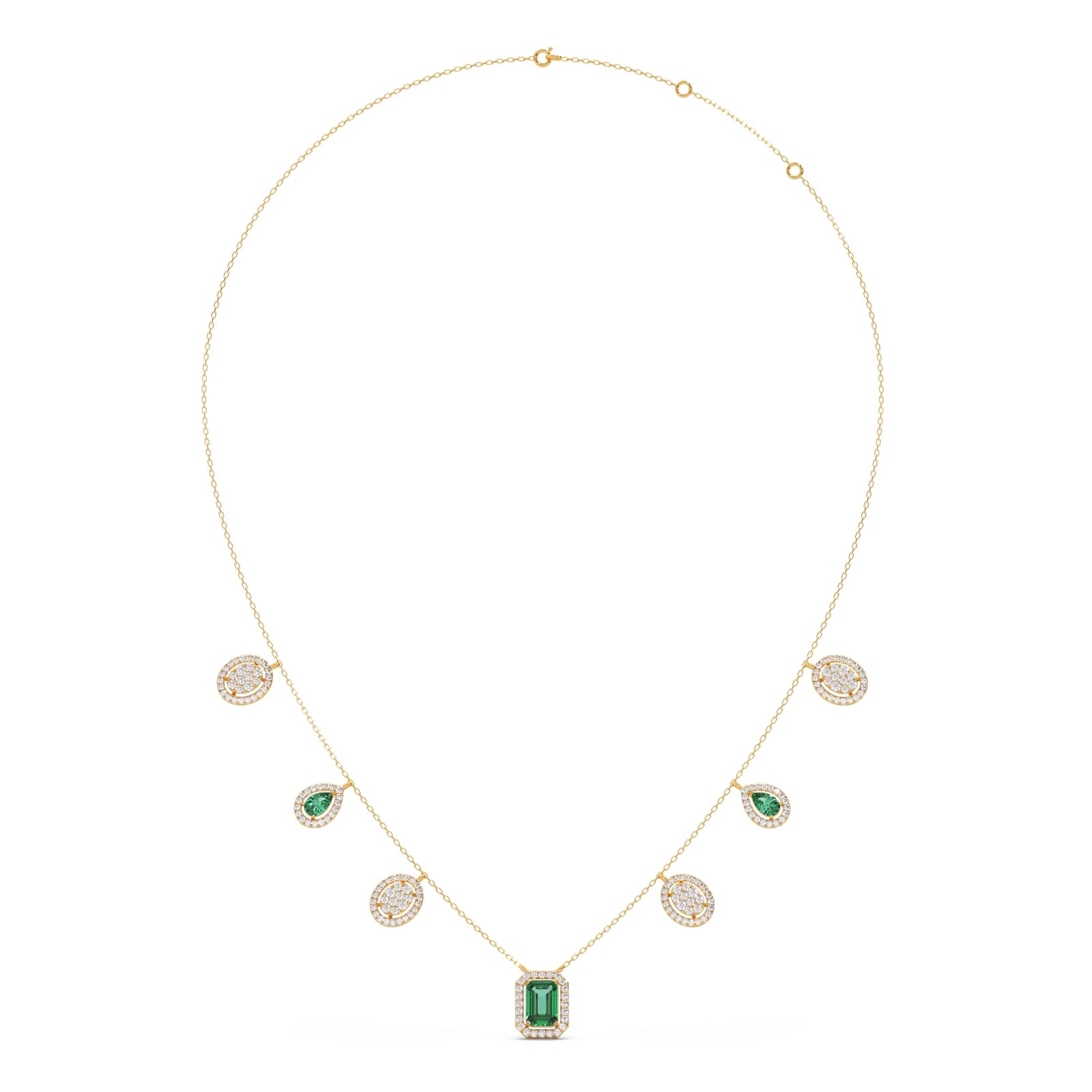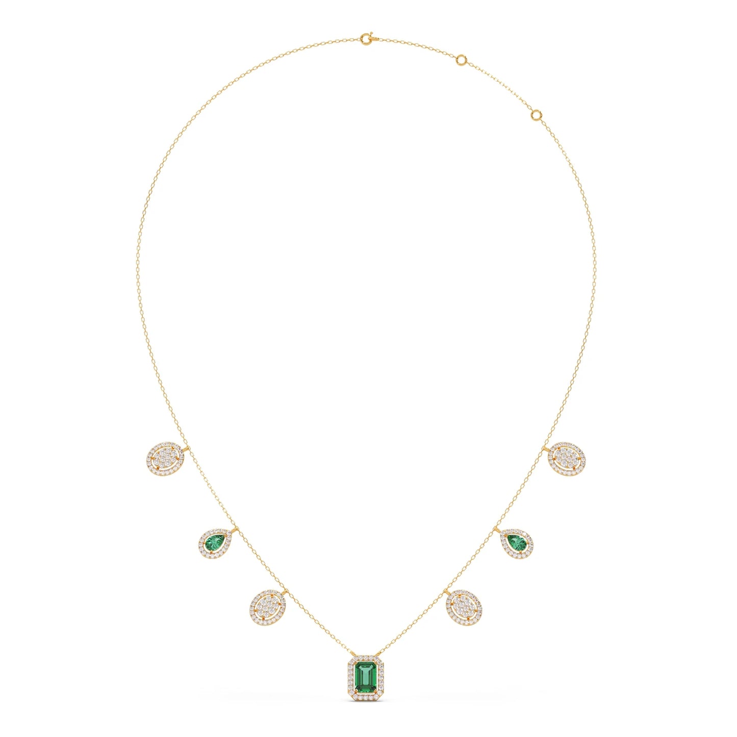 Indulge in elegance with this captivating necklace, featuring a brilliant diamond accenting a vibrant emerald-cut green gemstone dangle. Set in gleaming gold, this piece exudes sophistication and timeless charm. A perfect statement for any occasion, adding a touch of color and sparkle to your look.
