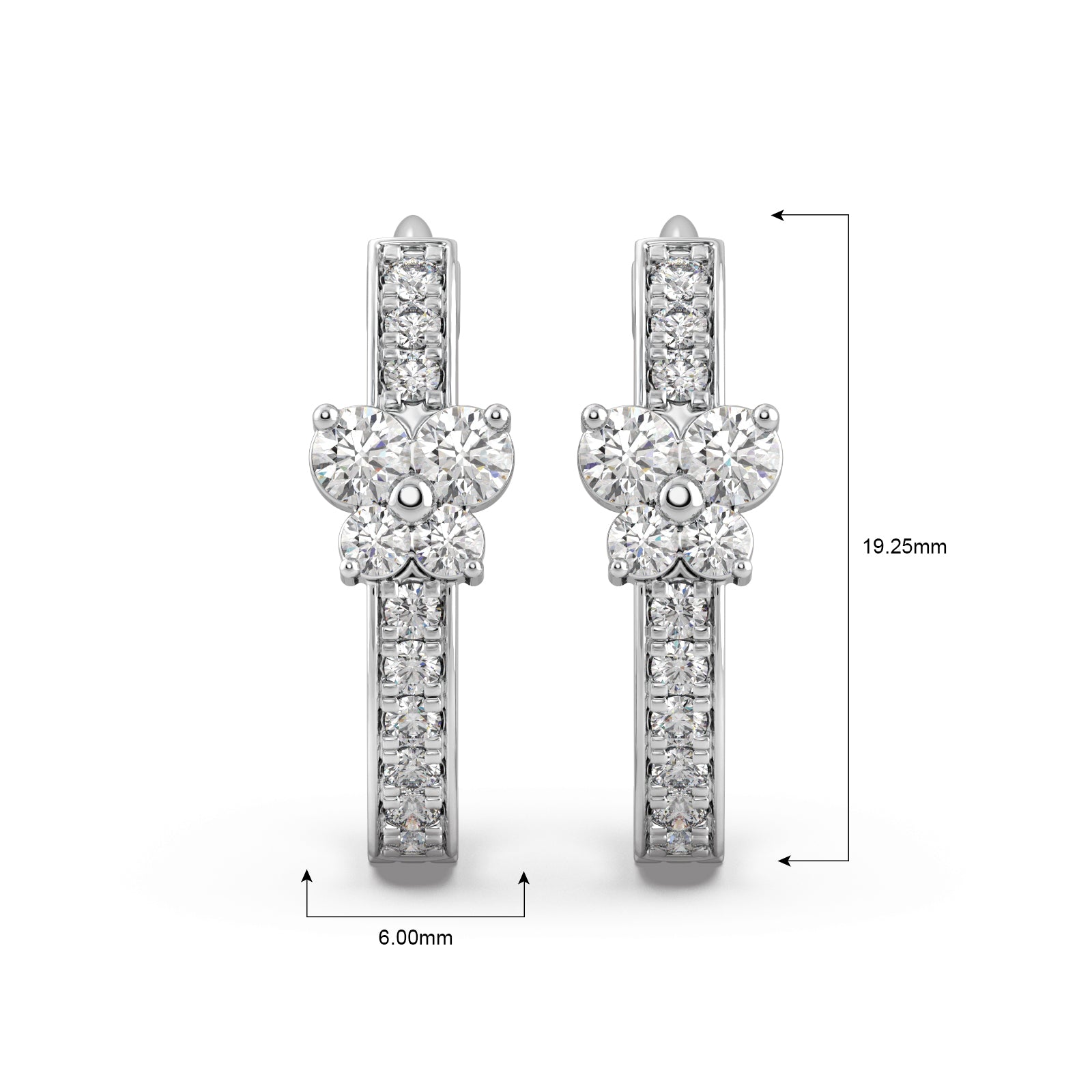 These exquisite diamond huggie hoop earrings feature a secure, diamond-lined hoop that hugs the earlobe. From each hoop extends a sleek vertical bar accented with fine diamonds, adding a modern touch and refined sparkle to the classic silhouette. The design offers sophisticated elegance with a hint of contemporary flair.
