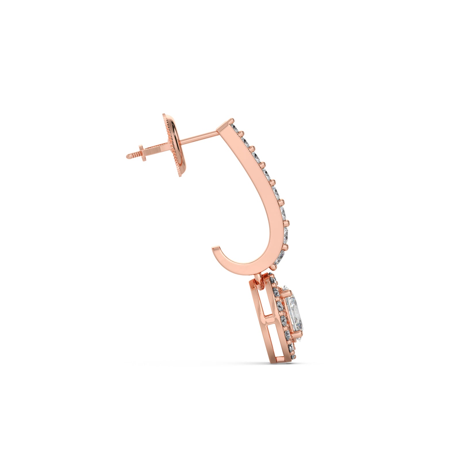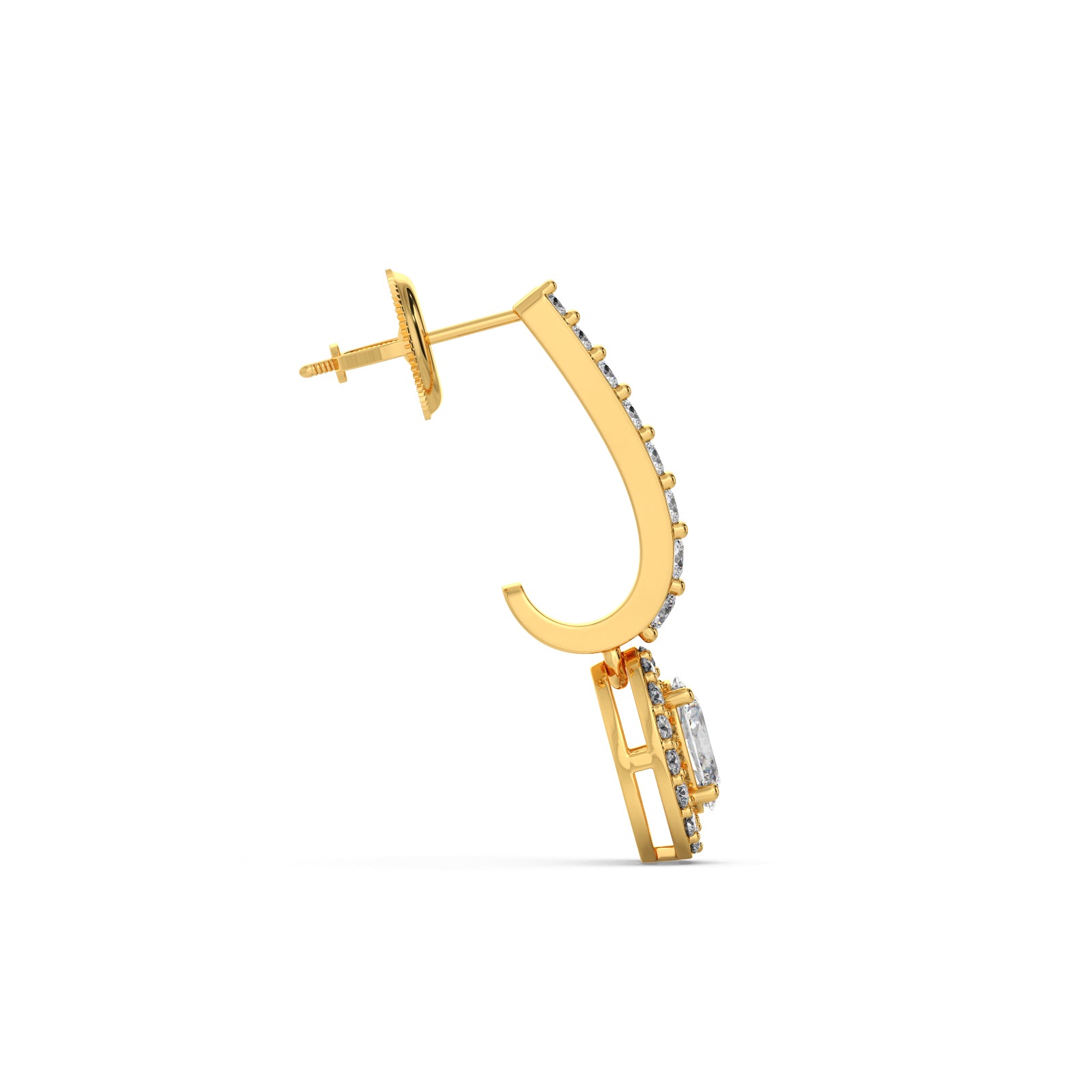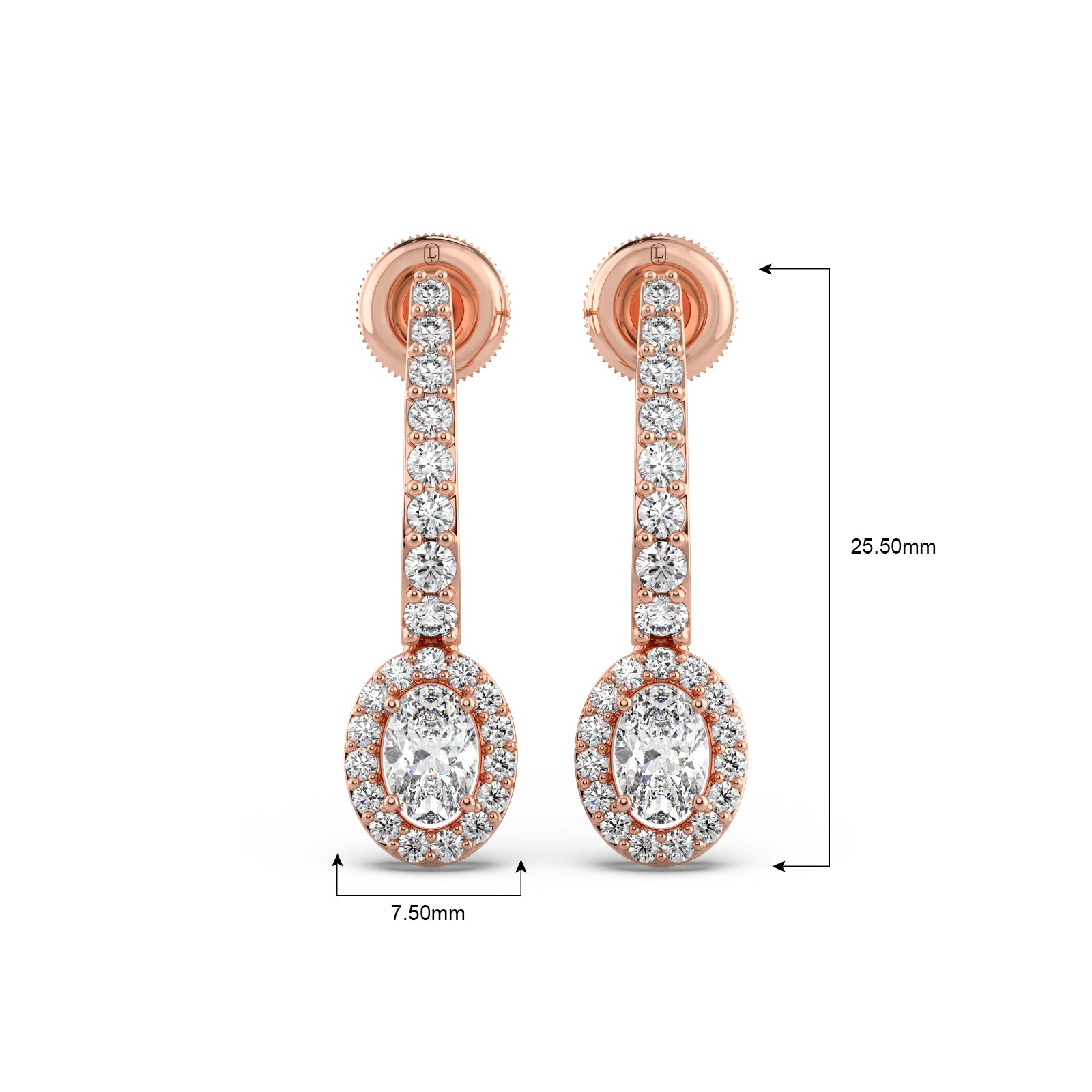 Radiate sophistication with our Diamond Dangle Earrings. These exquisite earrings are crafted in lustrous gold, featuring a gracefully curved line of pave-set diamonds that beautifully suspends a stunning oval-cut diamond, encircled by a brilliant halo. This design maximizes sparkle and elegance, making them a perfect statement piece for any special occasion.