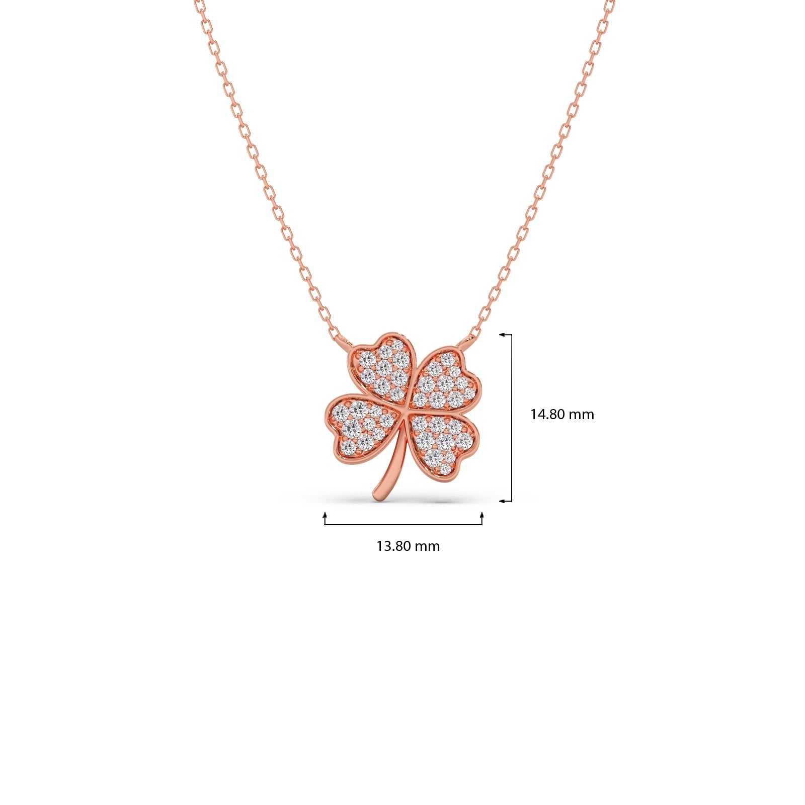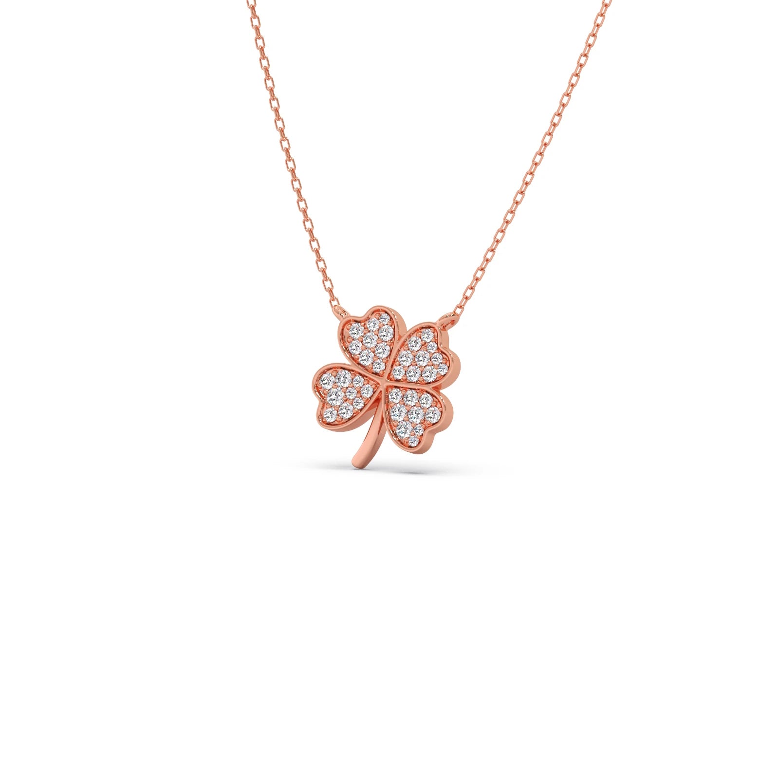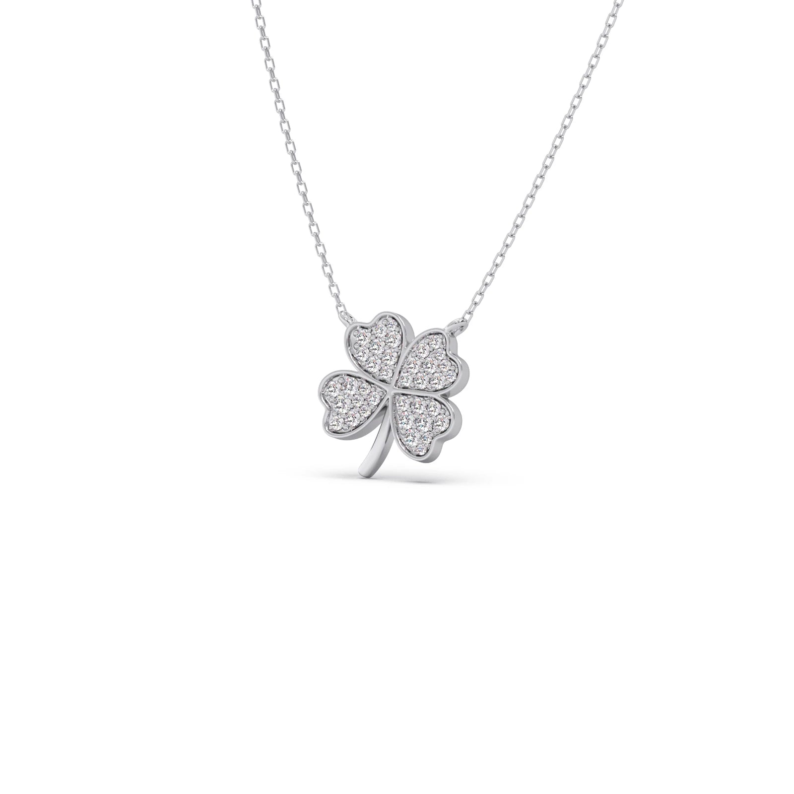 This enchanting pendant blends floral grace with the charm of good fortune. A delicate diamond flower forms the core of the clover, surrounded by sparkling petals. Its intricate design radiates elegance and symbolism, making it a cherished piece. Perfect for everyday wear or special occasions, this pendant adds a touch of whimsy and brilliance.