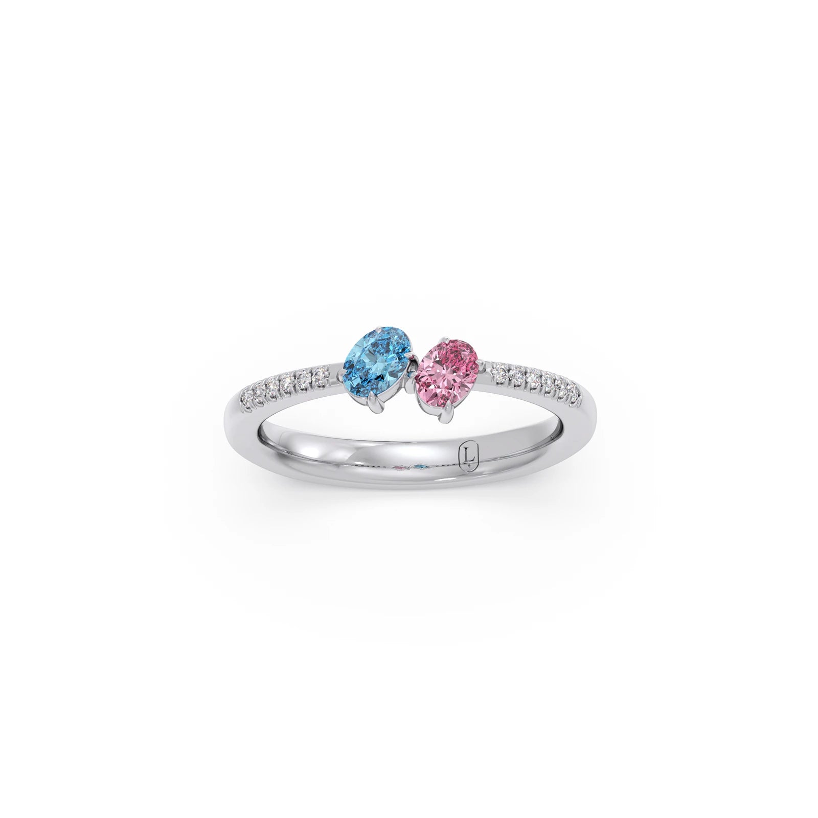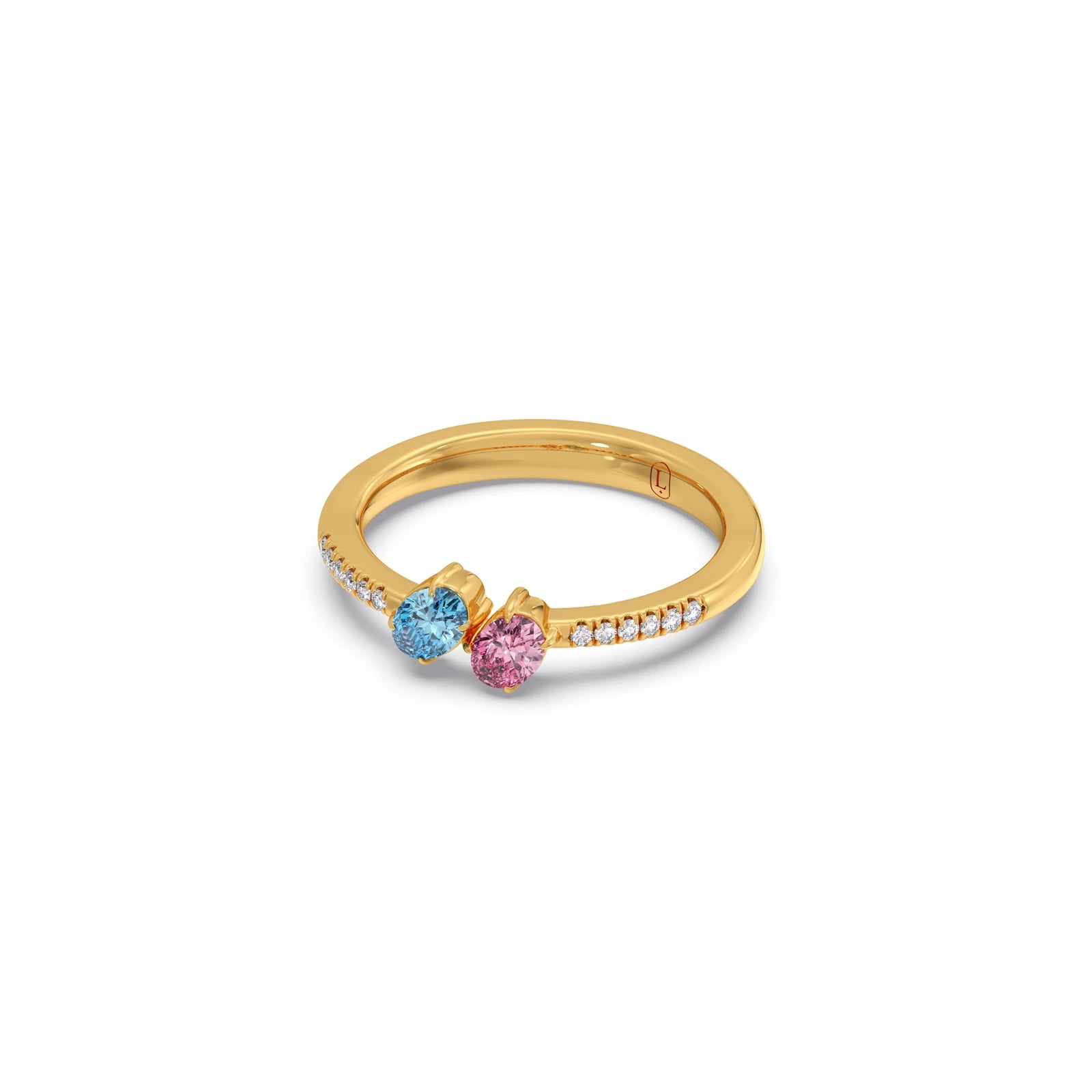 Celebrate your unique love story with this exquisite Toi et Moi ring. Featuring a dazzling diamond paired with a vibrant gemstone, this design symbolizes two souls uniting as one. The 'You & Me' setting makes it a meaningful and timeless choice, crafted to capture the essence of your bond.