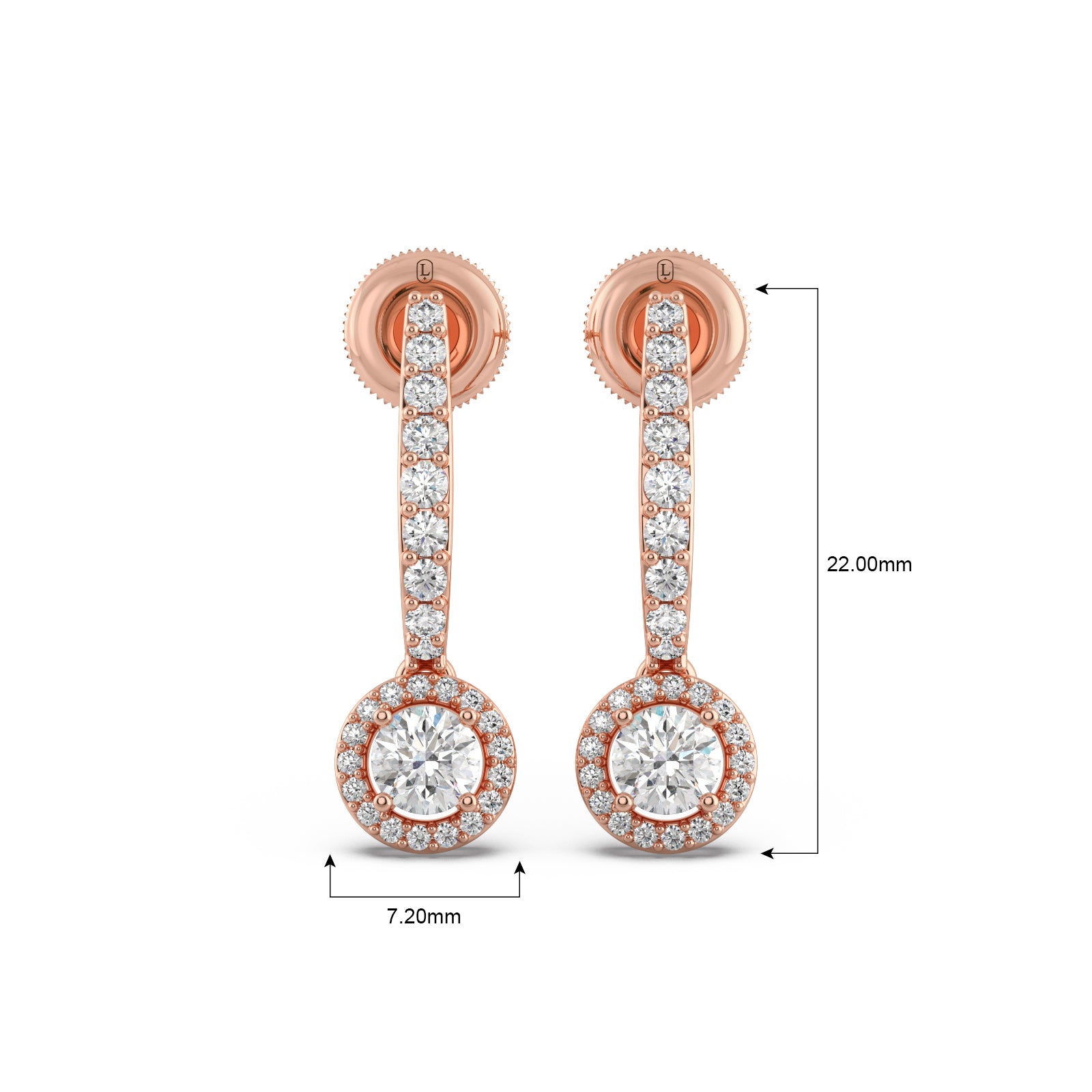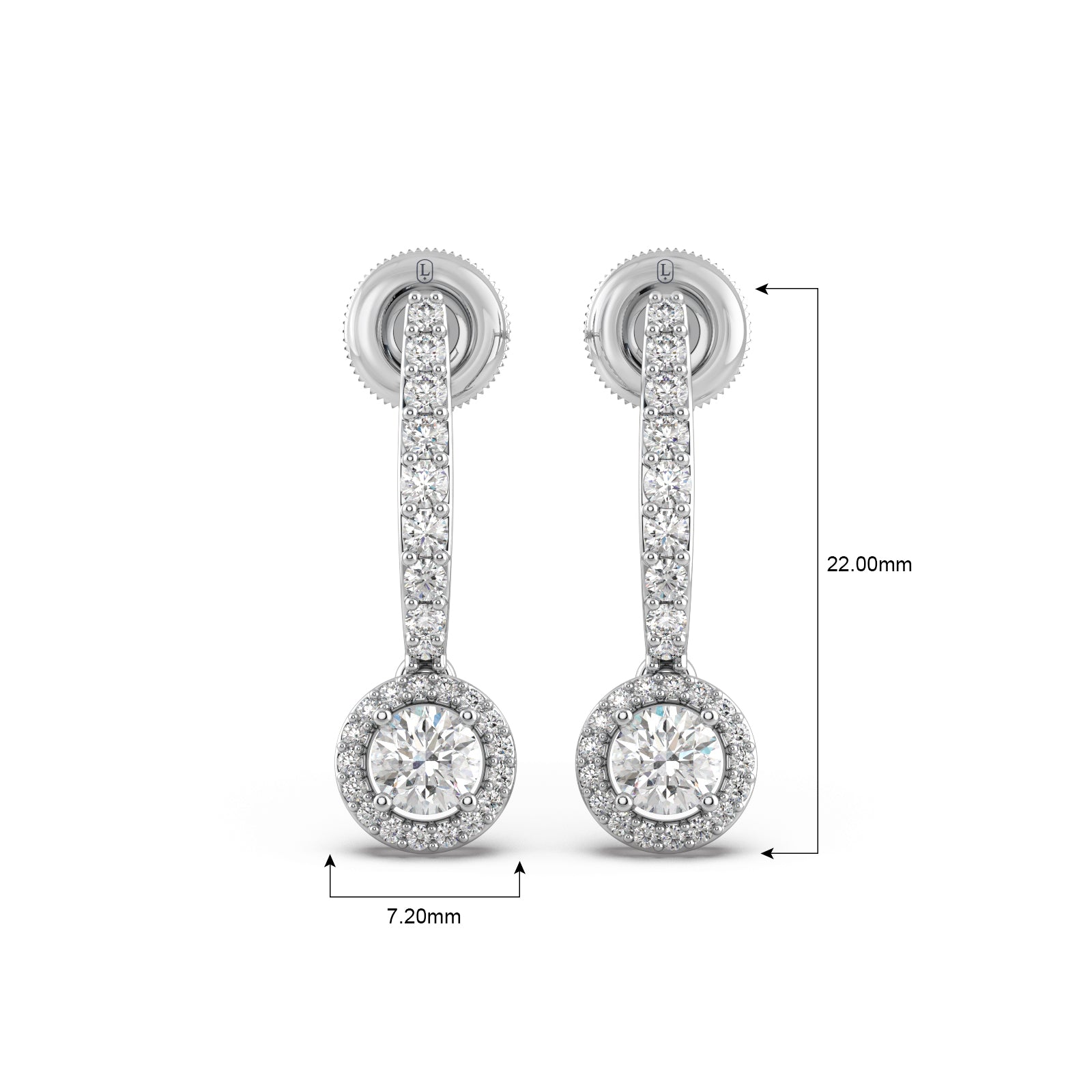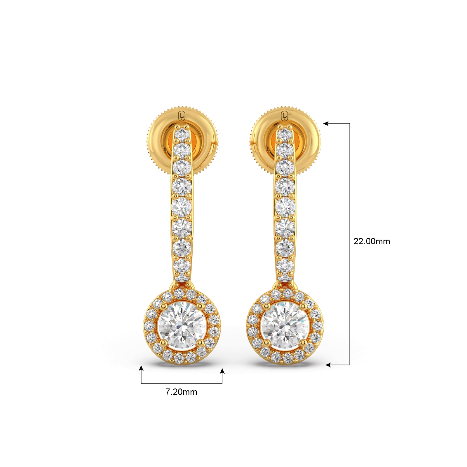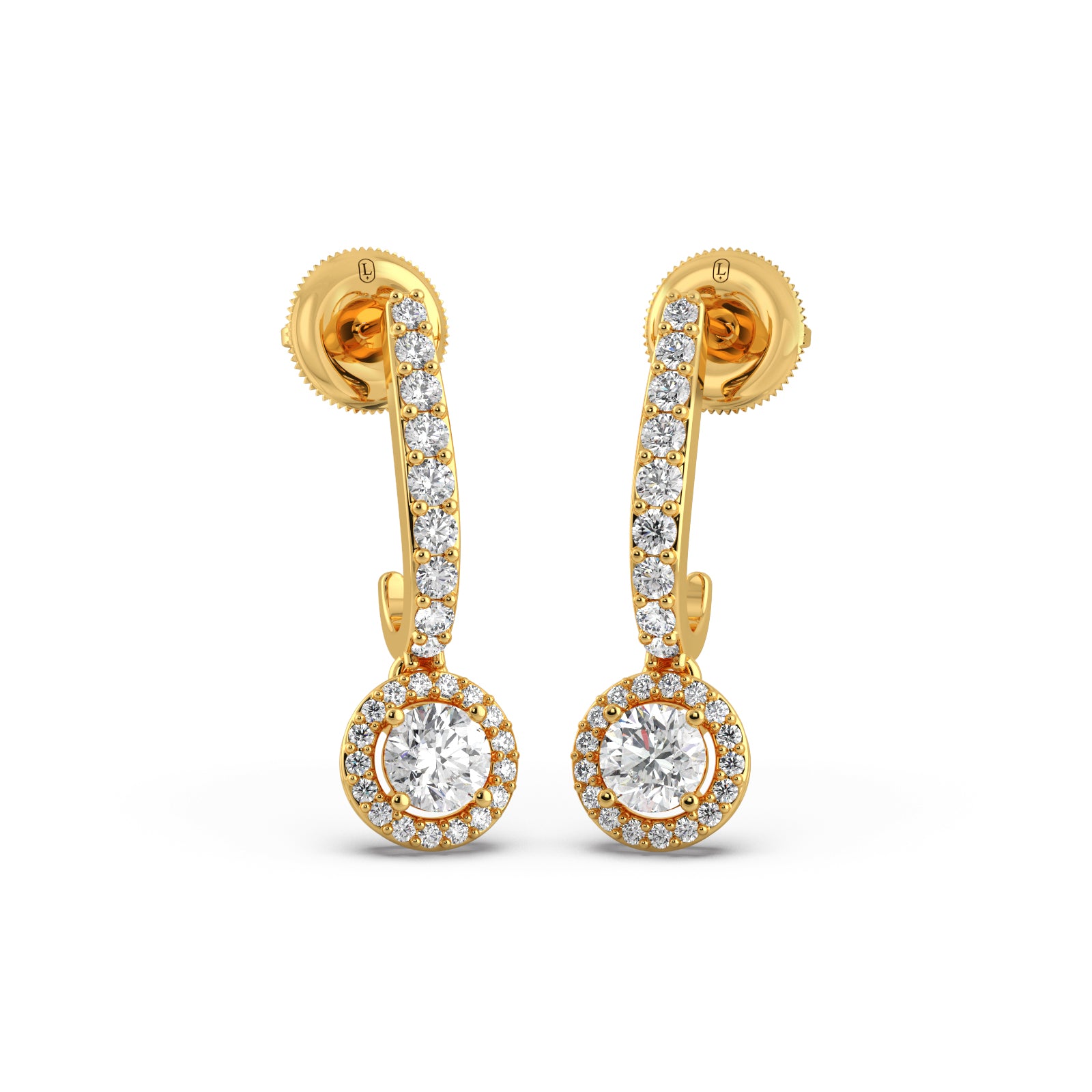 Timeless and elegant, these Diamond Stud and Halo Dangle Earrings offer a captivating sparkle. Crafted in lustrous gold, each earring features a gracefully curved line of pave-set diamonds leading to a breathtaking halo-set diamond at the base. This design ensures maximum brilliance, making them a stunning choice for any special occasion or a sophisticated touch to your evening wear.