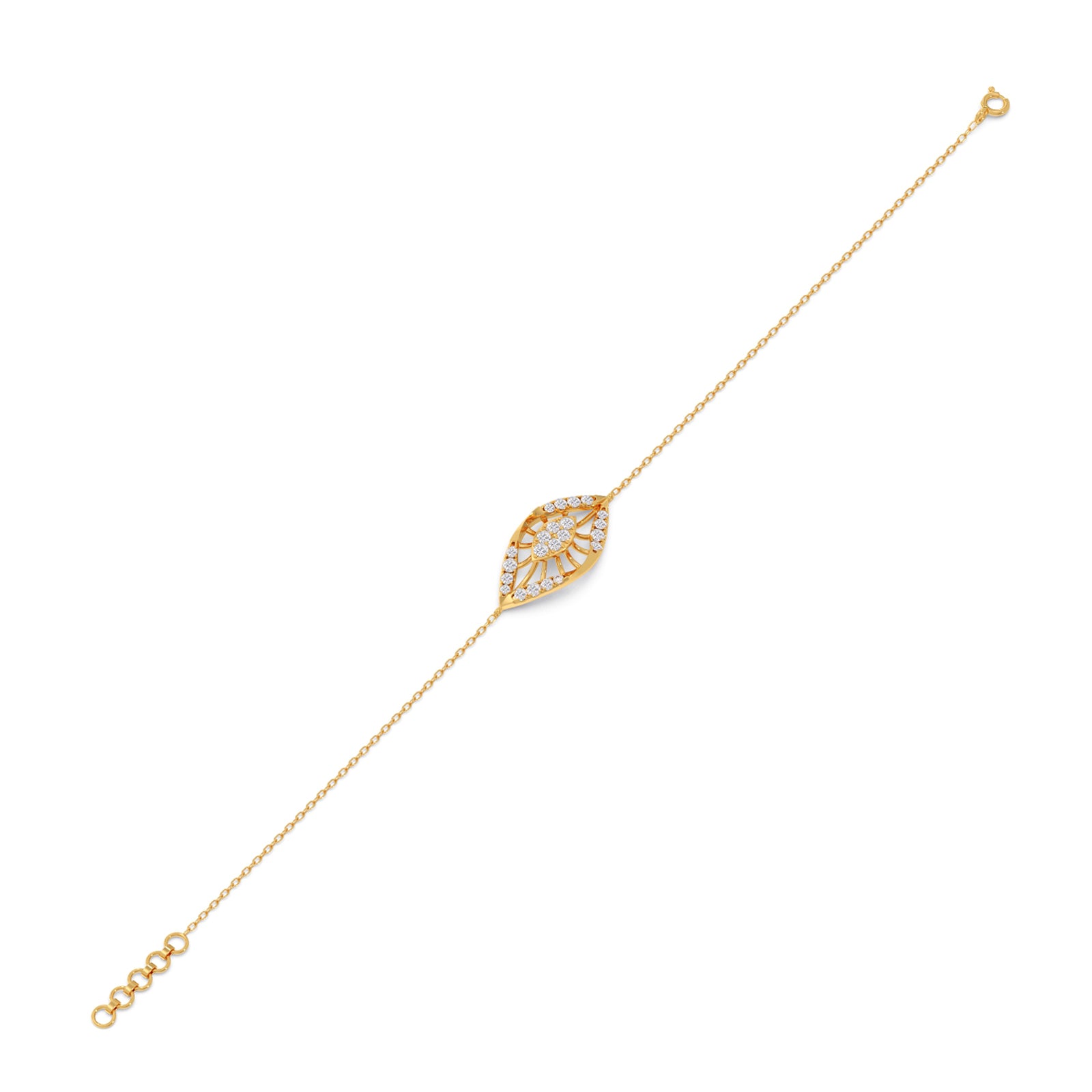 Divine Gaze Chain Bracelet – A symbol of protection and elegance, this bracelet features an eye-inspired design set in a refined chain. Embellished with shimmering stones, it captures the essence of watchful grace and mystical beauty. Wear it as your everyday amulet or a statement of inner strength.