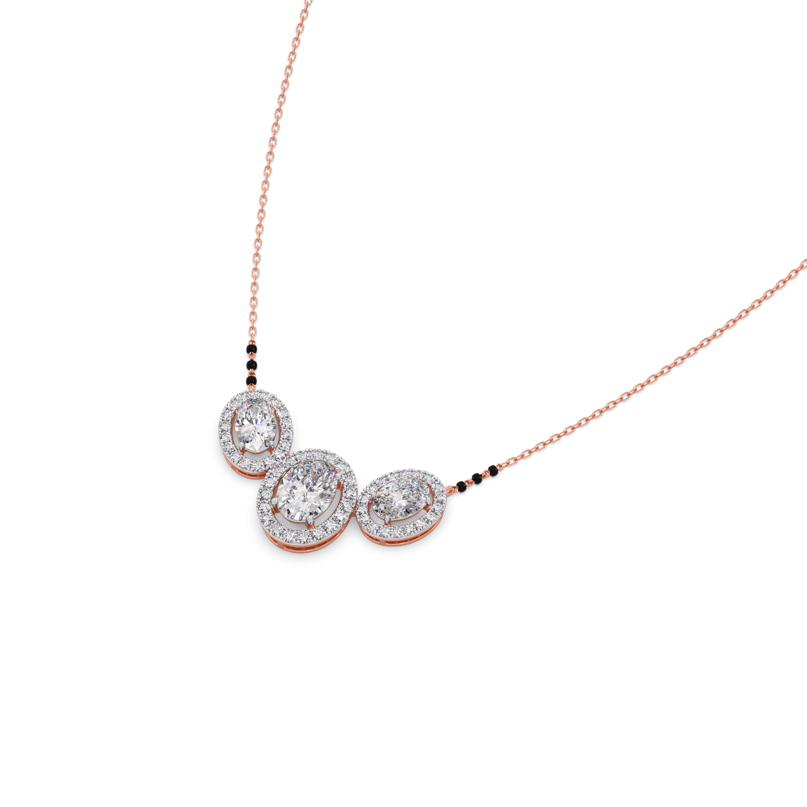 Triple Oval Halo Diamond Mangalsutra Necklace