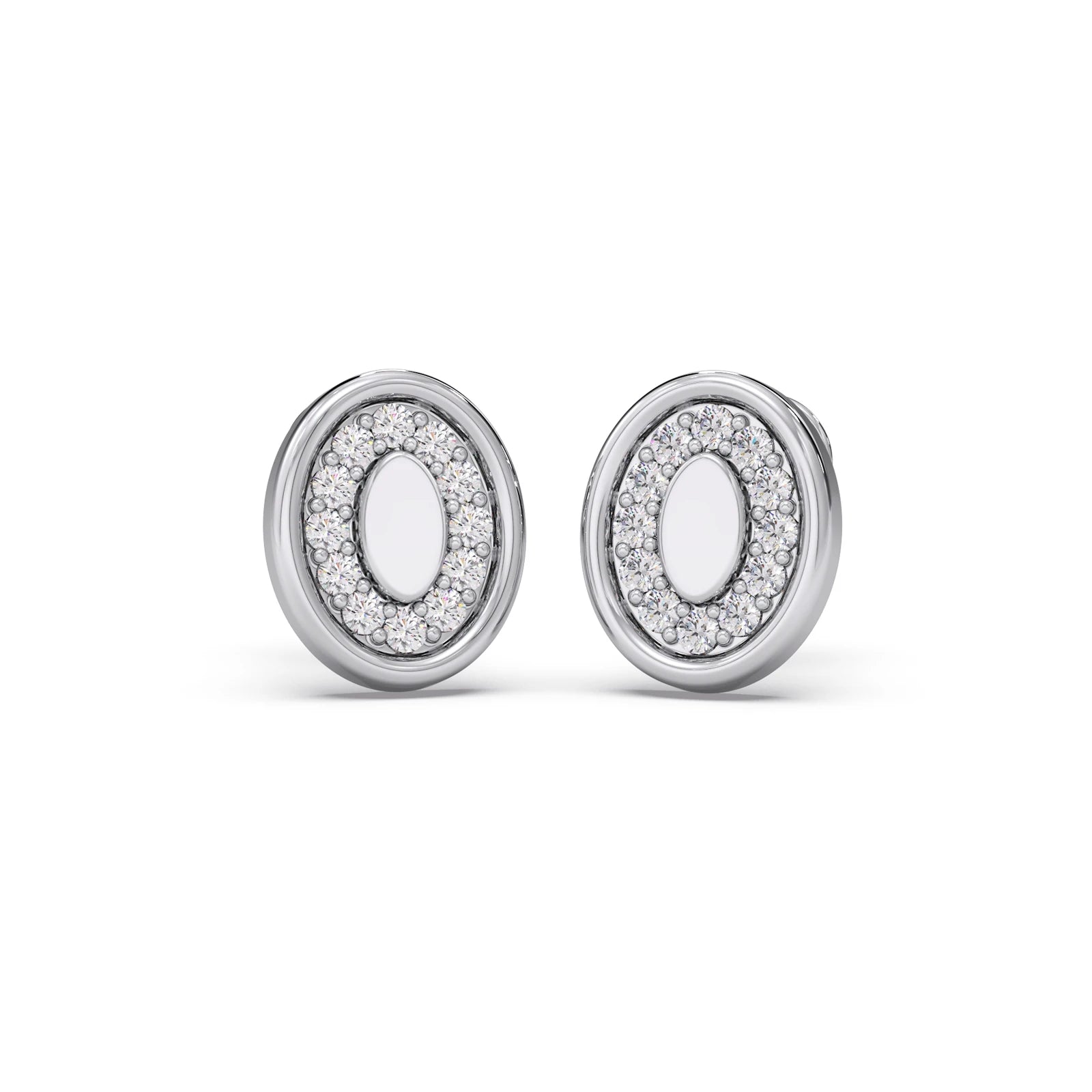 Elegantly crafted in platinum, these stud earrings feature a captivating double oval design, each shimmering with brilliant-cut diamonds. A timeless expression of refined style, they add a touch of sophisticated sparkle to any look. Perfect for everyday luxury or special occasions.