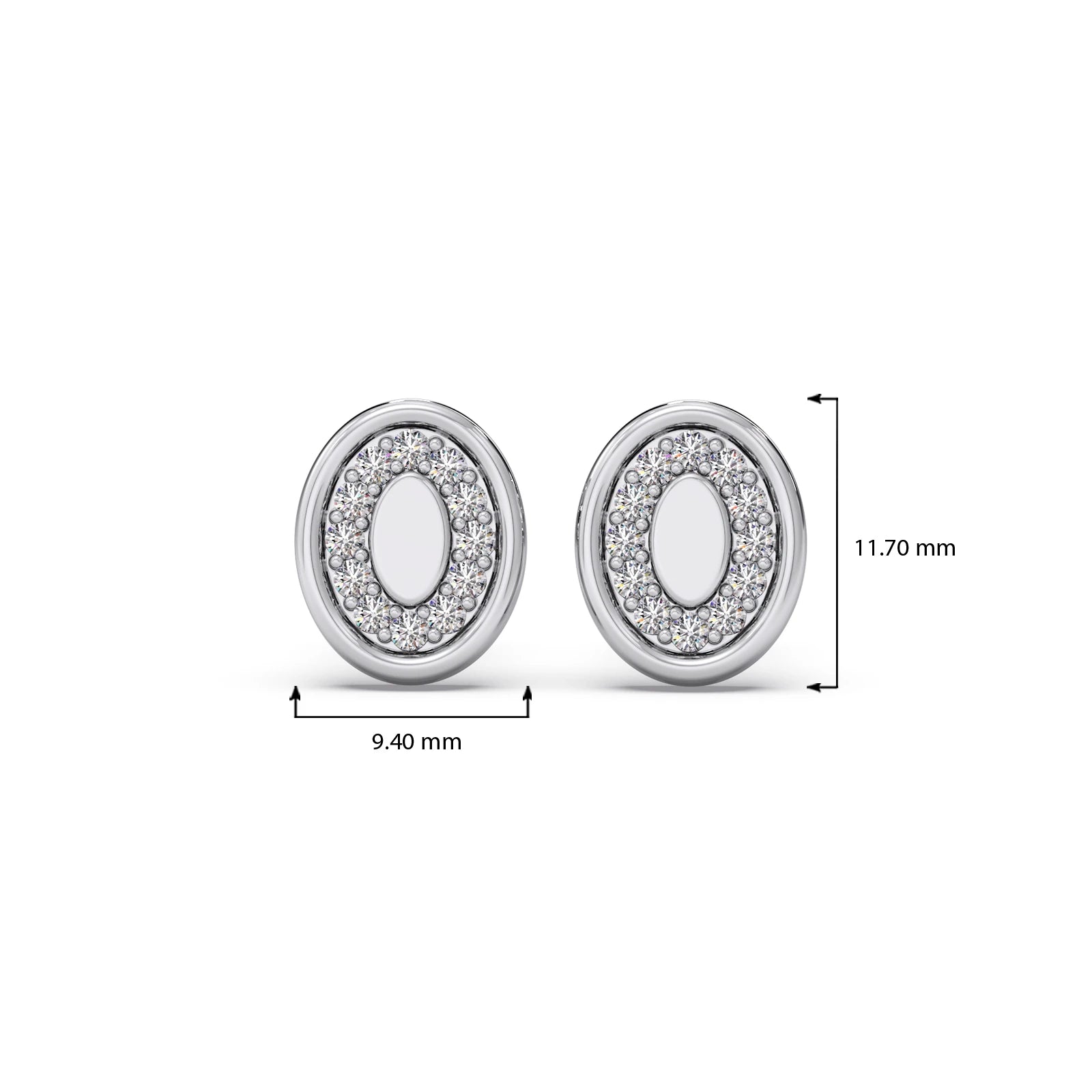 Double Oval Diamond Stud Platinum Earrings