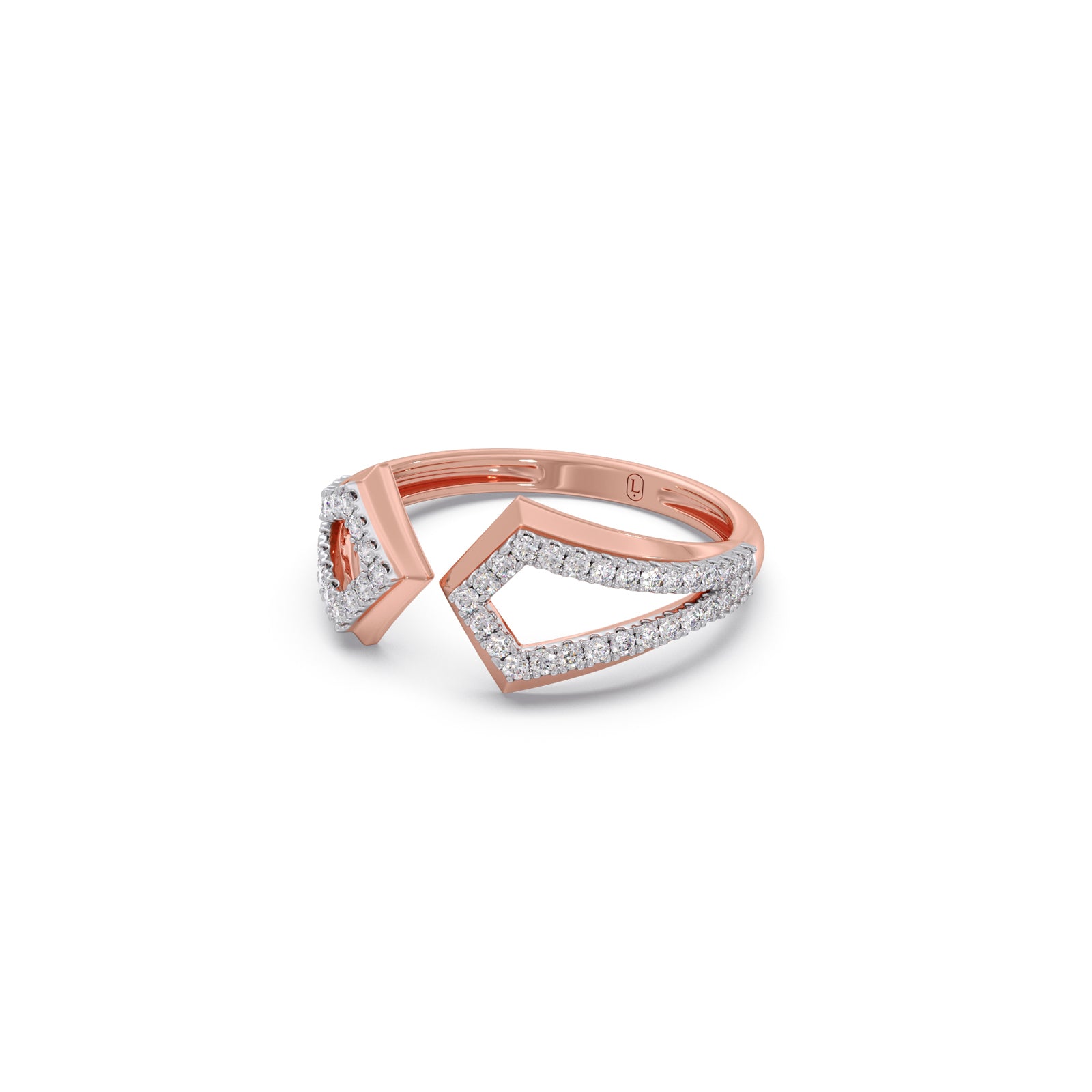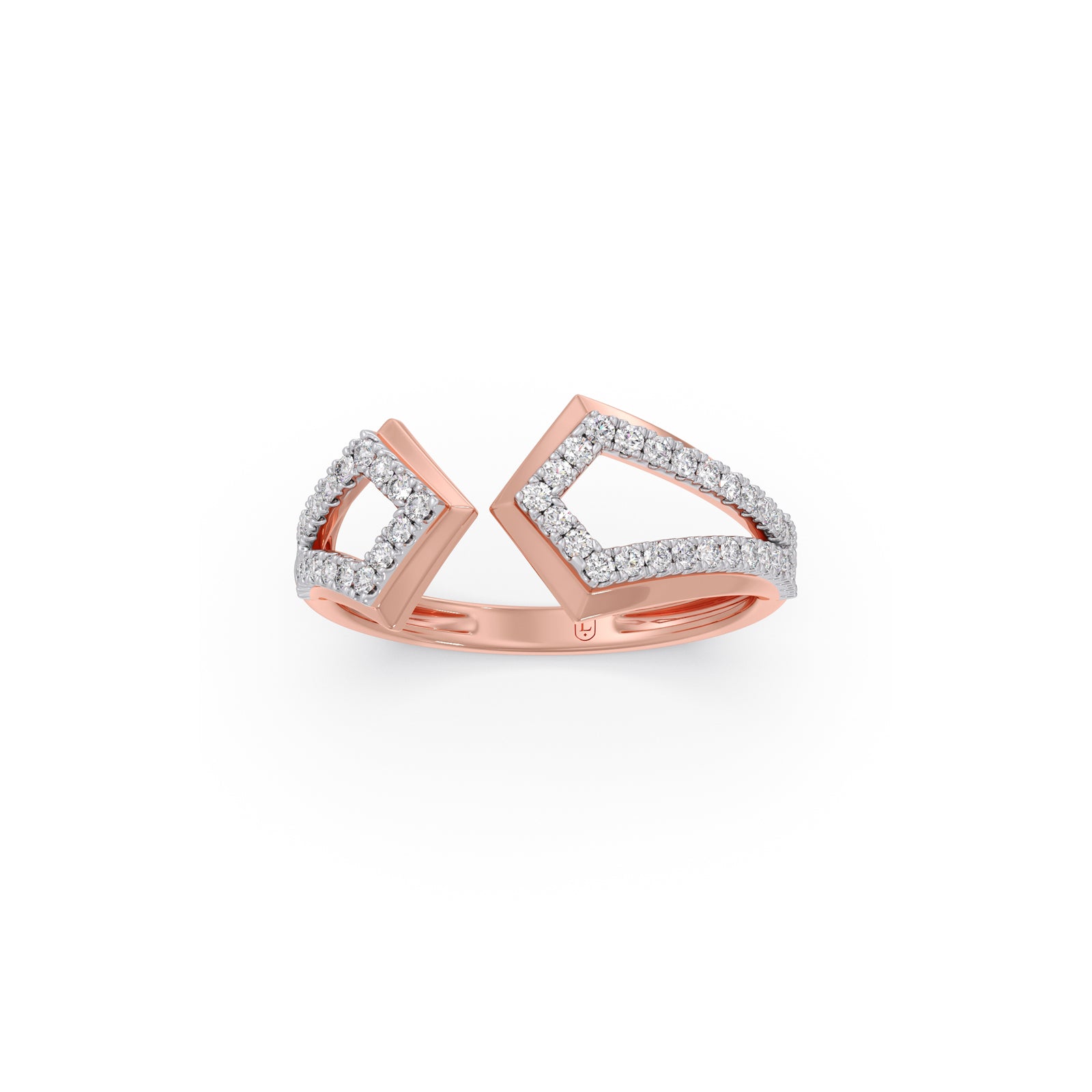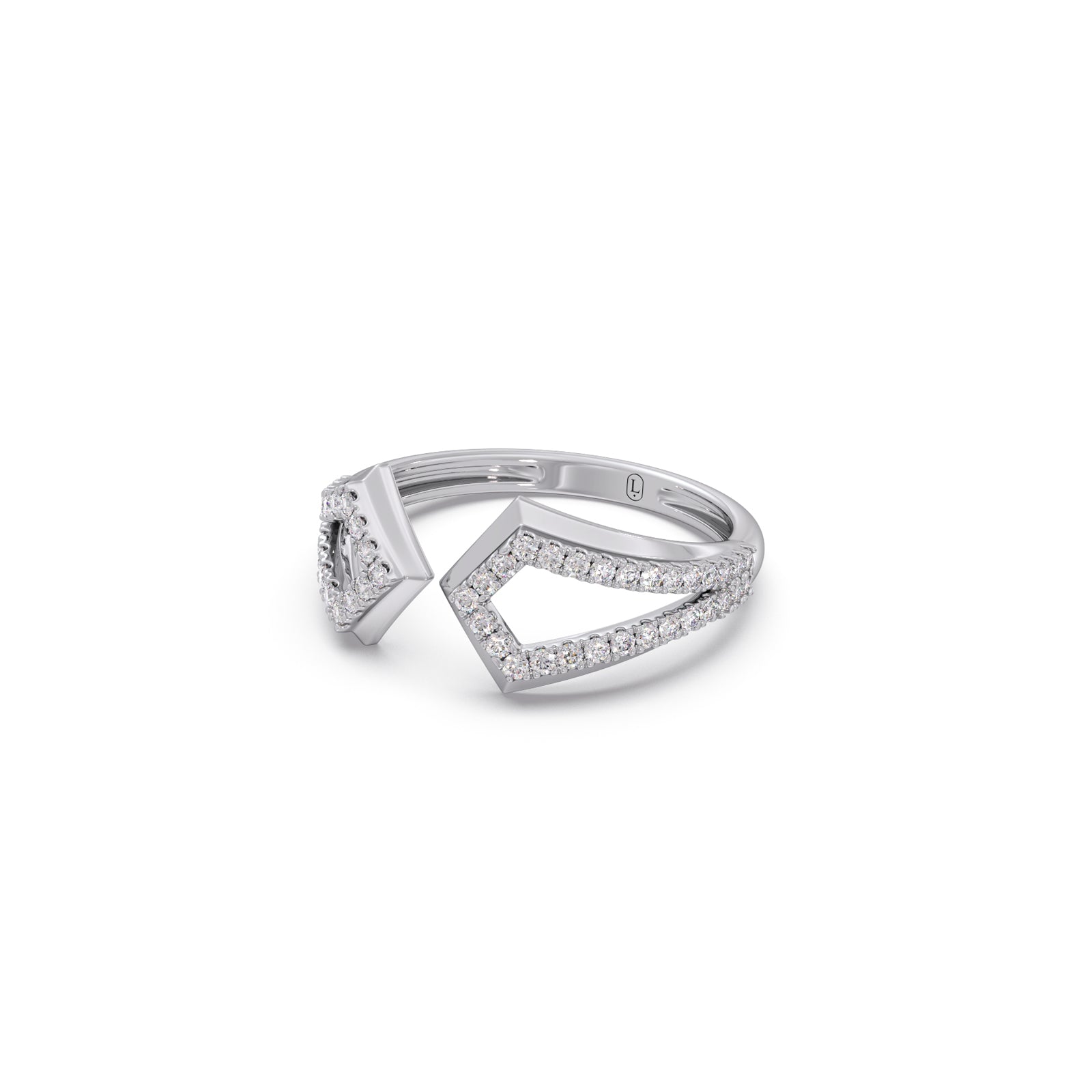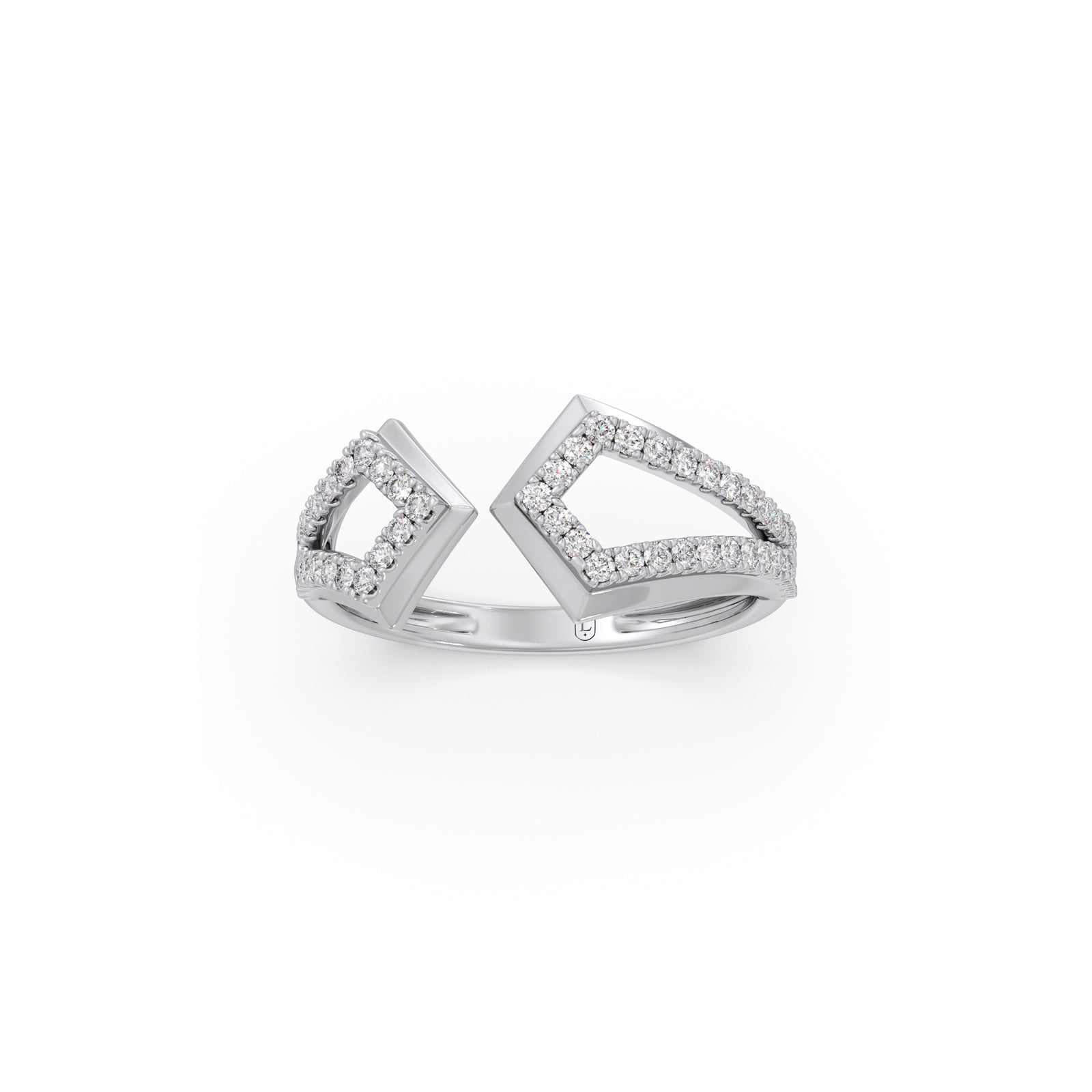 This Dual-Halo Diamond Rhombus Bypass Ring, features a two angular, kite-shaped /rhombus motifs. Each geometric frame is meticulously set with a brilliant round diamonds, providing a continuous line of sparkle. The sharp lines and open center make it a perfect choice for those who prefer minimalist yet edgy jewelry.