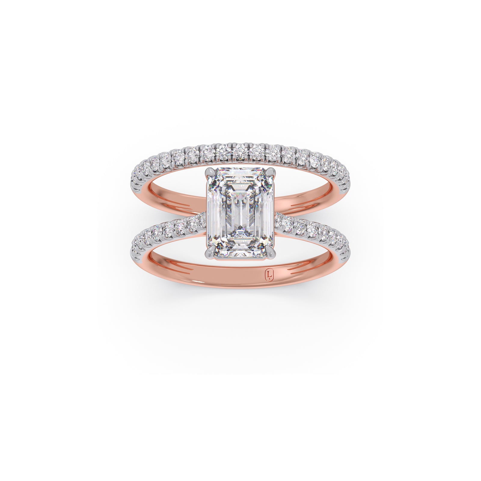 Dual Harmony Emerald Solitaire Diamond Ring
