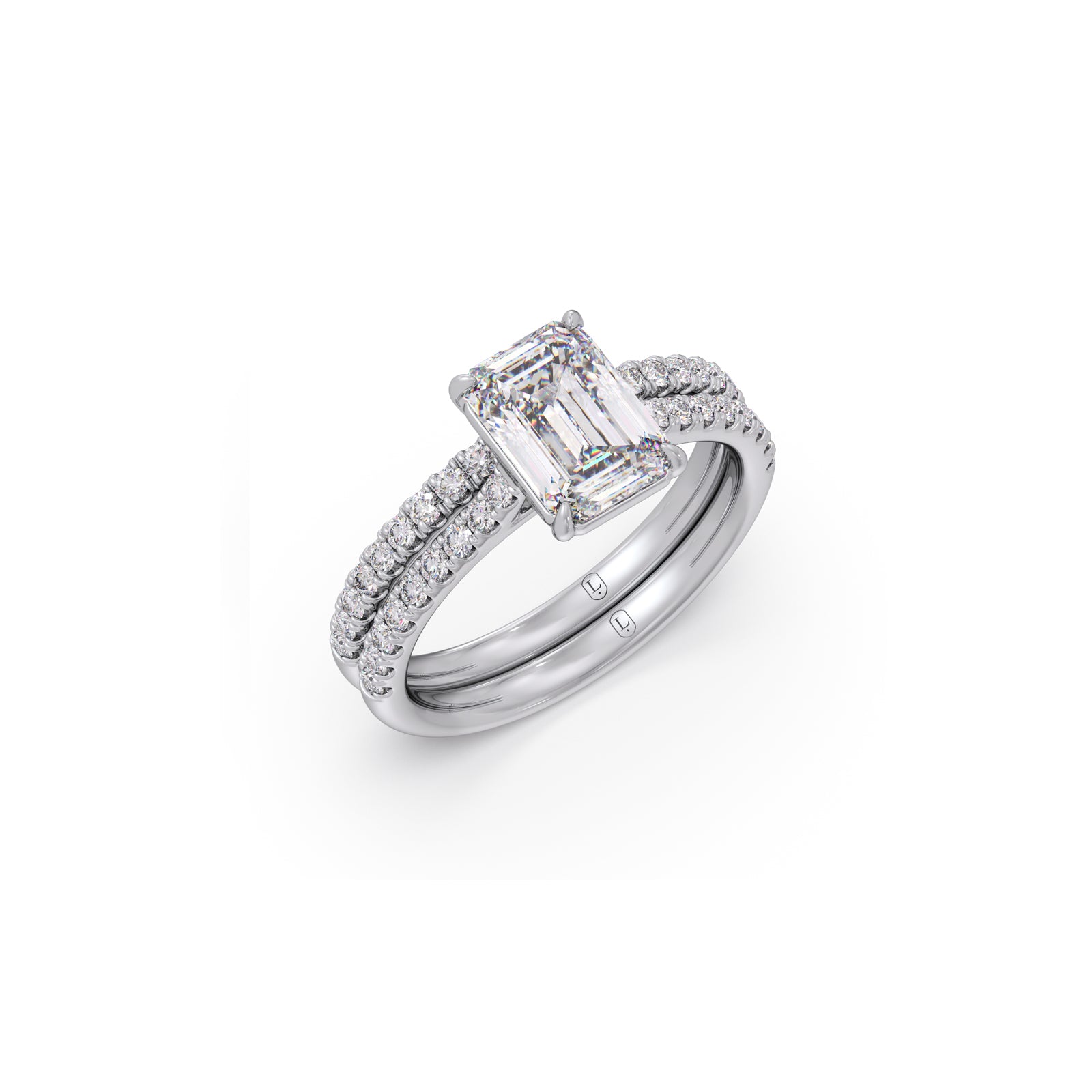 Dual Harmony Emerald Solitaire Diamond Ring