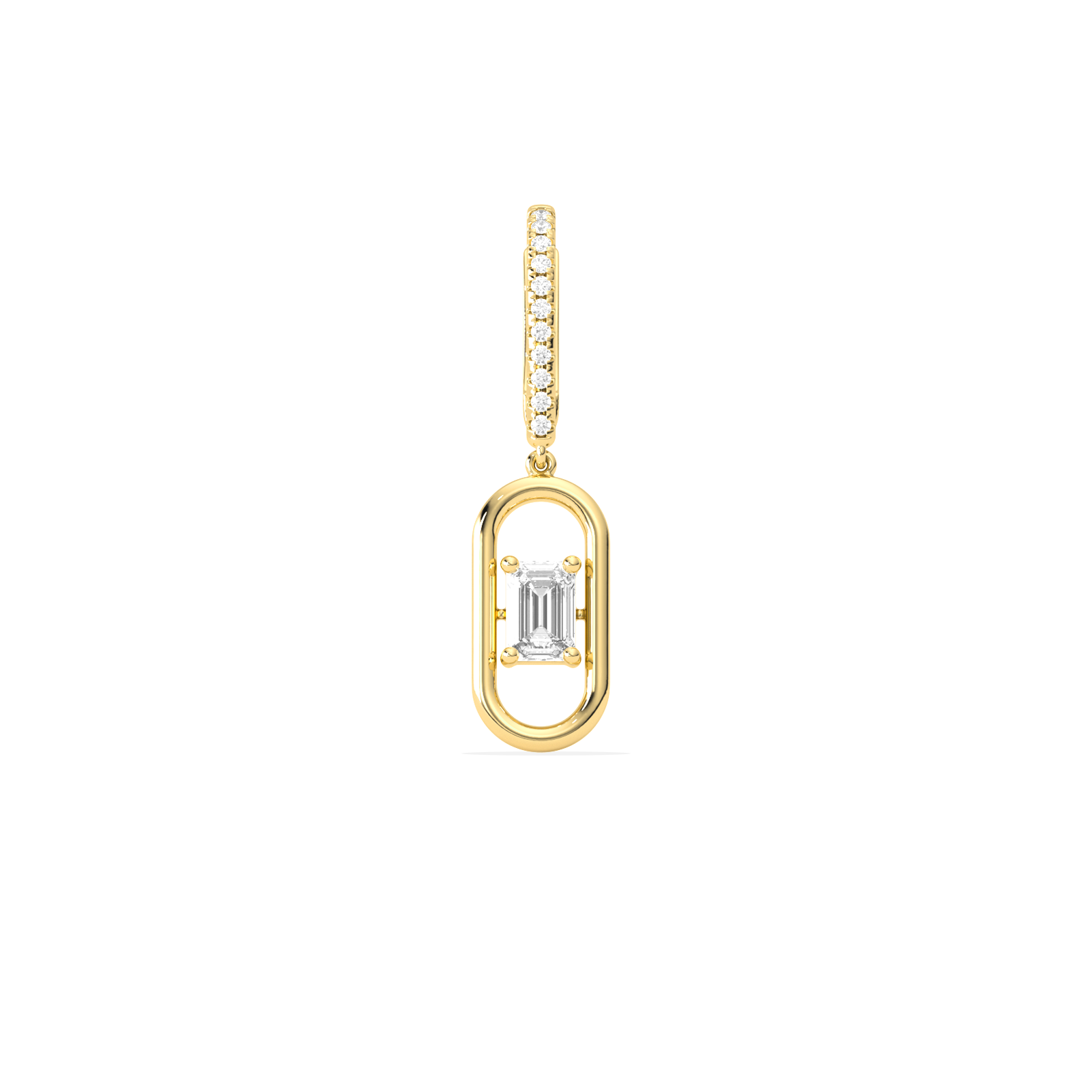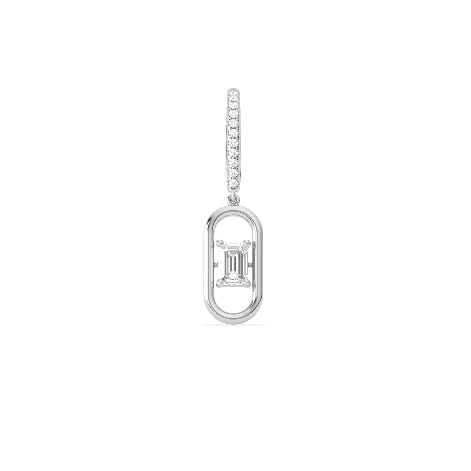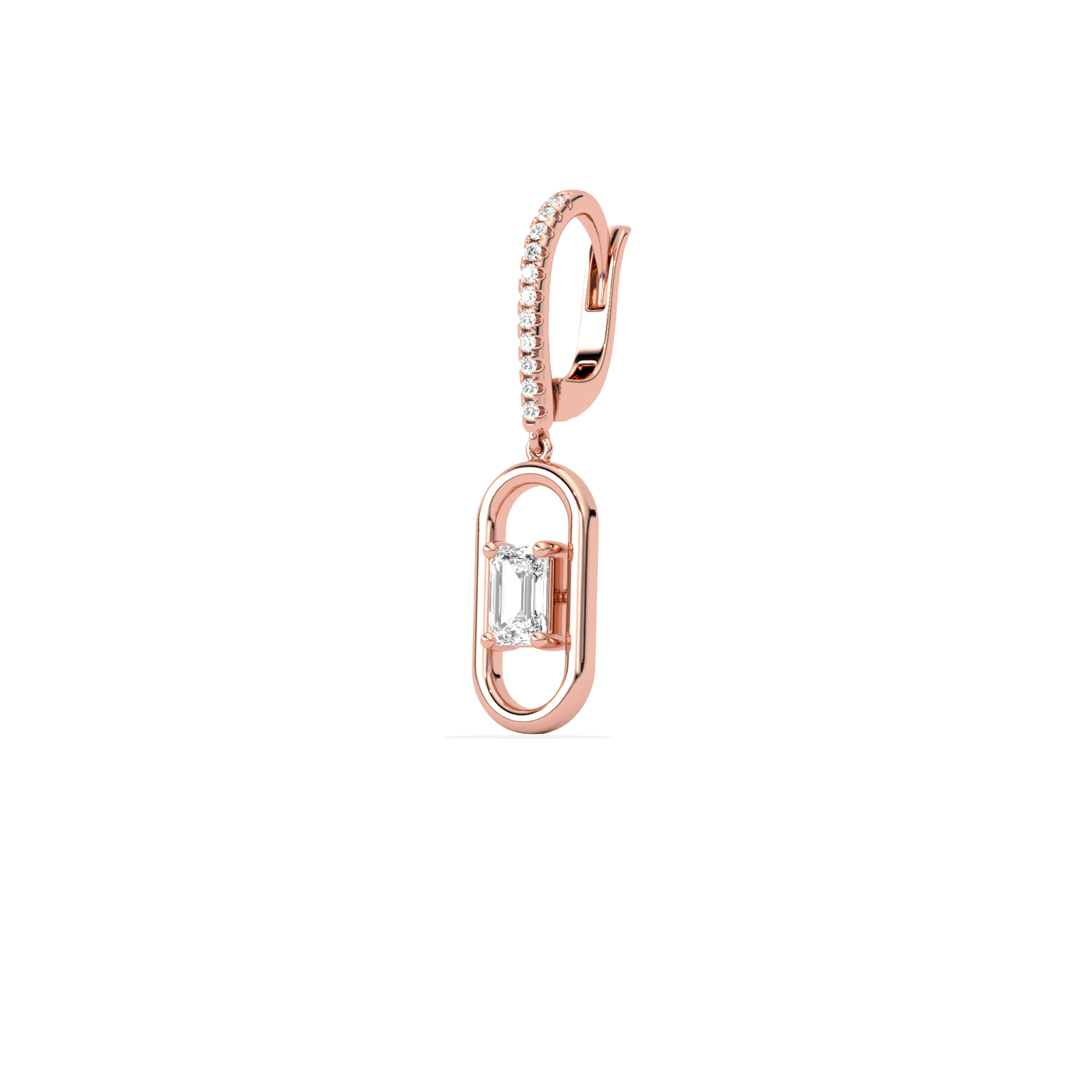 These sophisticated earrings feature stunning emerald-cut diamonds suspended in a graceful drop design. The clean lines and step-cut facets of the diamonds exude timeless elegance and subtle sparkle, perfect for adding a touch of refined glamour to any occasion.