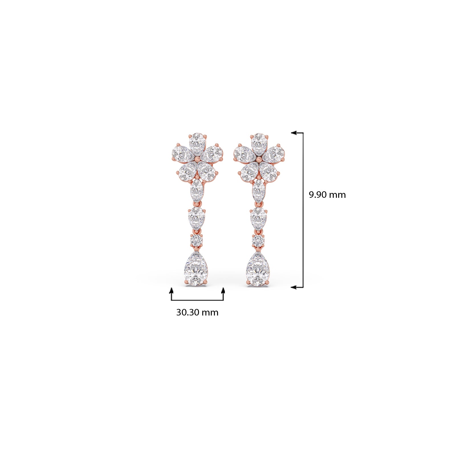 Adorn yourself with the enchanting beauty of our Elegant Floral Dangle LGD Earrings. Expertly crafted, these exquisite earrings feature a delicate bloom of lab-grown diamonds, from which a dazzling cascade gracefully descends. Each facet captures the light, creating a breathtaking sparkle that adds a touch of timeless elegance and natural grace to any sophisticated look.