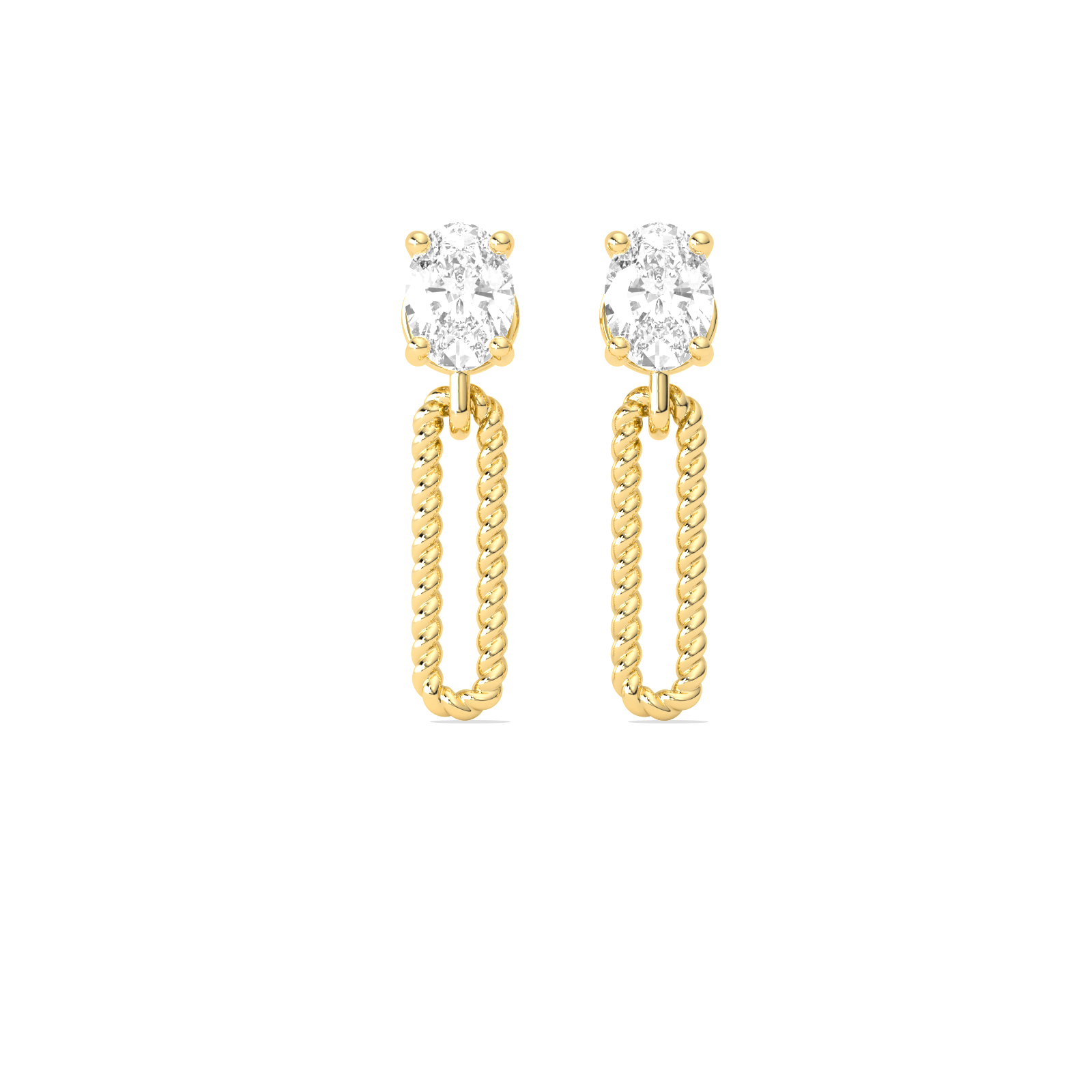 These refined earrings showcase the graceful elongated shape and brilliant sparkle of oval-cut diamonds suspended in a delicate drop. Their timeless design adds a touch of sophisticated glamour and subtle movement to any occasion.