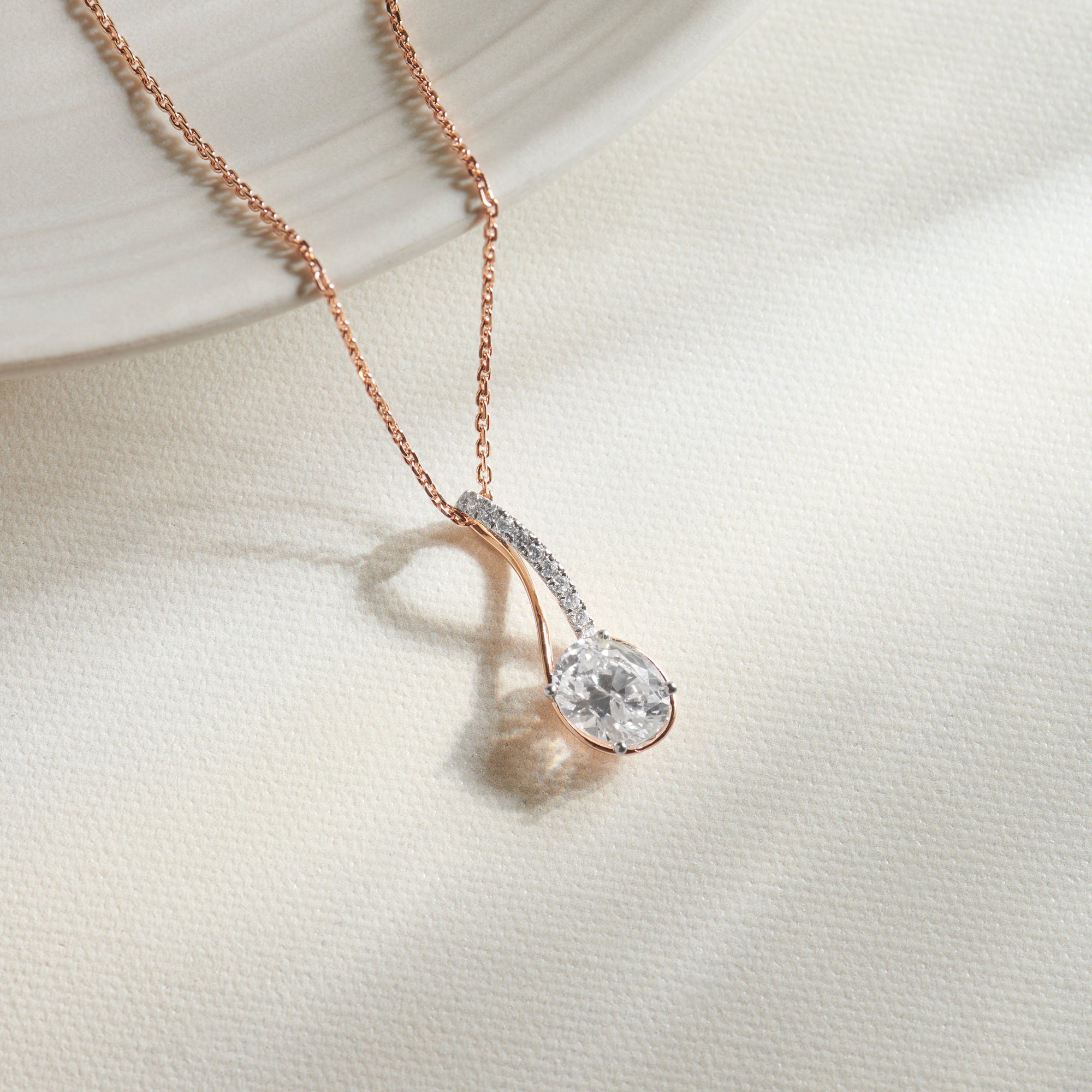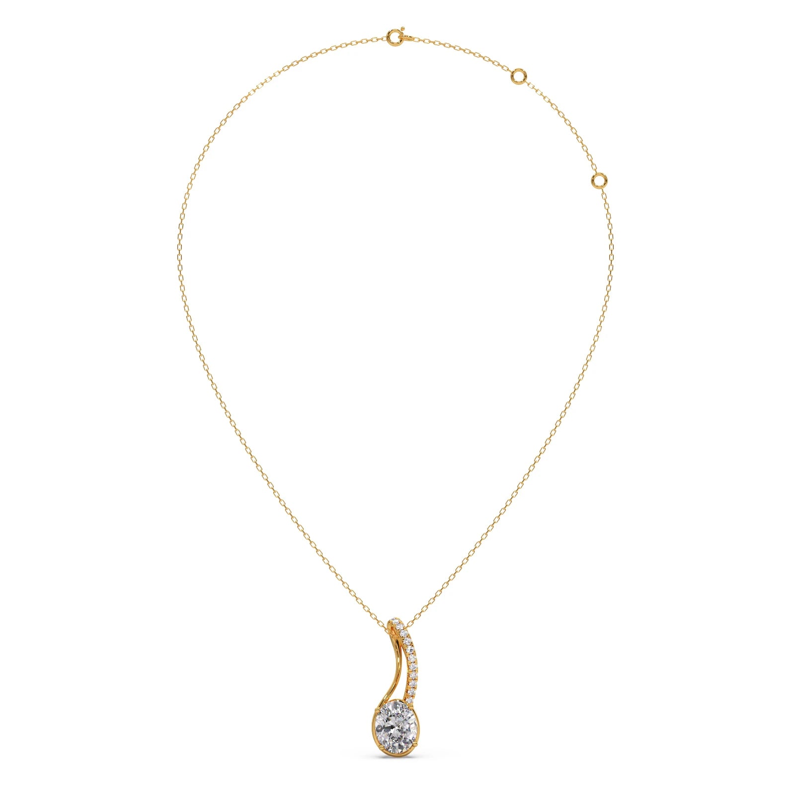 This exquisite pendant features a captivating oval diamond, elegantly suspended in a delicate setting. Its elongated shape radiates a unique brilliance, making it a sophisticated statement piece. Perfect for adding a touch of refined glamour, this pendant complements any attire with its timeless charm
