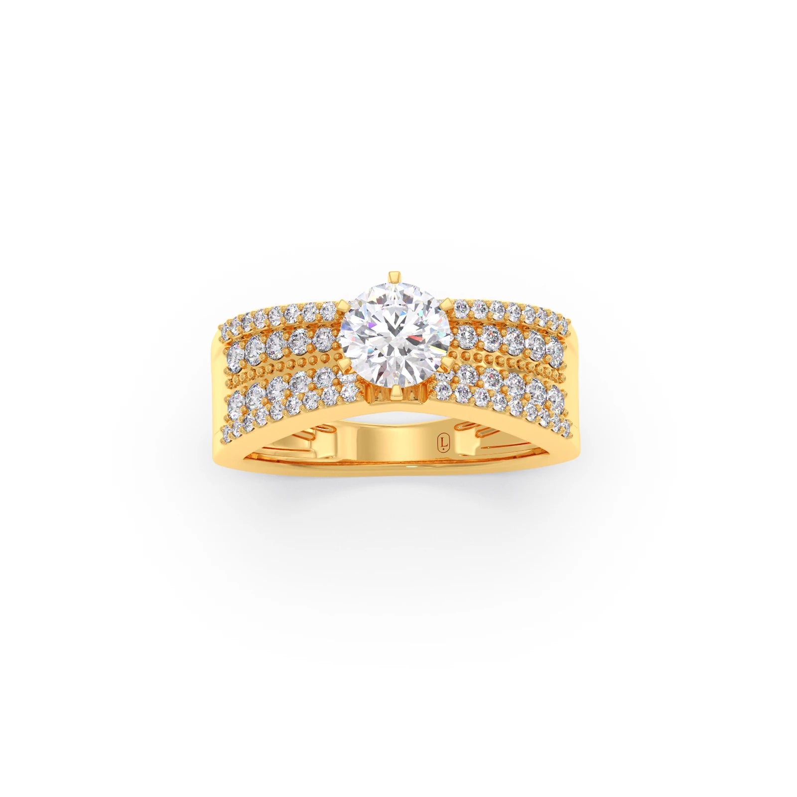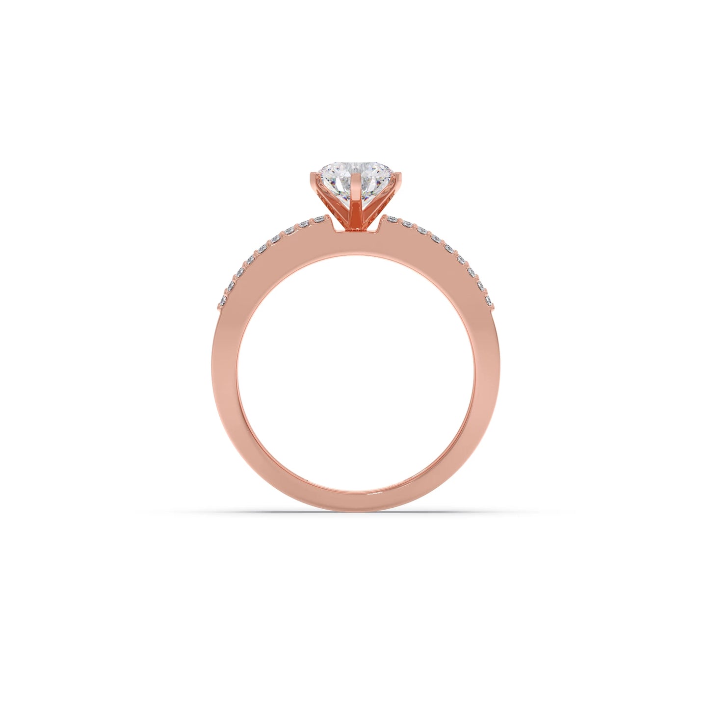 This elegant ring features a brilliant round-cut center stone, captivating with its exceptional sparkle. The band is gracefully adorned with delicate diamond shoulders, adding a touch of refined glamour and enhancing the centre stone's radiance. A timeless and sophisticated choice for any special occasion.