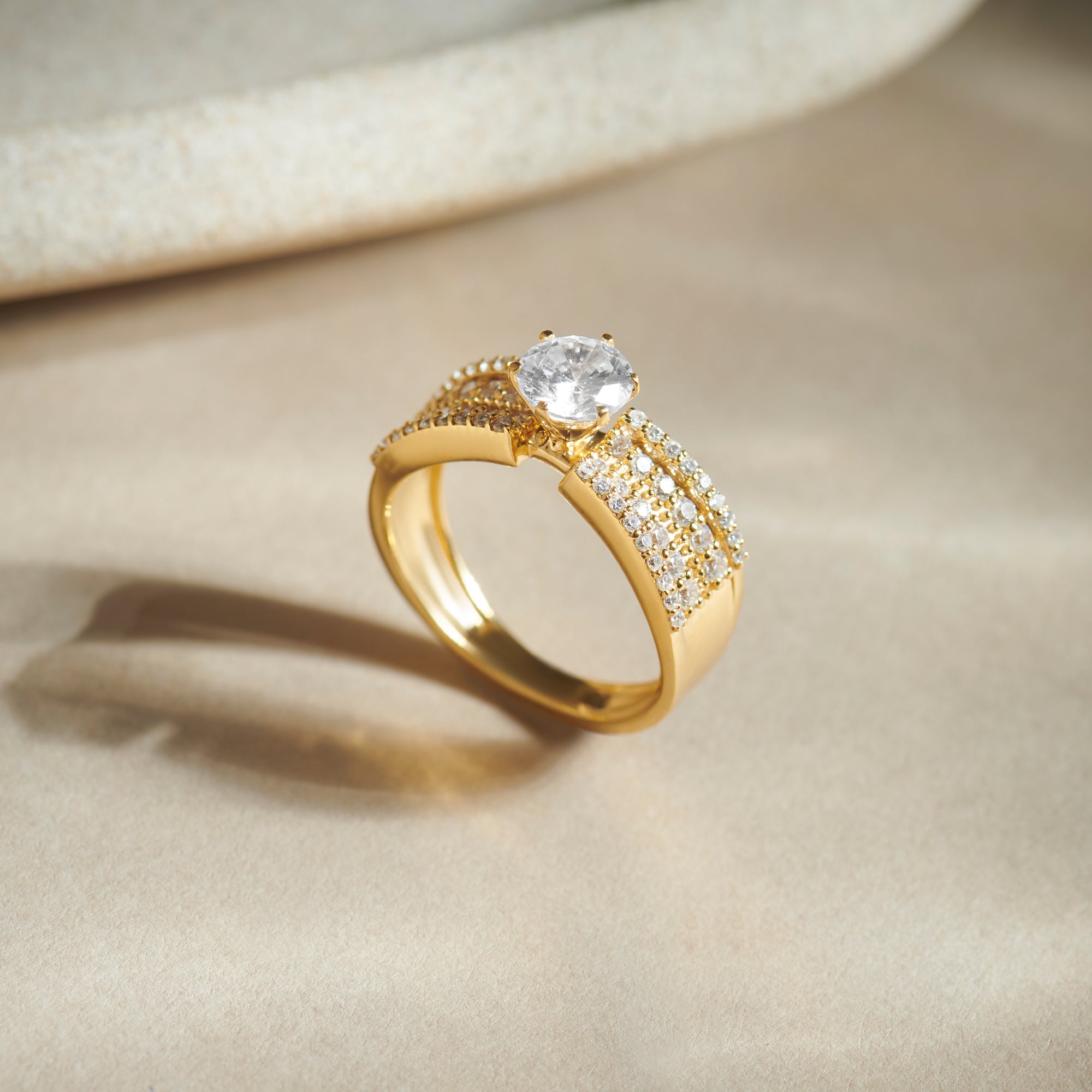 Elegant Round Center Stone Ring with Diamond Shoulders