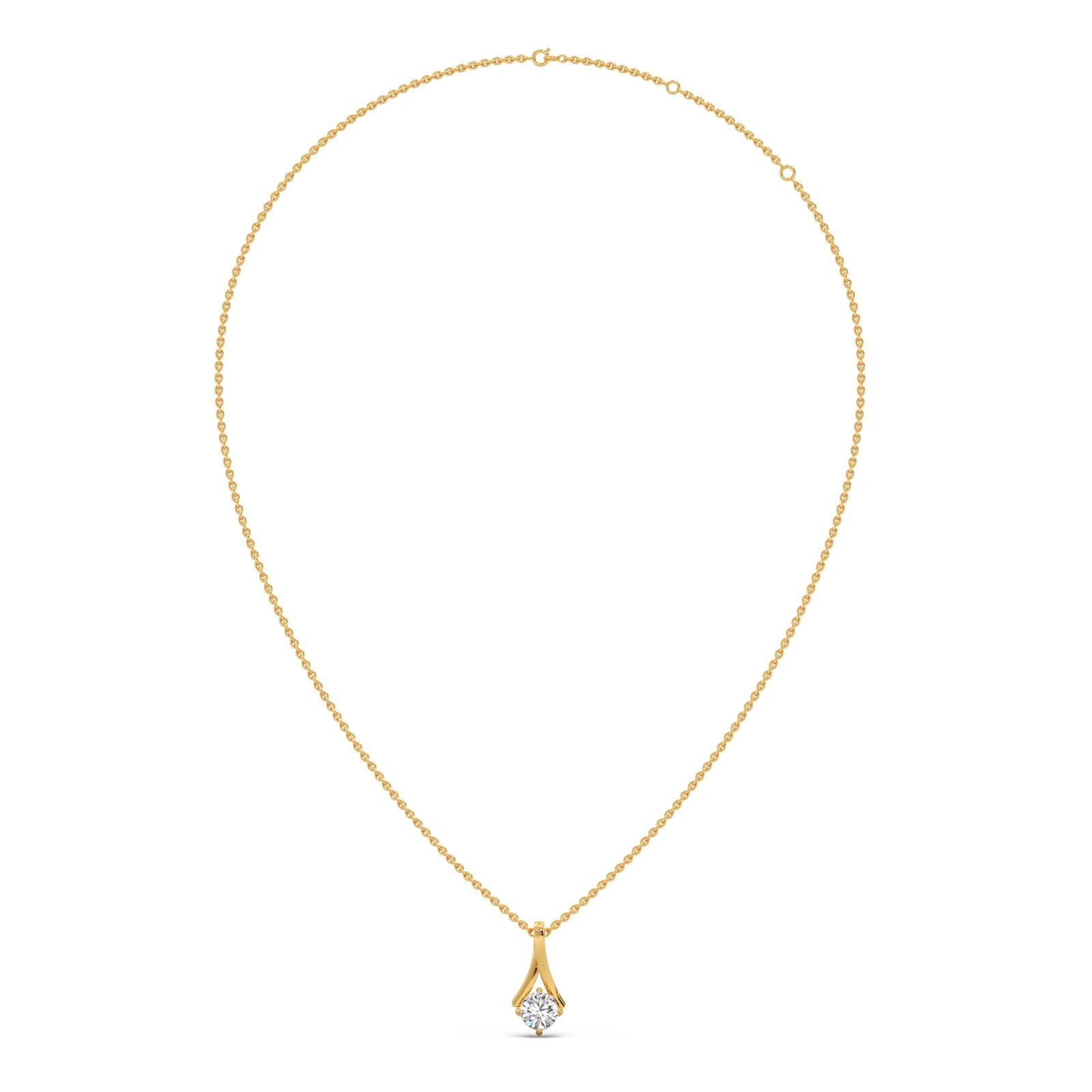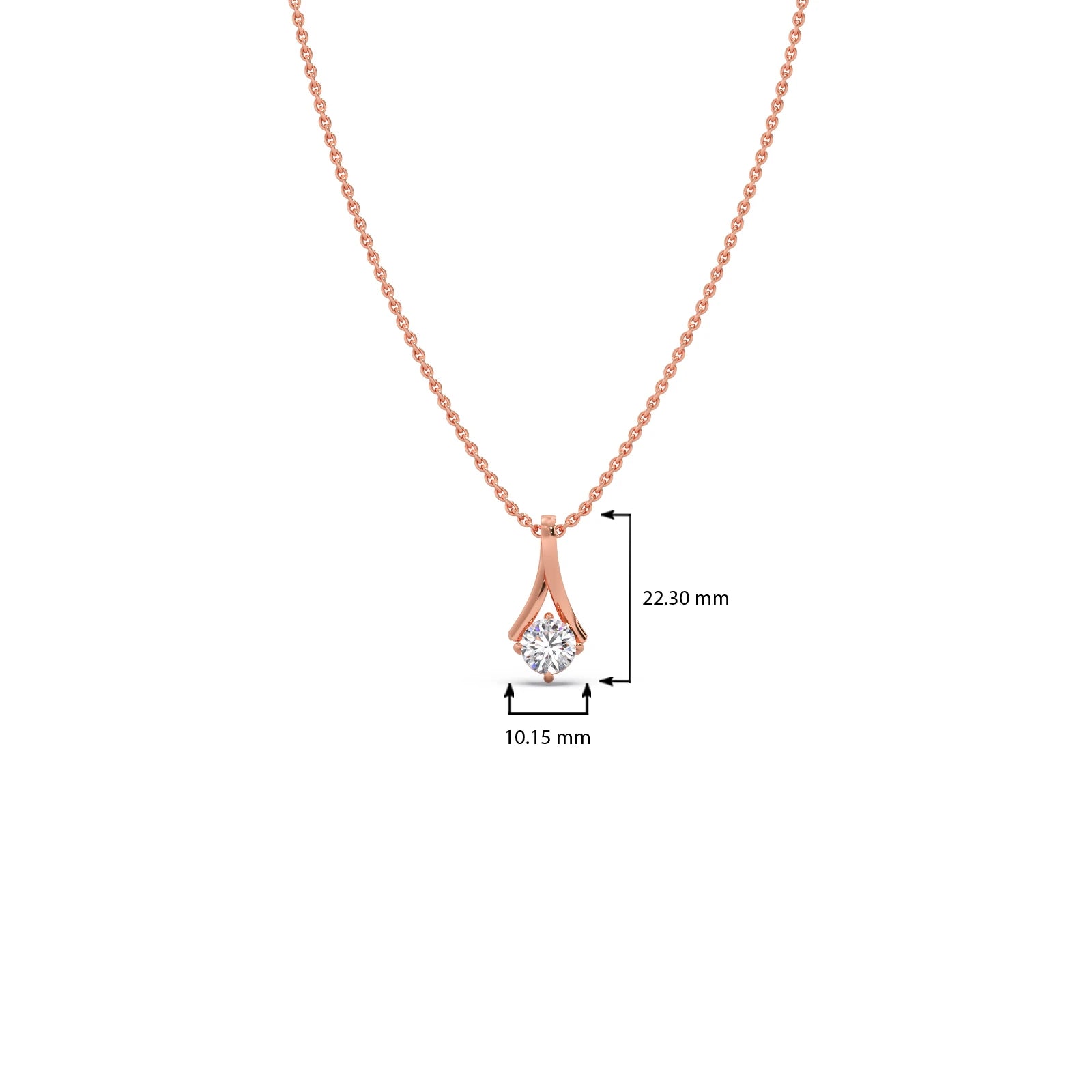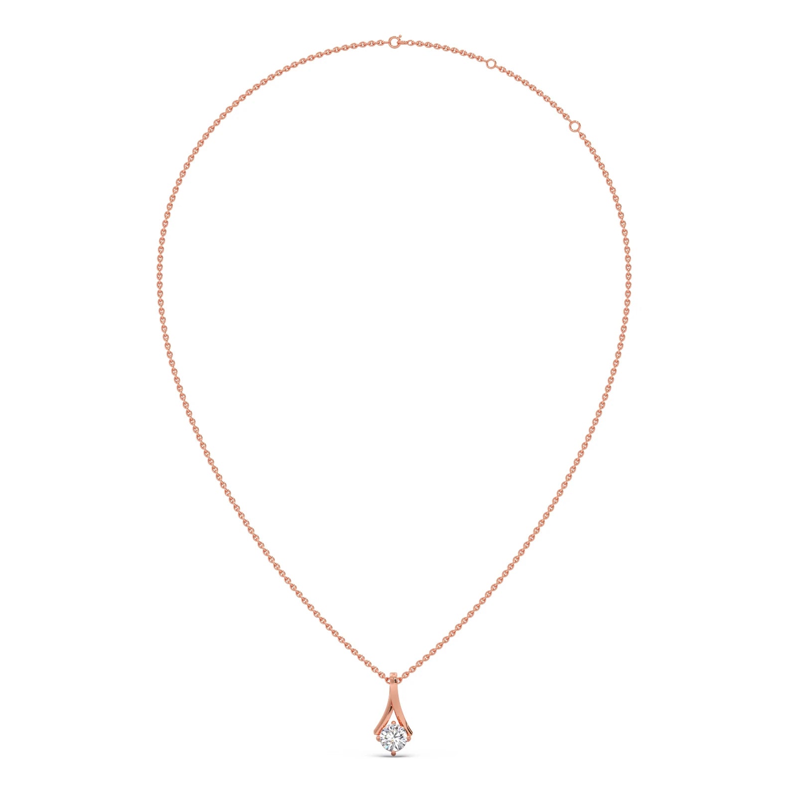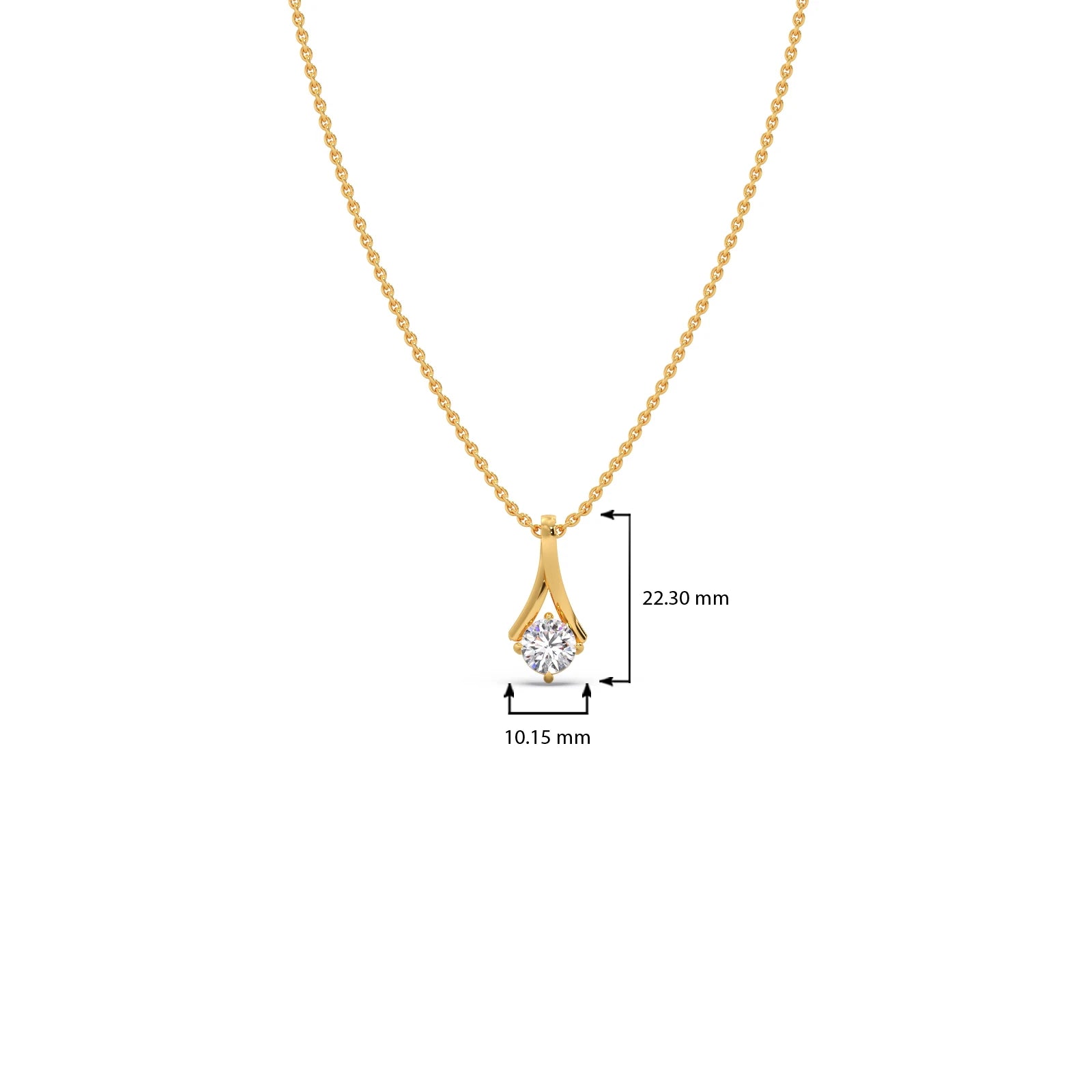 A beautiful round solitaire pendant, crafted with a unique twist. The central round diamond is set within a partial bezel, allowing maximum light to enter and enhance its brilliance. The elegant metalwork curves gracefully upward, adding a touch of modern flair to the classic design.