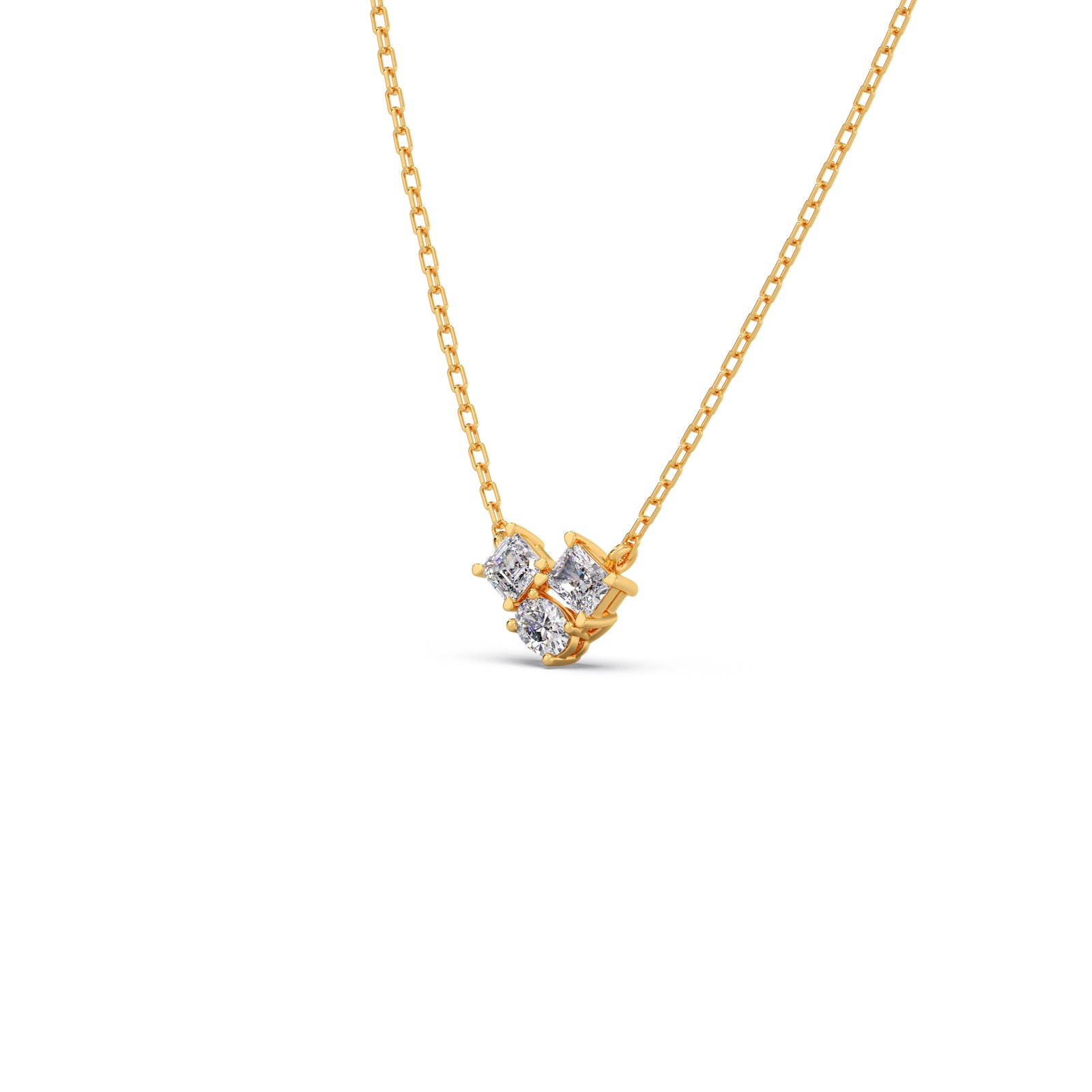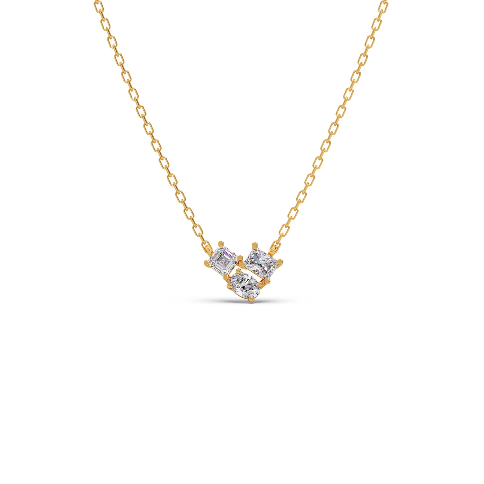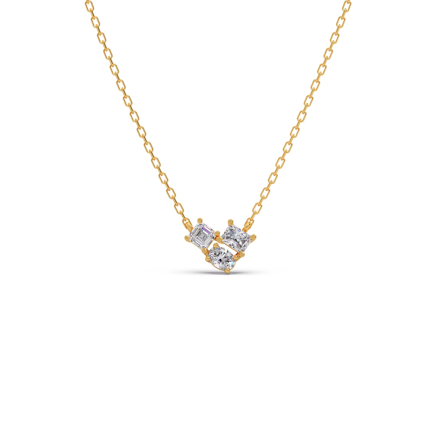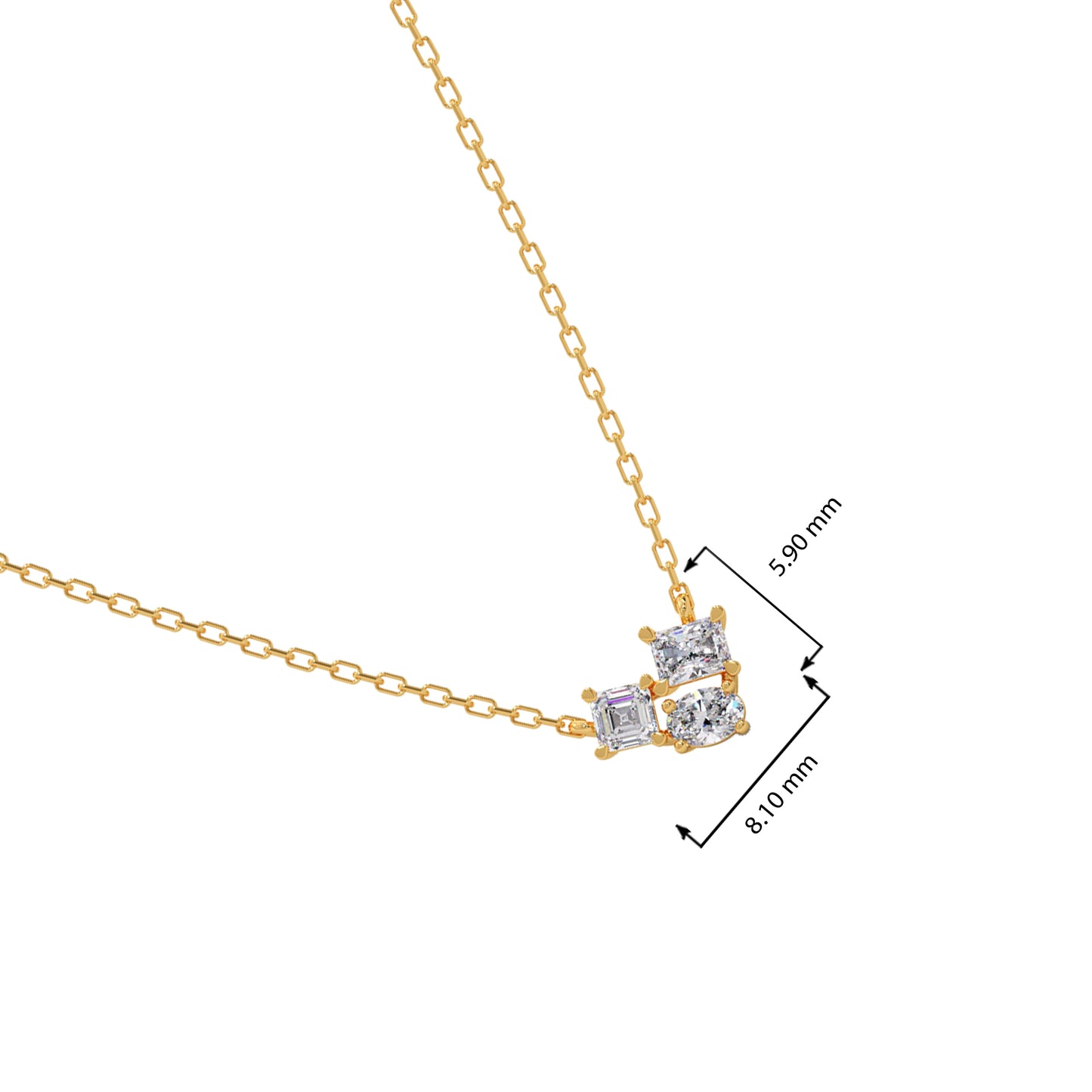 Experience breathtaking brilliance with our Emerald, Asscher & Oval Diamond Trio Pendant. This exquisite piece showcases three distinct, ethically sourced diamonds: a sophisticated emerald cut, a captivating Asscher cut, and a classic oval cut. Each shape offers unique sparkle, harmoniously combined in a modern design for an unparalleled statement of elegance.