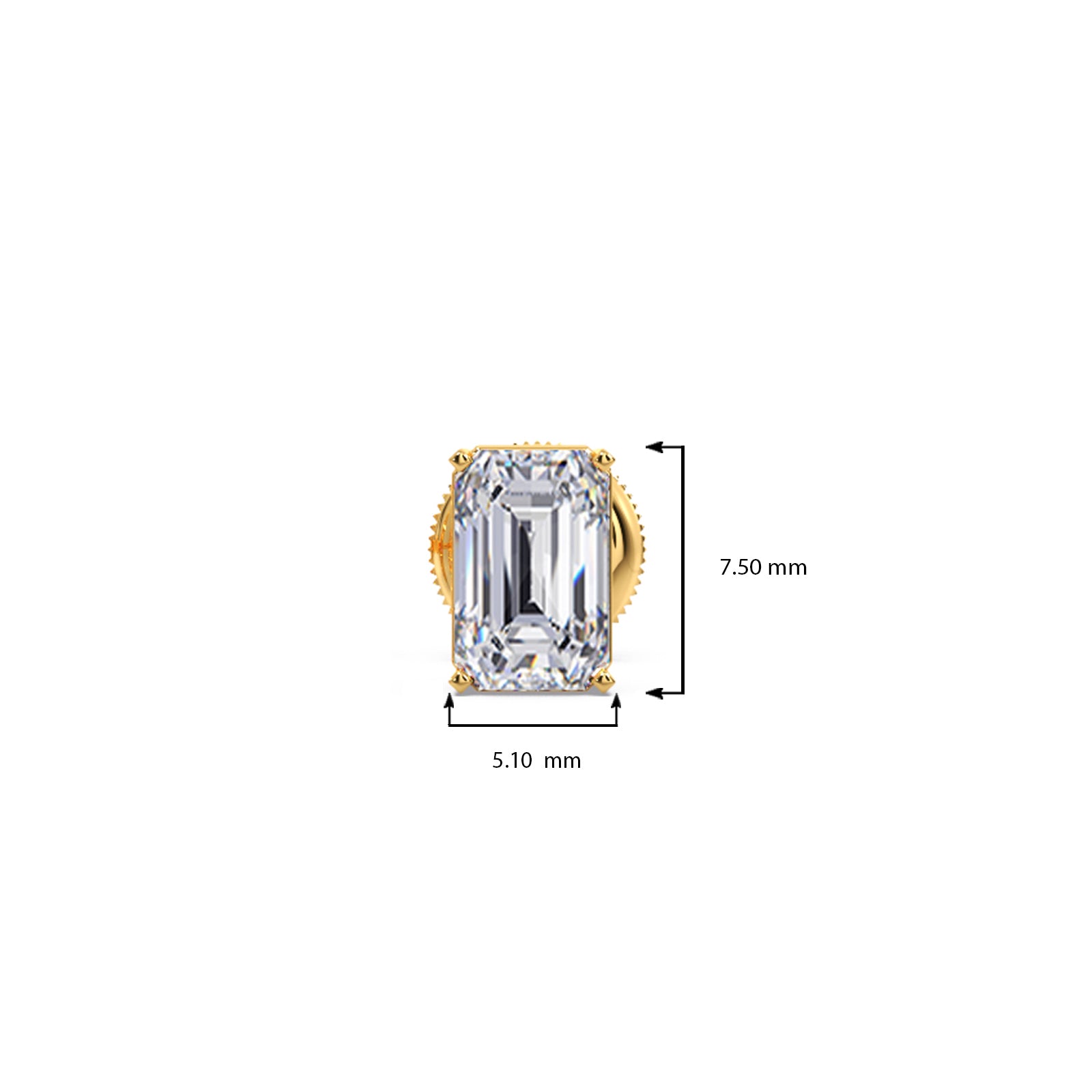 Elevate his everyday with our sophisticated Emerald Cut Diamond Men's Stud. This striking earring features a mesmerizing, emerald diamond, known for its elegant step-cut facets and captivating clarity. It’s the perfect blend of classic refinement and modern edge, making a subtle yet powerful statement.